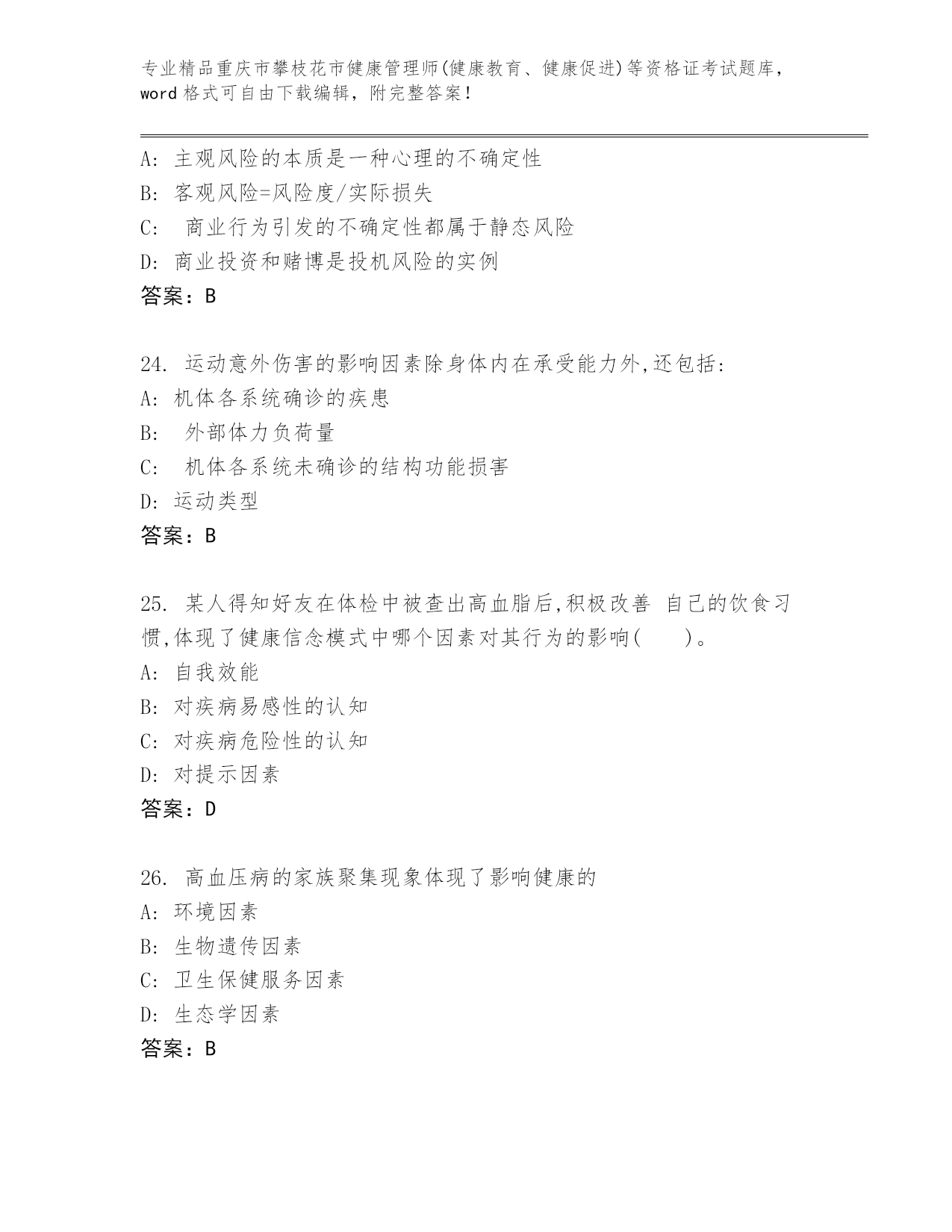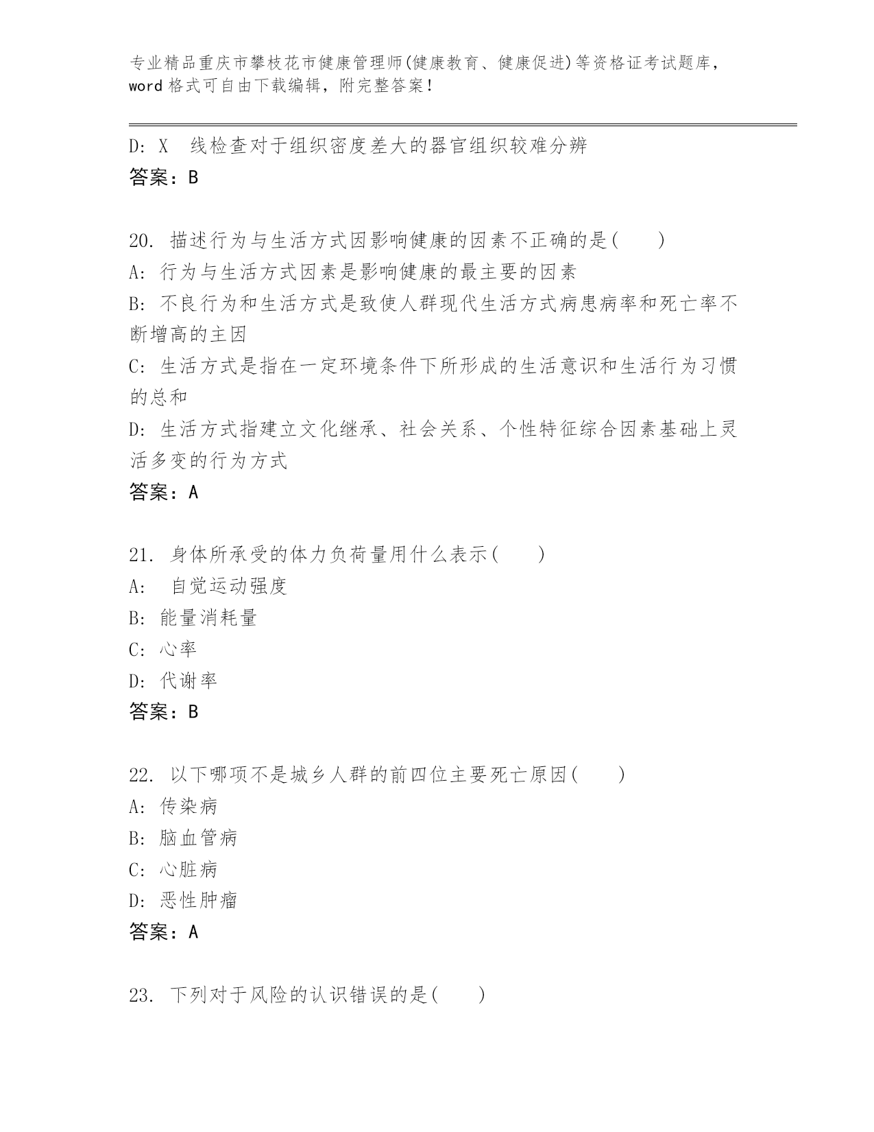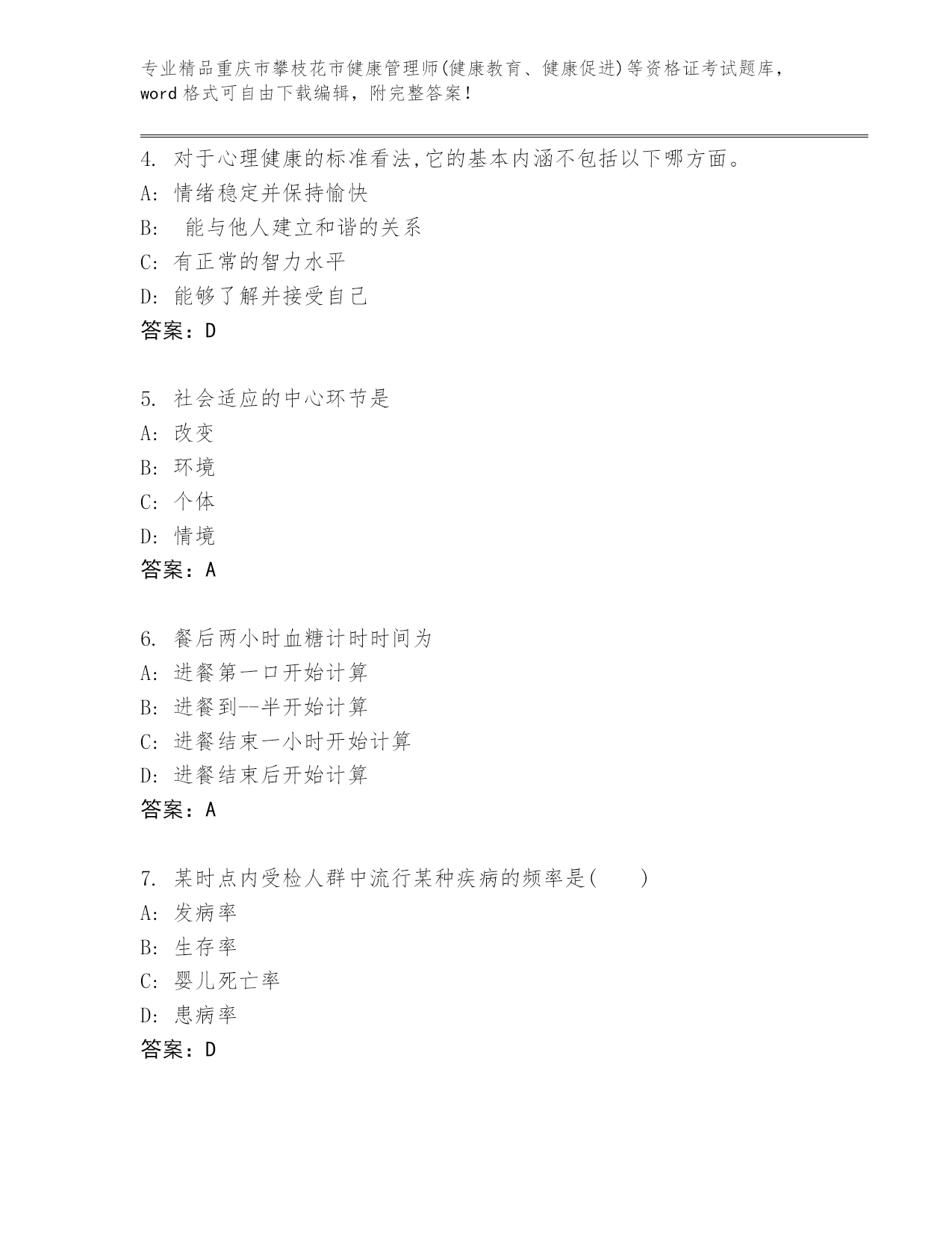 重庆市攀枝花市健康管理师(健康教育、健康促进)等资格证考试内部题库精品(B卷).docx