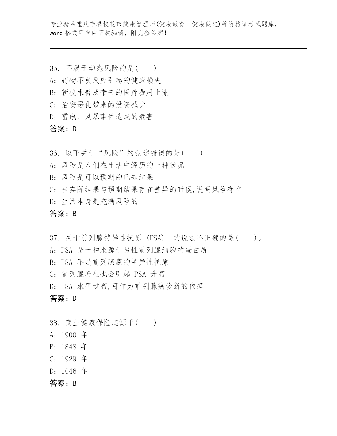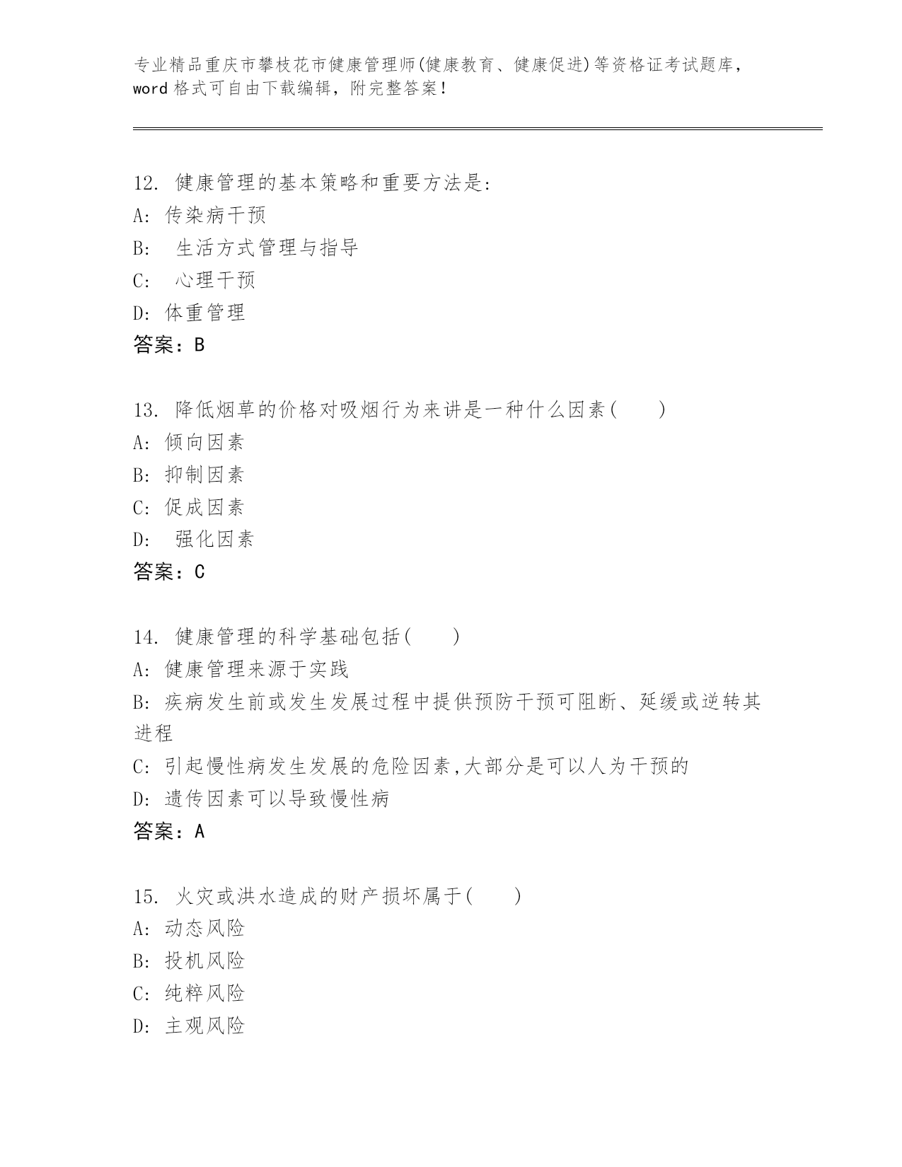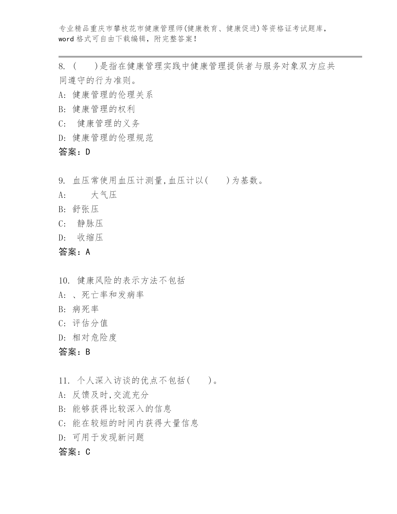 重庆市攀枝花市健康管理师(健康教育、健康促进)等资格证考试内部题库精品(B卷).docx