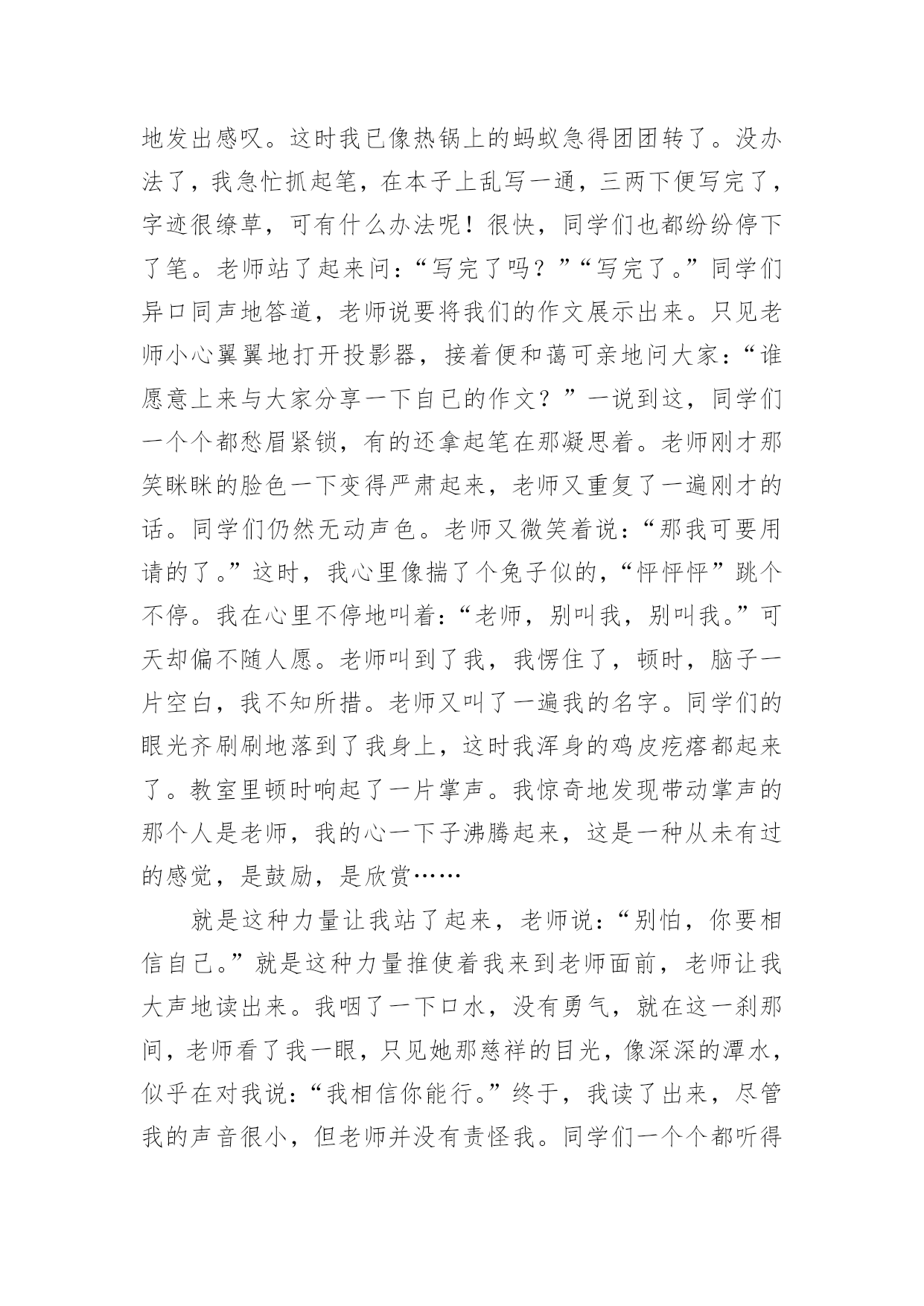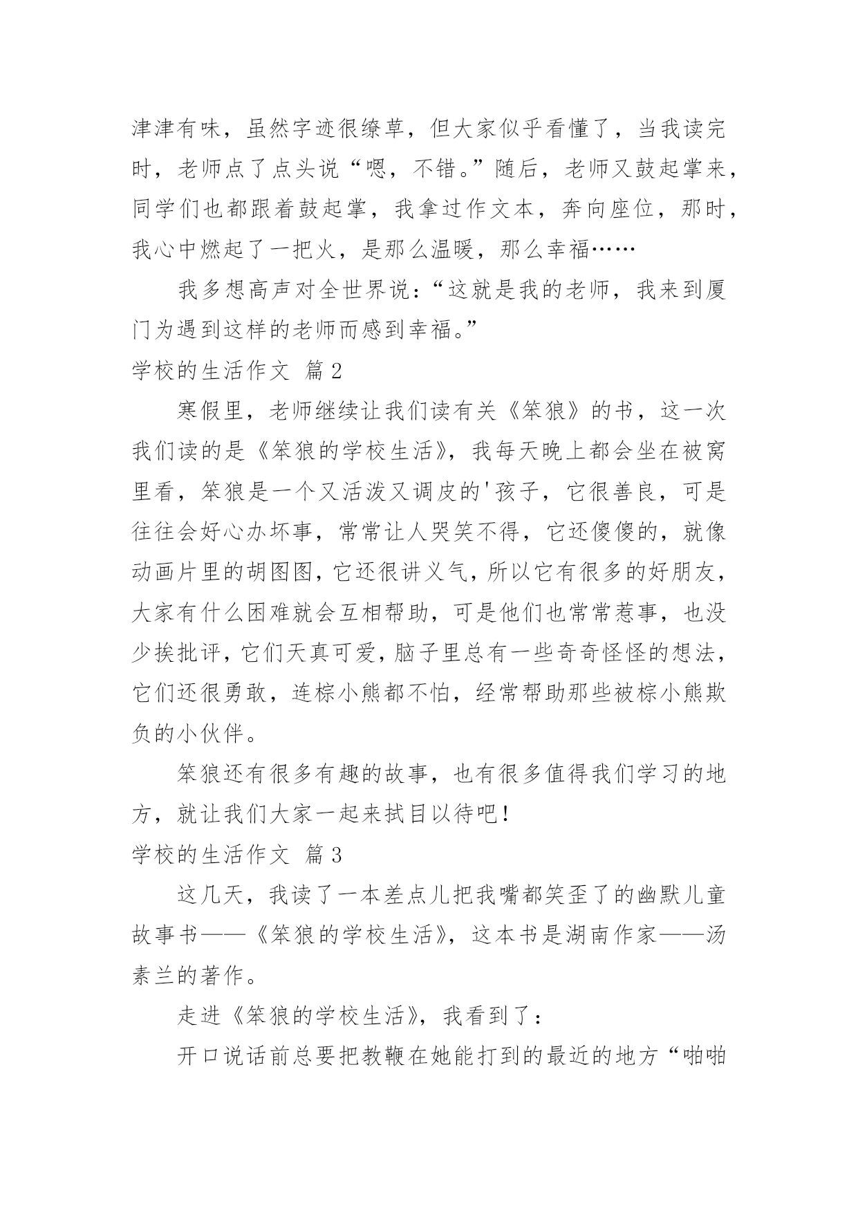 学校的生活作文关于学校的生活作文三篇在学习、工作乃至生活中,大家最不陌生的就是作文了吧,写作文可以锻炼我们的独处习惯,让自己的心静下来,思考自己未来的方向。你所见过的作文是什么样的呢?下面是小编精心整理的学校的生活作文3篇,希望能够帮助到大家。学校的生活作文篇1厦门,一个充满爱的城市;一个文明的城市;一个美丽、和谐的城市;这是我的第二故乡。在这里,我沐浴这知识的雨露,感受每个人的热情。这里的老师是那么的慈祥,同学们是那么的热心。两年前,我从遥远的家乡转到这边来上学。面对新的学习环境,新的老师,新的同学,一切都是那么的陌生。原本就很胆小的我,现在变得更加胆小了。下课时,同学们在一起玩耍,而我却只能坐在一旁,默默地看着他(她)玩,那时,我总觉的自己像班级里的另类。记得那次。老师让我们在课堂上写作文。写作文,一提到写作文我就烦透了。因为不知道写什么,所以老觉无米可炊。“哎”我叹了口气,又抓了抓后脑勺。皱皱眉头,拿起笔写了几行字。左看看右瞧瞧,可总觉得不顺眼,又拿起橡皮檫,檫去了几个字。就这样,时间一分一秒的从我笔尖流走了,我看了一下旁边的同学,“哇,写那么多了,”我不由地发出感叹。这时我已像热锅上的蚂蚁急得团团转了。没办法了,我急忙抓起笔,在本子上乱写一通,三两下便写完了,字迹很缭草,可有什么办法呢!很快,同学们也都纷纷停下了笔。老师站了起来问:“写完了吗?”“写完了。”同学们异口同声地答道,老师说要将我们的作文展示出来。只见老师小心翼翼地打开投影器,接着便和蔼可亲地问大家:“谁愿意上来与大家分享一下自已的作文?”一说到这,同学们一个个都愁眉紧锁,有的还拿起笔在那凝思着。老师刚才那笑眯眯的脸色一下变得严肃起来,老师又重复了一遍刚才的话。同学们仍然无动声色。老师又微笑着说:“那我可要用请的了。”这时,我心里像揣了个兔子似的,“怦怦怦”跳个不停。我在心里不停地叫着:“老师,别叫我,别叫我。”可天却偏不随人愿。老师叫到了我,我愣住了,顿时,脑子一片空白,我不知所措。老师又叫了一遍我的名字。同学们的眼光齐刷刷地落到了我身上,这时我浑身的鸡皮疙瘩都起来了。教室里顿时响起了一片掌声。我惊奇地发现带动掌声的那个人是老师,我的心一下子沸腾起来,这是一种从未有过的感觉,是鼓励,是欣赏……就是这种力量让我站了起来,老师说:“别怕,你要相信自己。”就是这种力量推使着我来到老师面前,老师让我大声地读出来。我咽了一下口水,没有勇气,就在这一刹那间,老师看了我一眼,只见她那慈祥的目光,像深深的潭水,似乎在对我说:“我相信你能行。”终于,我读了出来,尽管我的声音很小,但老师并没有责怪我。同学们一个个都听得津津有味,虽然字迹很缭草,但大家似乎看懂了,当我读完时,老师点了点头说“嗯,不错。”随后,老师又鼓起掌来,同学们也都跟着鼓起掌,我拿过作文本,奔向座位,那时,我心中燃起了一把火,是那么温暖,那么幸福……我多想高声对全世界说:“这就是我的老师,我来到厦门为遇到这样的老师而感到幸福。”学校的生活作文篇2寒假里,老师继续让我们读有关《笨狼》的书,这一次我们读的是《笨狼的学校生活》,我每天晚上都会坐在被窝里看,笨狼是一个又活泼又调皮的'孩子,它很善良,可是往往会好心办坏事,常常让人哭笑不得,它还傻傻的,就像动画片里的胡图图,它还很讲义气,所以它有很多的好朋友,大家有什么困难就会互相帮助,可是他们也常常惹事,也没少挨批评,它们天真可爱,脑子里总有一些奇奇怪怪的想法,它们还很勇敢,连棕小熊都不怕,经常帮助那些被棕小熊欺负的小伙伴。笨狼还有很多有趣的故事,也有很多值得我们学习的地方,就让我们大家一起来拭目以待吧!学校的生活作文篇3这几天,我读了一本差点儿把我嘴都笑歪了的幽默儿童故事书——《笨狼的学校生活》,这本书是湖南作家——汤素兰的著作。走进《笨狼的学校生活》,我看到了:开口说话前总要把教鞭在她能打到的最近的地方“啪啪啪”地敲三下的森林学校的校长——鹅太太。一个才华横溢,很爱写诗,每周三都会开一次诗歌朗诵会,在诗歌诵会上动物们总会被感动的泪如泉涌,但在森林学校里主教外语——人类语言的——牛博士。身材苗条,戴着眼镜,精通算术,但爱用粉笔头弹学生鼻子的算术老师——眼镜蛇小姐。全校块头最大,力气最足的学生,也是平时最玩皮,最不听话的学生——棕小熊。还有聪明兔、乖乖羊、猫小花、伶俐兔、小浣熊等,笨狼和它们之间发生的一连串的有趣的故事。笨狼在学校里不仅很笨,面且还很固执,老师们经常会因为它的固执而改变上课的内容,笨狼虽然很笨但它却很善良、勇敢、正直、乐观。当同学们把鹅太太的花弄的七零八落时,既没有摘花,又没有用花朵乱扔的善良的笨狼为了帮助牛博士,居然和爸爸妈妈一起把自己家里的花都搬到了学校的花园里。当棕小熊要欺负乖乖羊的时候,善良的笨狼眼里含着泪勇敢地站在凶巴巴的棕小熊面前说:“