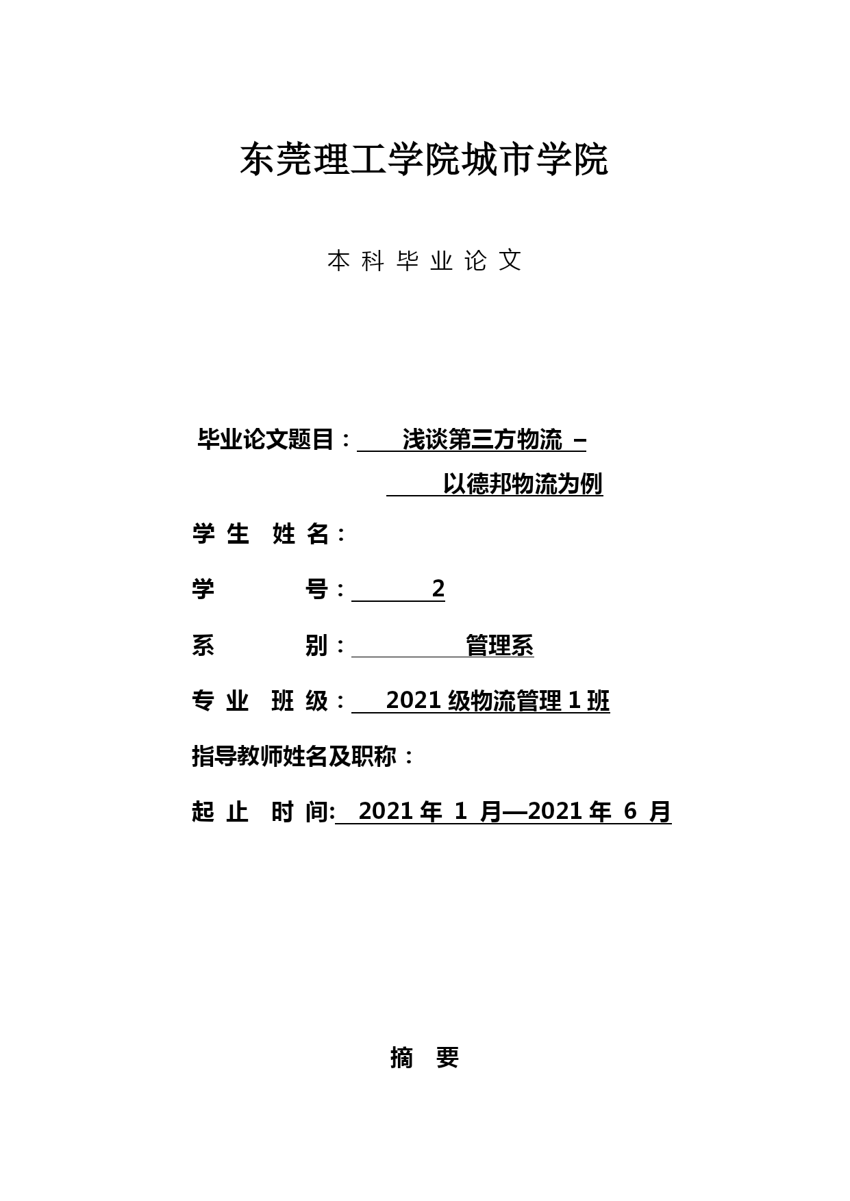 浅谈第三方物流——以德邦物流为例---毕业名师.doc