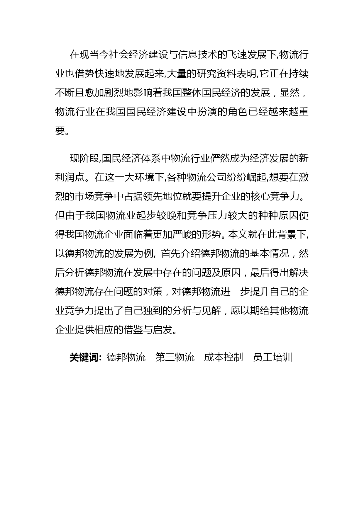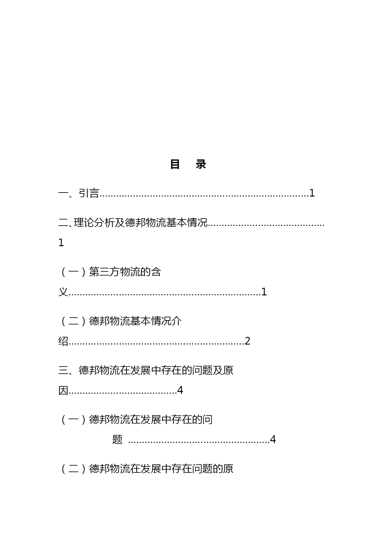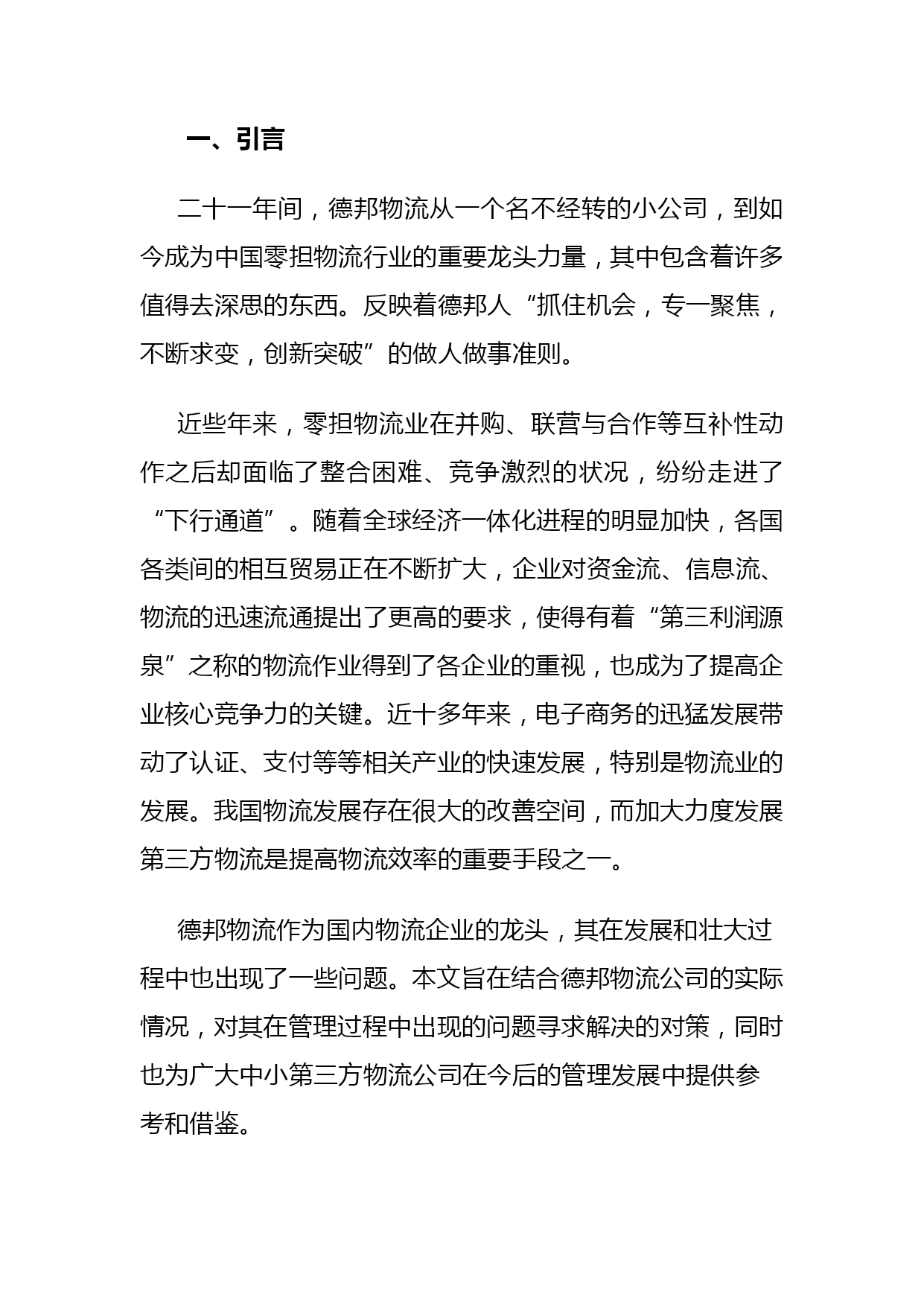 浅谈第三方物流——以德邦物流为例---毕业名师