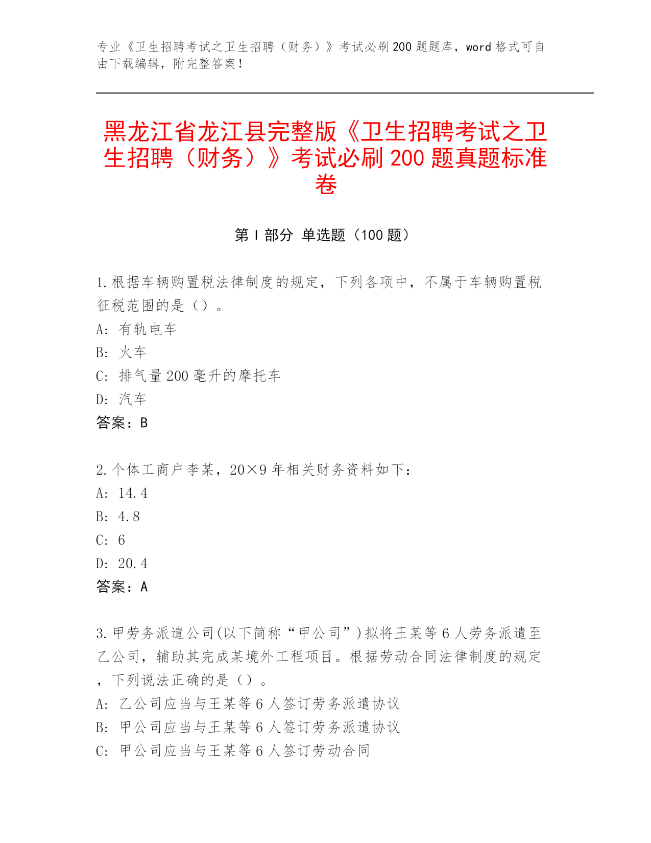 黑龙江省龙江县完整版《卫生招聘考试之卫生招聘(财务)》考试必刷200题真题标准卷