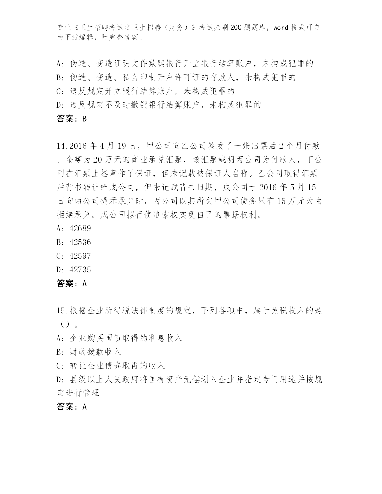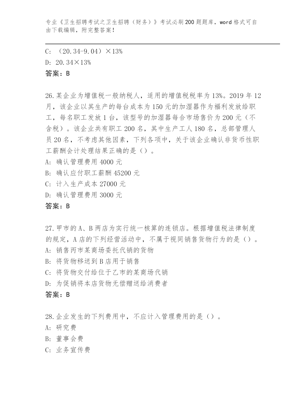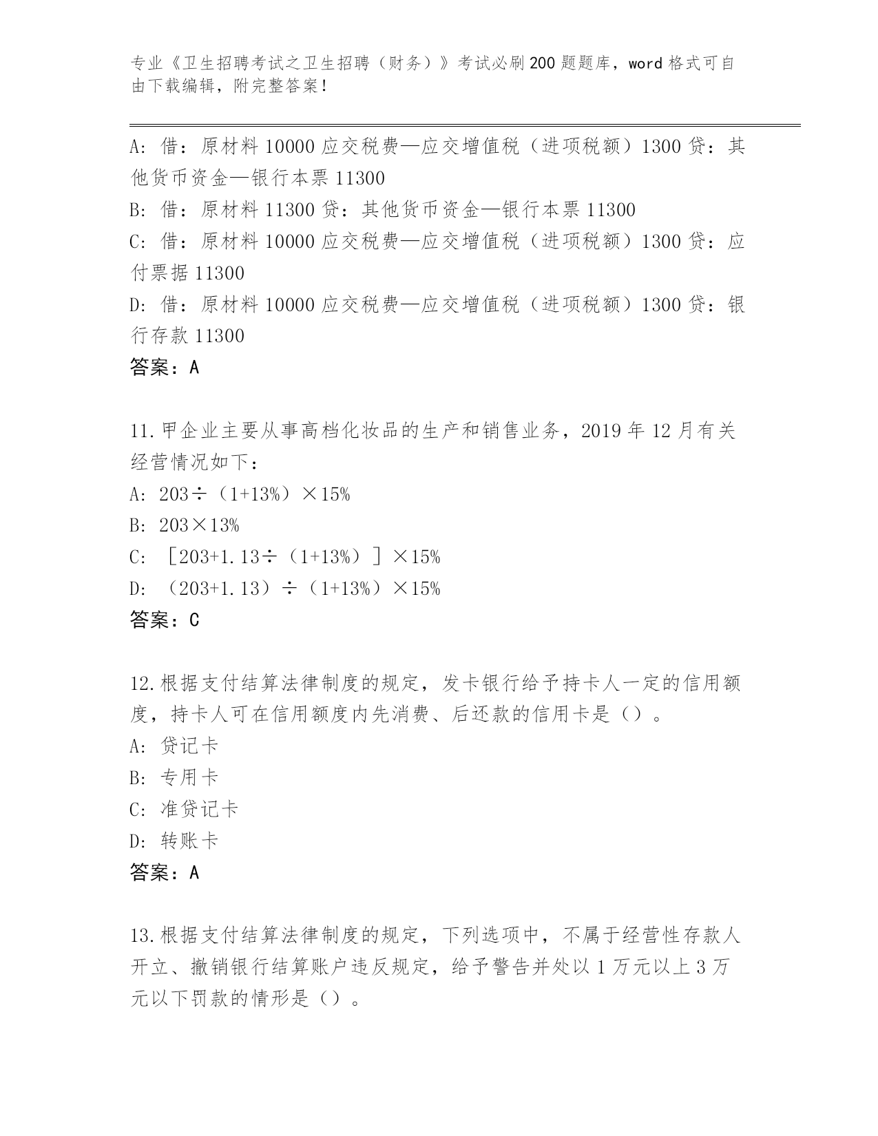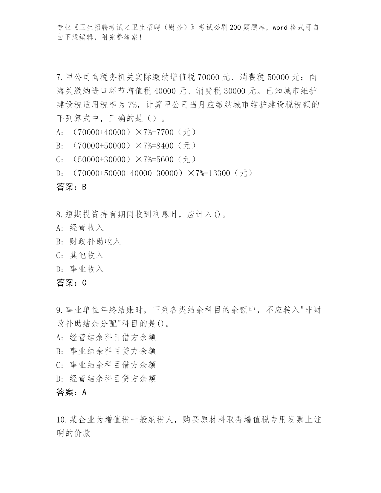2024年湖南省北塔区《卫生招聘考试之卫生招聘(财务)》考试必刷200题真题题库标准卷