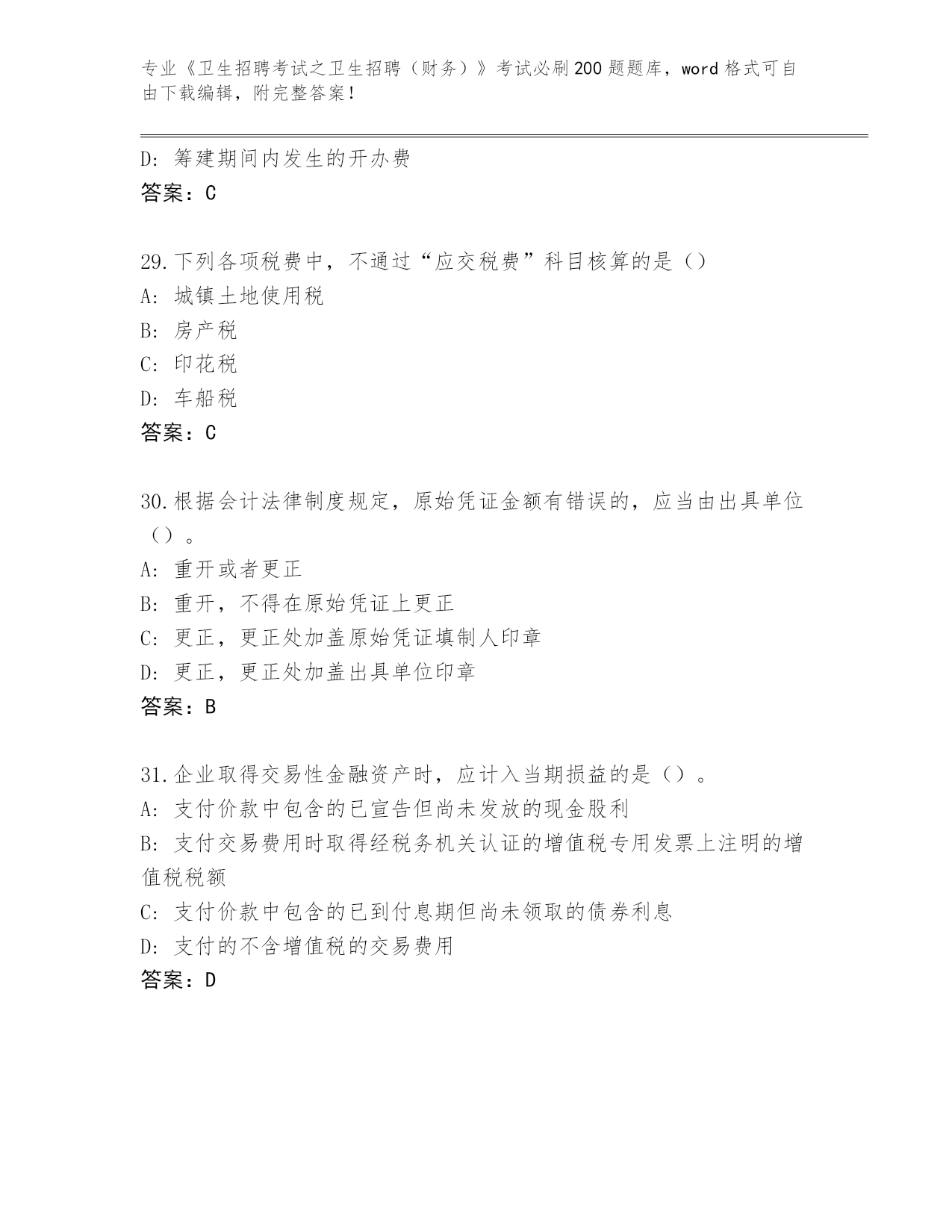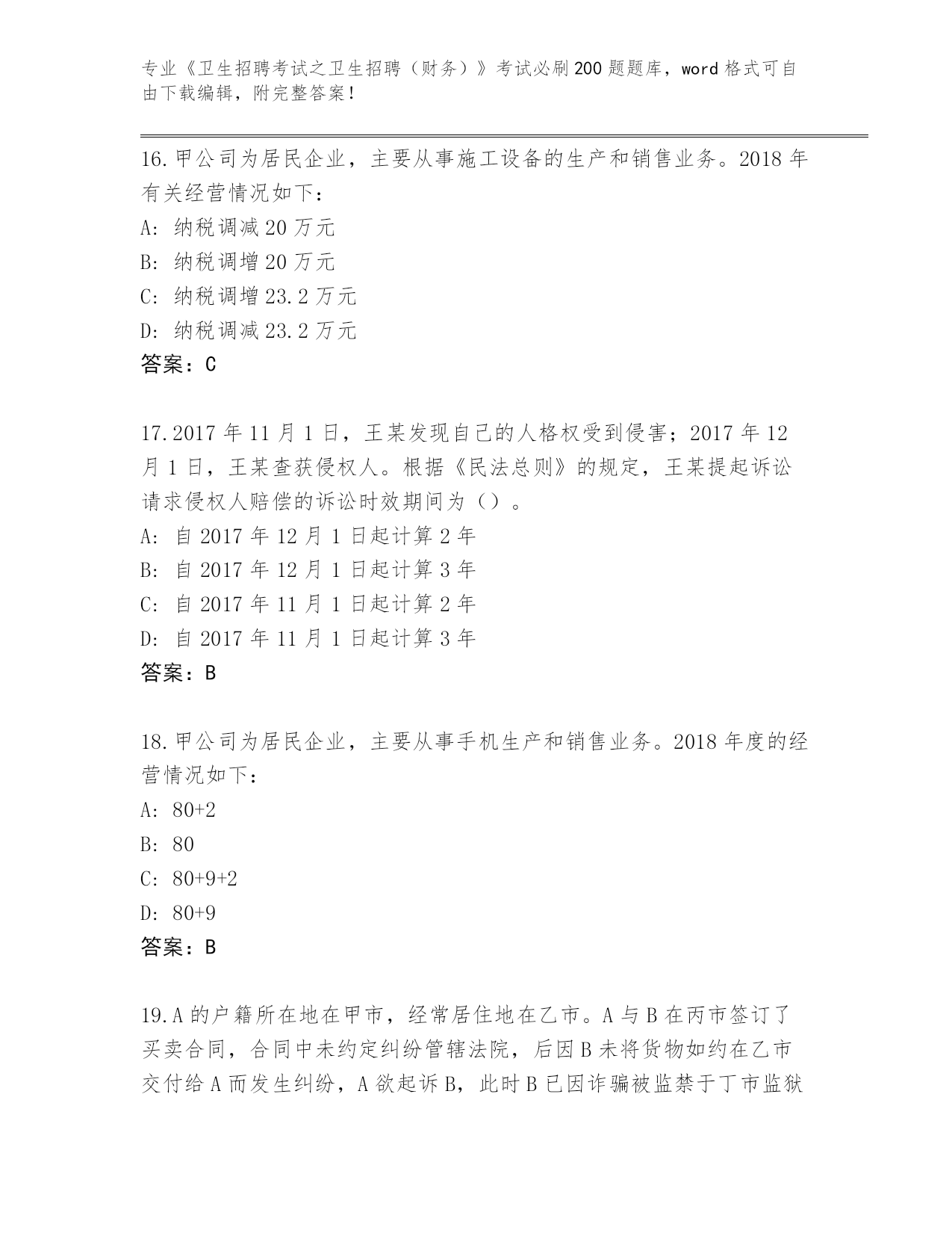 山东省《卫生招聘考试之卫生招聘(财务)》考试必刷200题真题【名校卷】
