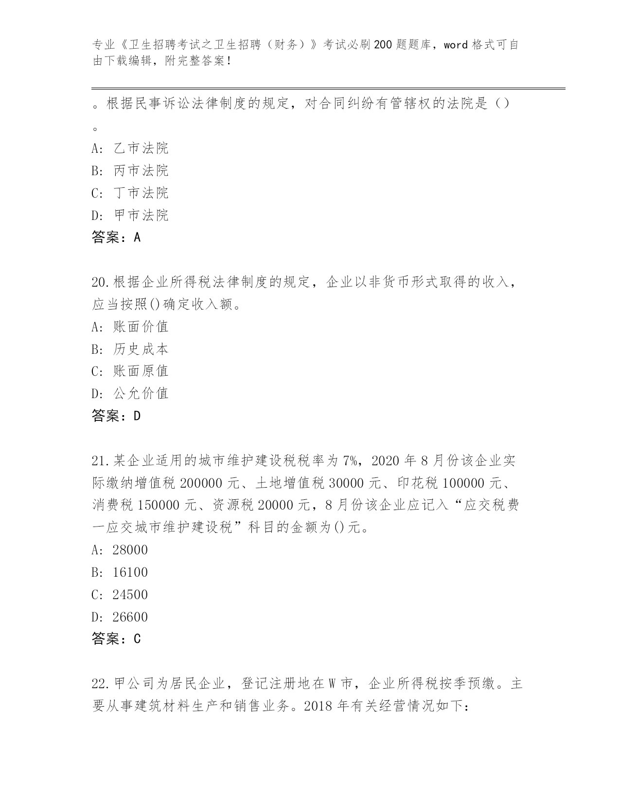 完整版黑龙江省香坊区《卫生招聘考试之卫生招聘(财务)》考试必刷200题真题【预热题】