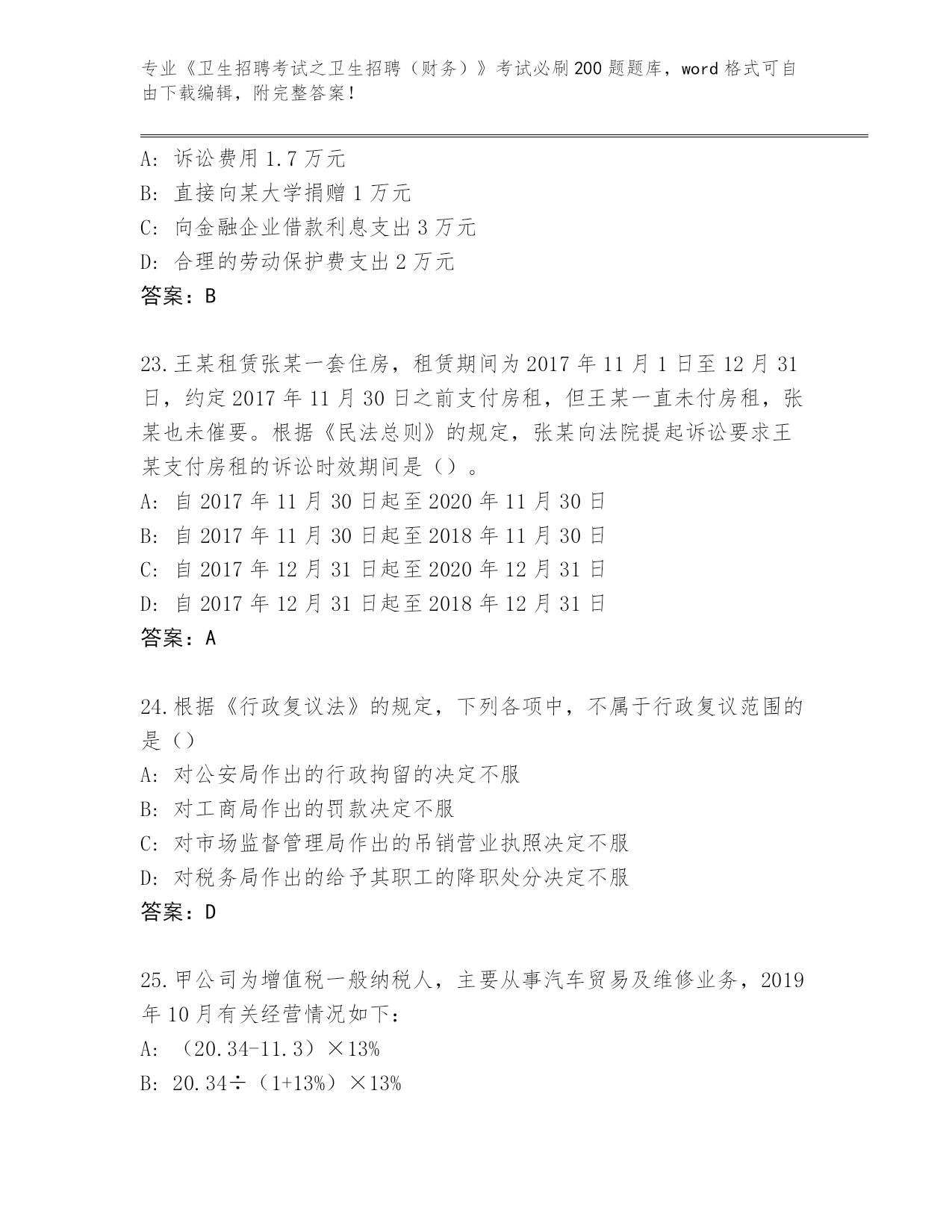 广东省整理《卫生招聘考试之卫生招聘(财务)》考试必刷200题真题【培优A卷】
