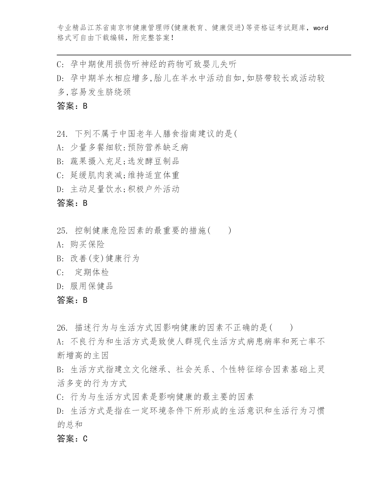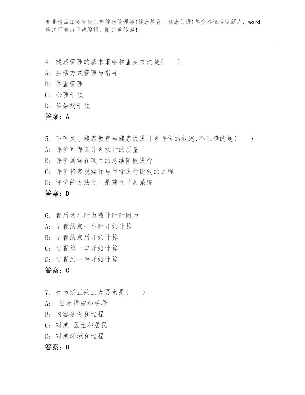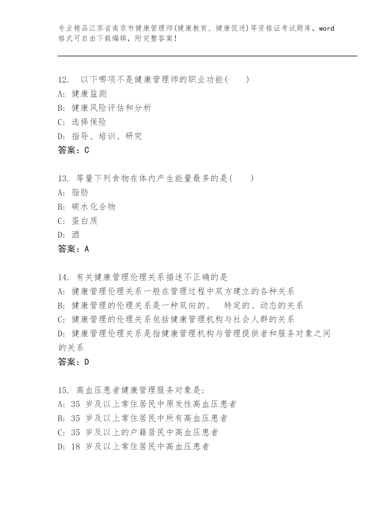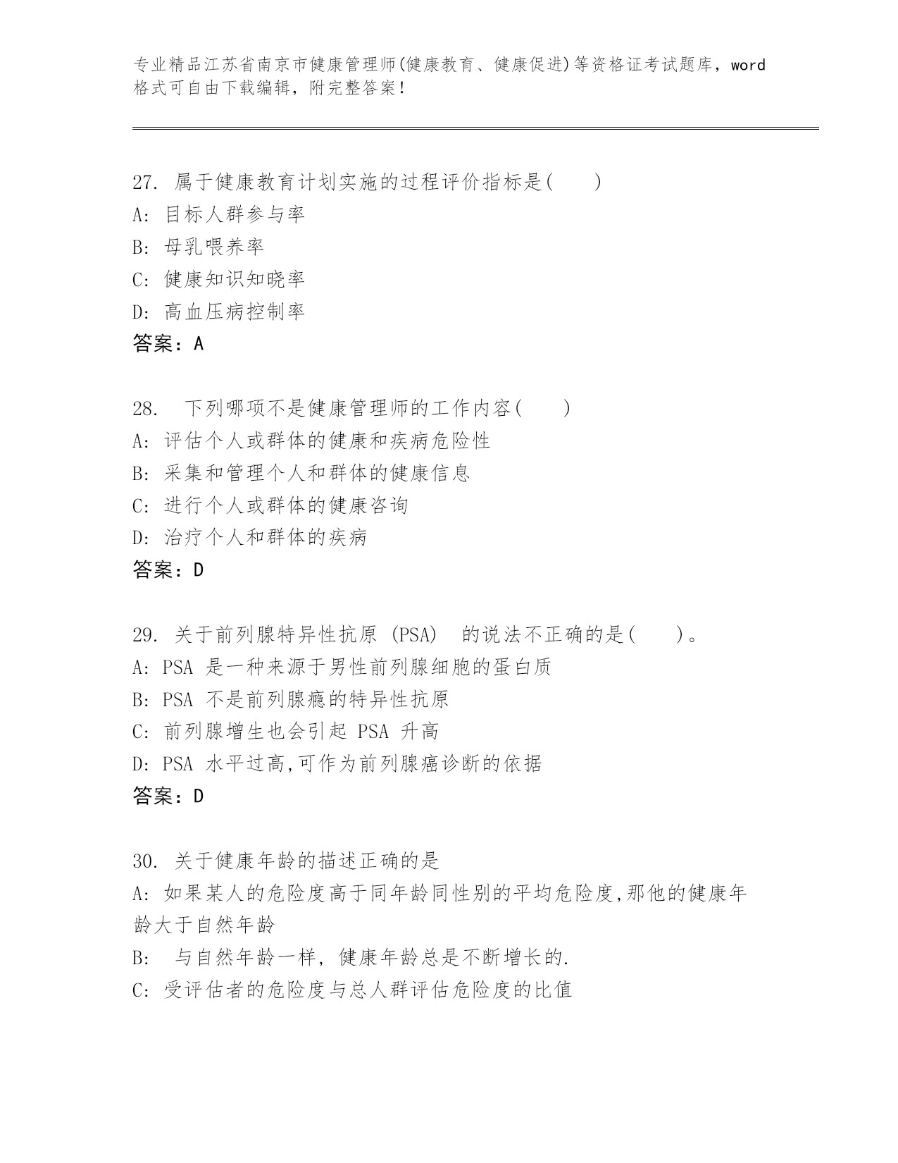 精品江苏省南京市健康管理师(健康教育、健康促进)等资格证考试王牌题库(名师推荐).docx