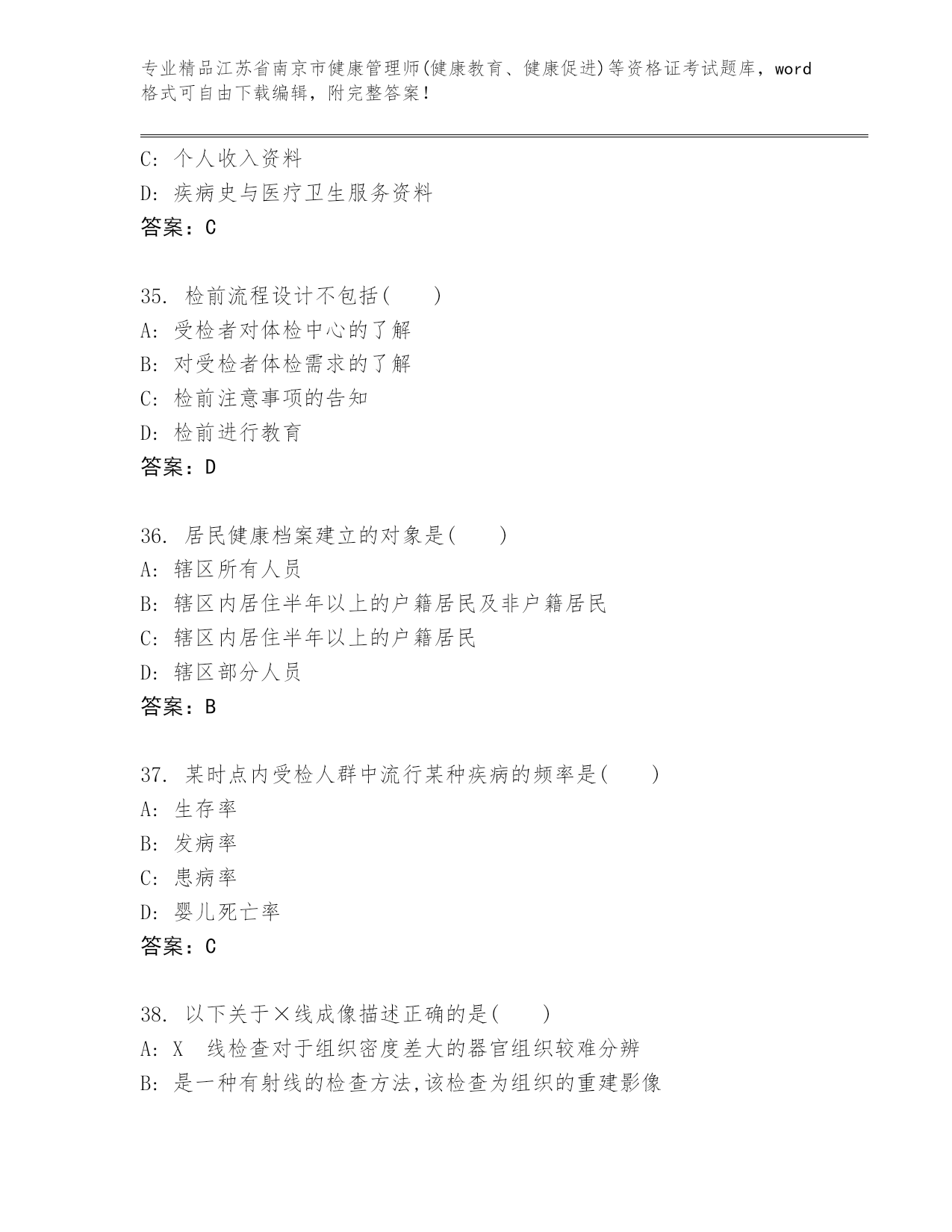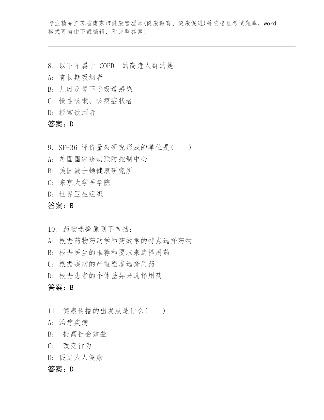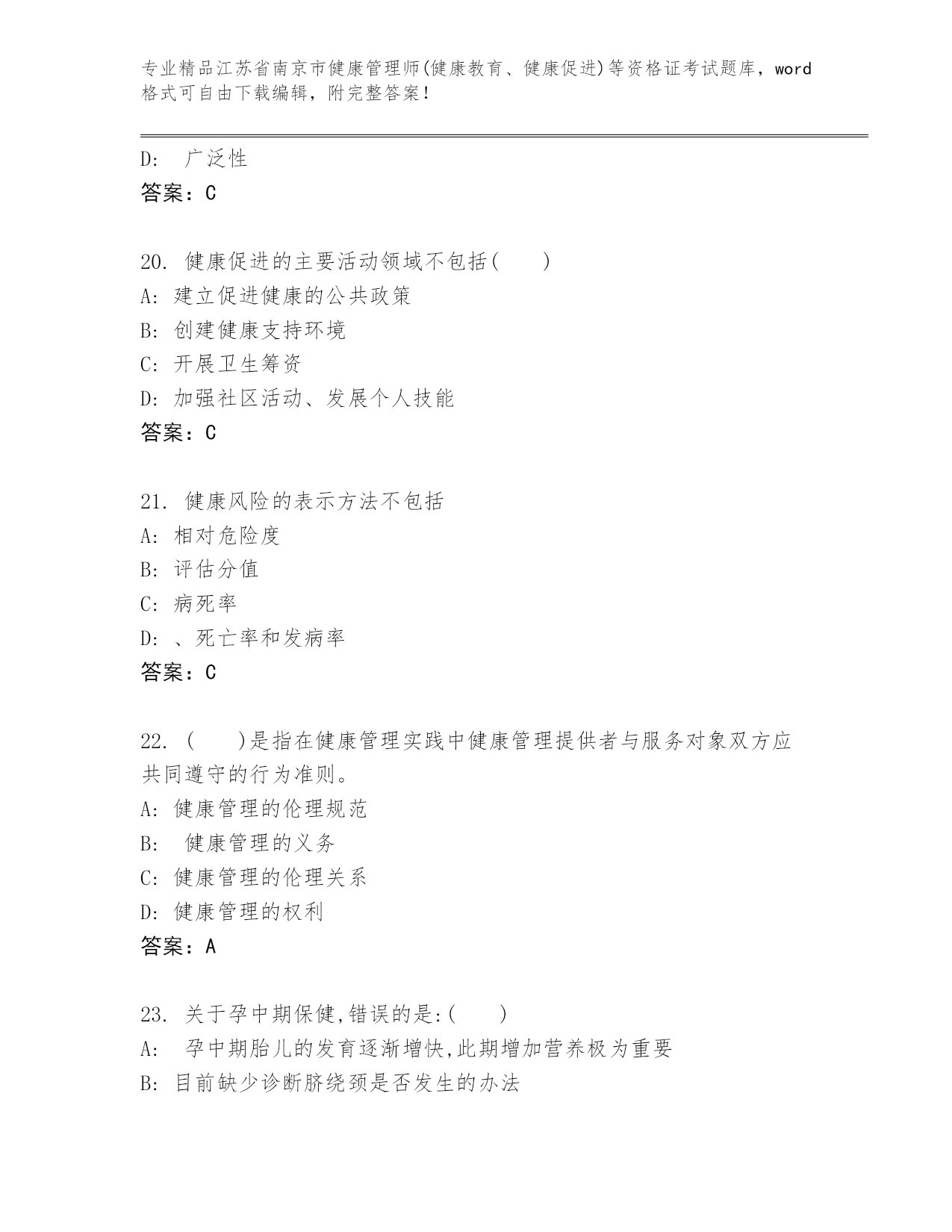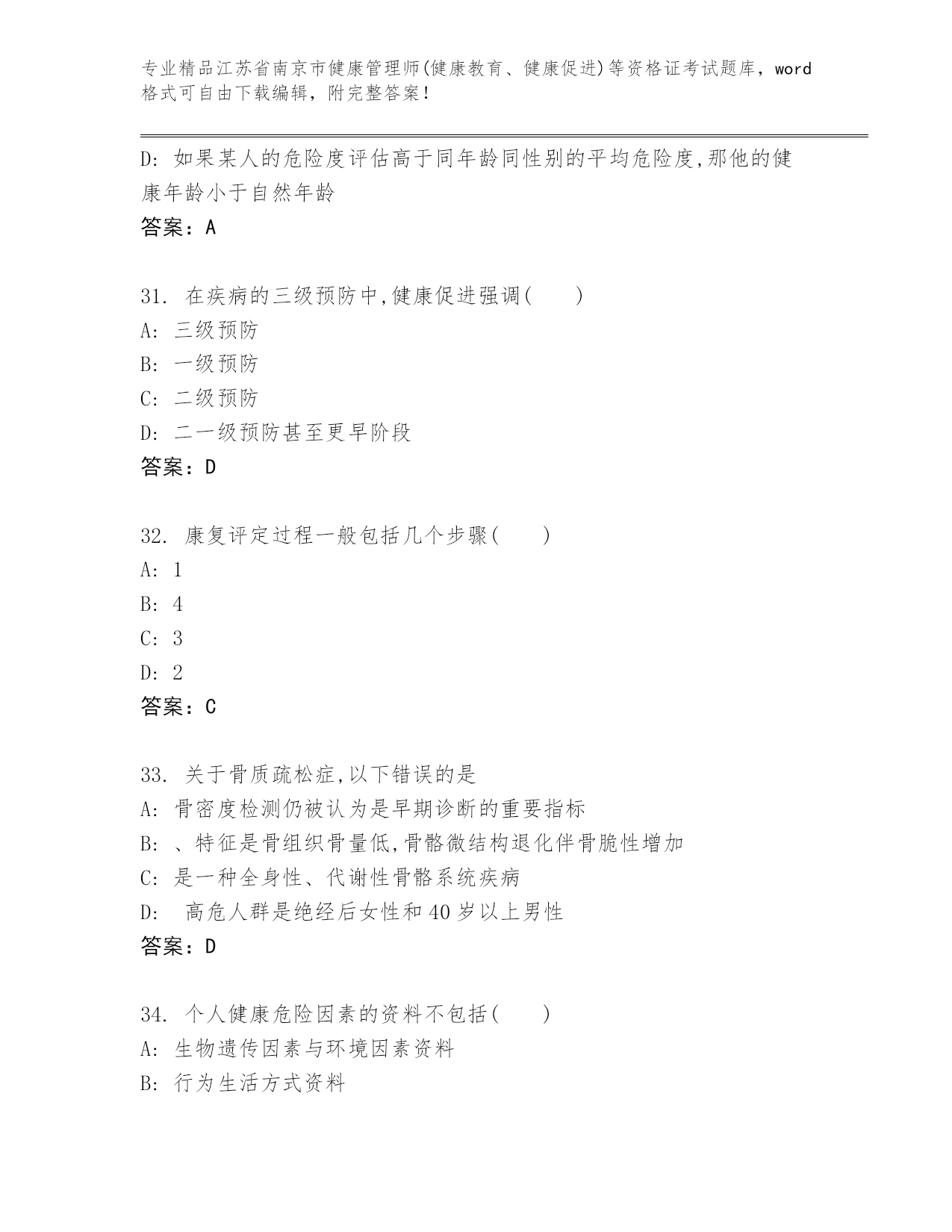 精品江苏省南京市健康管理师(健康教育、健康促进)等资格证考试王牌题库(名师推荐).docx