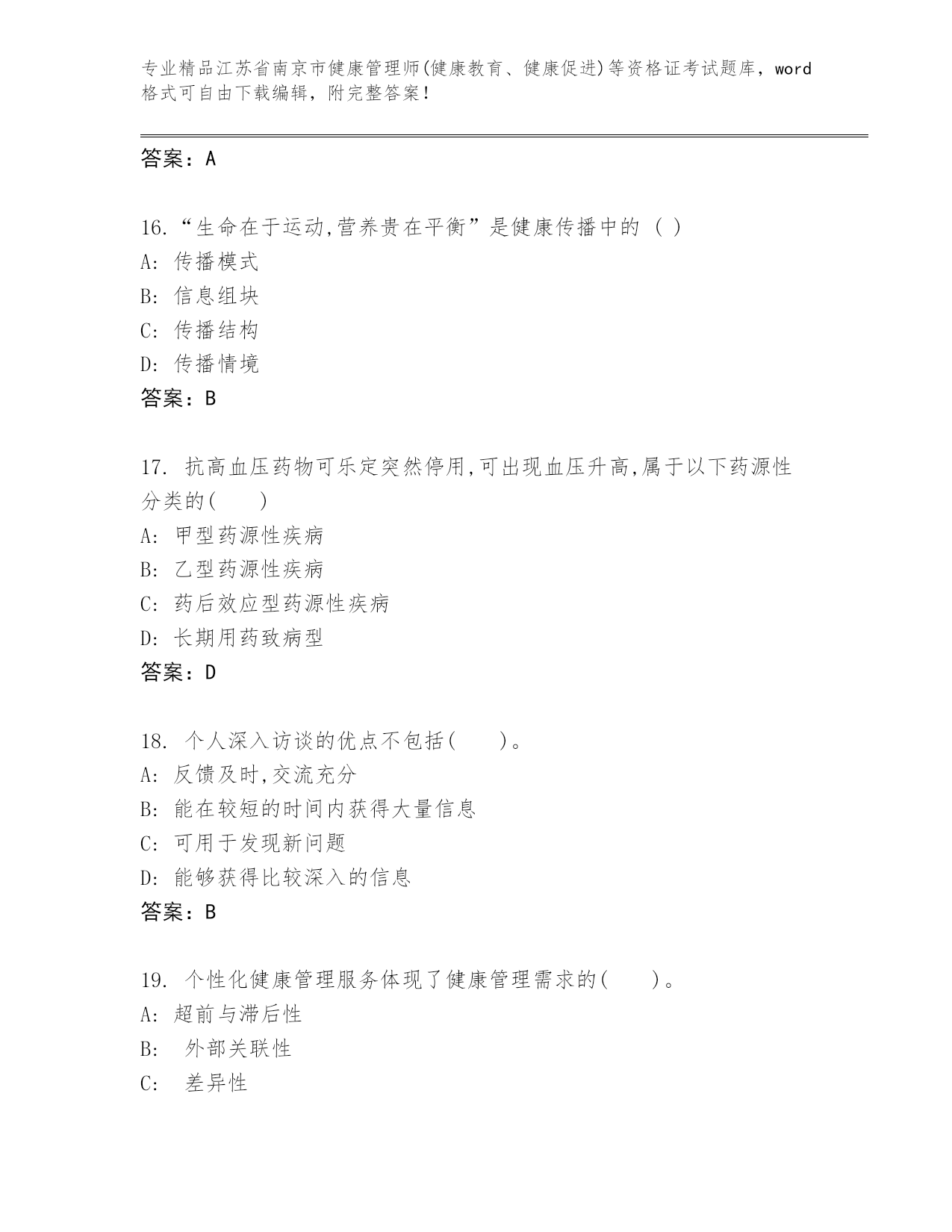 精品江苏省南京市健康管理师(健康教育、健康促进)等资格证考试王牌题库(名师推荐)