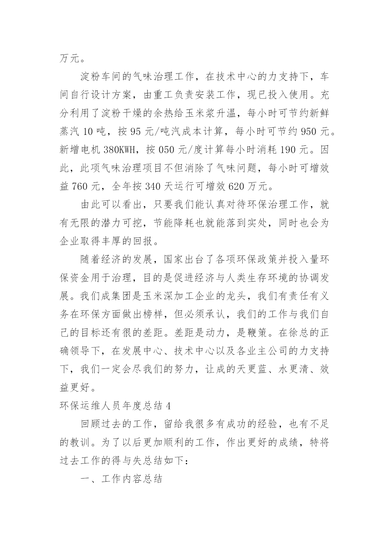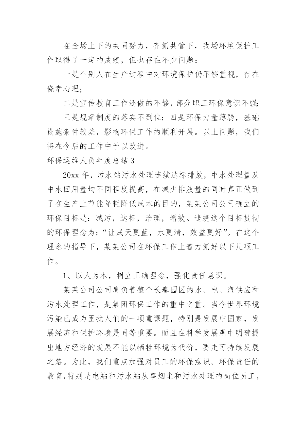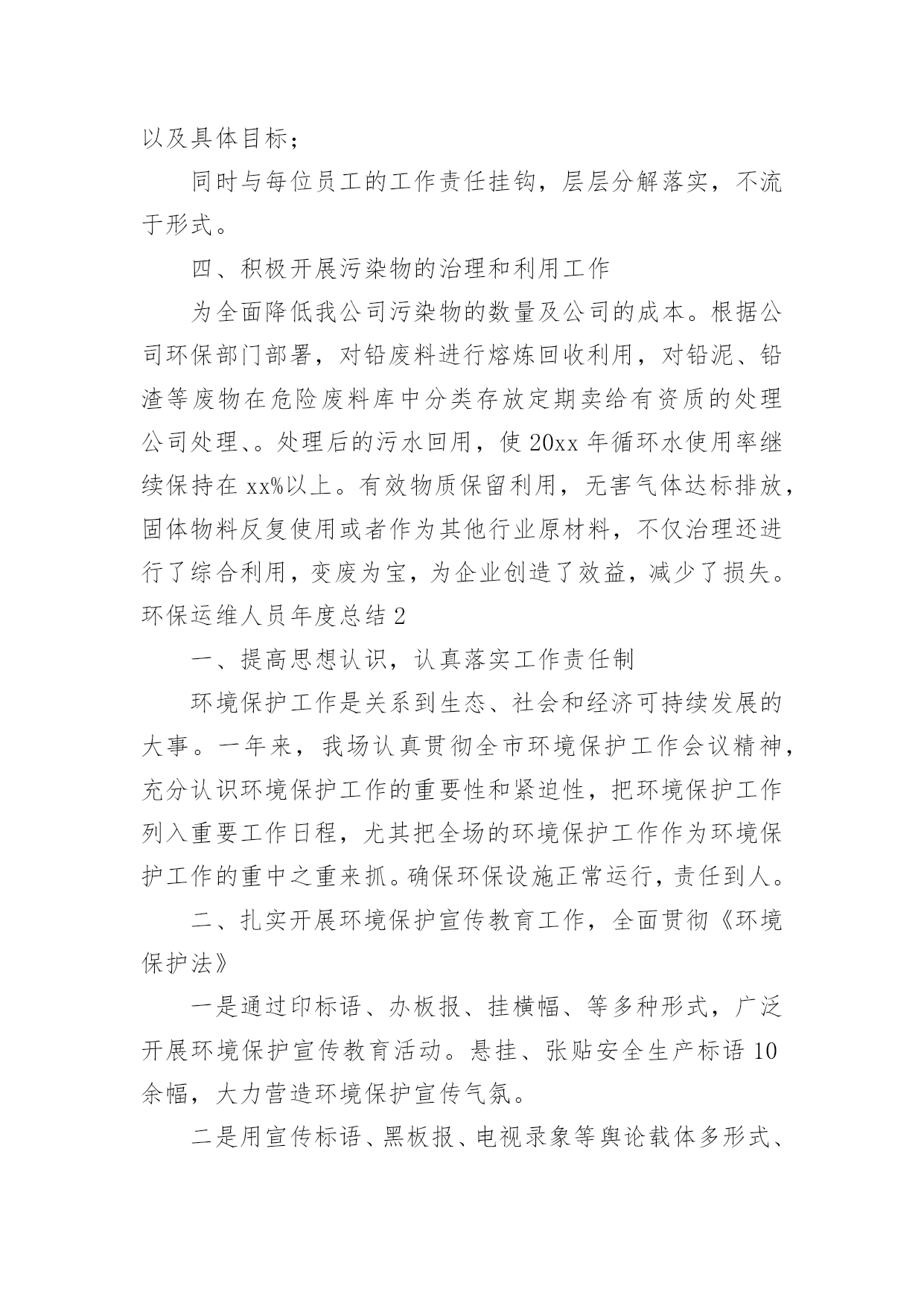 环保运维人员年度总结环保运维人员年度总结总结就是对一个时期的学习、工作或其完成情况进行一次全面系统的回顾和分析的书面材料,写总结有利于我们学习和工作能力的提高,不妨让我们认真地完成总结吧。总结怎么写才是正确的呢?以下是小编为大家整理的环保运维人员年度总结,欢迎大家分享。环保运维人员年度总结120xx年以来,公司环境保护工作在市委、市政府、市环委会、市环保局、区环保局的领导下,取得了一定的成绩,实实在在地做了大量、细致的工作,公司综合环境得到了进一步的改善,没有发生一起环境污染事件。现就一些具体工作总结如下:一、完善环境保护管理网络,加强责任制建设去年,遵照环保部门下达的环境保护工作目标任务,结合公司实际,以文件的形式下达了公司所属各部门年度环境保护工作目标任务。根据要求,在进一步明确环境保护工作由所属各部门、总经理负责制的基础上,又充实了各级兼职环保员,具体负责各辖区内的环保各项工作。二、加强宣传、培训工作,强化环境保护的意识组织人员参加了有关部门组织的环保专题会议;并在公司内部做了大力宣传。在全公司营造了保护环境、全民参与的浓烈氛围,让环保走进了我们的生活、生产,让大家更深入全面地了解环保部门的职责、环境质量的状况、环境保护工作的任重道远。同时我以“422”地球日、“65”世界环境日、科普宣传周为契机,广泛开展了环保宣传工作,悬挂横幅,制作了环保宣传站牌,张贴环保宣传标语等。公司花费了xxx多万元对厂区内xx%以上空场地都进行了绿化,并每年花x万元请绿化公司专人养护。我们以让员工走进公司大门给人以花园式工厂的感觉为目标,今后还要在厂区内进一步规划绿化。三、坚持环保工作,做好外请监督内抓管理去年x月,在通过了ISO14000环境管理体系后,我公司再次邀请了“xx环境资源管理咨询有限公司”组织人员对我公司现场进行环境影响考察。检查小组在重点检查了去年考察时提出的'问题的改进情况后,进行了下一轮的环境、健康与安全评估,提出了许多更深层次的问题。此活动进一步强化了现场检查力度,增强了企业员工的环境意识,优化了我们的生活工作环境,引入了更先进的管理概念。去年年底,公司响应环保局的要求,在污水总排口处加装了一套污水在线监控系统,使任何人都可以随时随地在英特网上查看我公司污水治理和排放情况的数据和画面,增强了治污工作的透明度和监管力度。公司的环境管理方针是节能降耗、达标排放、持续改进、污染预防,并围绕这一方针,在每年初制定了关于水、气、声、渣的治理排放要求以及具体目标;同时与每位员工的工作责任挂钩,层层分解落实,不流于形式。四、积极开展污染物的治理和利用工作为全面降低我公司污染物的数量及公司的成本。根据公司环保部门部署,对铅废料进行熔炼回收利用,对铅泥、铅渣等废物在危险废料库中分类存放定期卖给有资质的处理公司处理、。处理后的污水回用,使20xx年循环水使用率继续保持在xx%以上。有效物质保留利用,无害气体达标排放,固体物料反复使用或者作为其他行业原材料,不仅治理还进行了综合利用,变废为宝,为企业创造了效益,减少了损失。环保运维人员年度总结2一、提高思想认识,认真落实工作责任制环境保护工作是关系到生态、社会和经济可持续发展的大事。一年来,我场认真贯彻全市环境保护工作会议精神,充分认识环境保护工作的重要性和紧迫性,把环境保护工作列入重要工作日程,尤其把全场的环境保护工作作为环境保护工作的重中之重来抓。确保环保设施正常运行,责任到人。二、扎实开展环境保护宣传教育工作,全面贯彻《环境保护法》一是通过印标语、办板报、挂横幅、等多种形式,广泛开展环境保护宣传教育活动。悬挂、张贴安全生产标语10余幅,大力营造环境保护宣传气氛。二是用宣传标语、黑板报、电视录象等舆论载体多形式、多渠道的广泛开展环境保护宣传教育,将环境保护传递与全场的职工心中,做到人人皆知。三是进一步加强了自身厂容厂貌的整治,用于美化、亮化、硬化、绿化工程投入经费共计达20万元。四是订阅环境保护书刊。通过广泛宣传,使干部职工重视支持环保工作、爱护环境、保护环境的`意识进一步增强。三、环境监理和管理工作任务落到了实处一是对对甲酚生产工序完善设施保障正常运行:1、磺化工序结晶岗位设备及一楼的离心机出口、母液输送沟和母液池散发气味等部位。全部加玻璃钢封闭,安装喷淋吸收装置,通过引风机将散发的气味经管道引至喷淋吸收装置,进行集中处理。2、对中和酸化工序,生产设备,中间槽,储存容器现敞口操作,容易挥发气味的地方。所有设备全部密封,加引风机和喷淋回收装置,回收成份套回生产使用。3、碱熔工序存在的的问题是反应生成的水蒸气尾气带有气味,虽然经过碱雾吸收塔喷淋吸收,冷凝回收,但排放的水蒸气中还存有气味,效果不理想。我们通过考察论证,借鉴同行业的先进经验,决定进行第三次改造,投资约200多万元,对碱熔消化