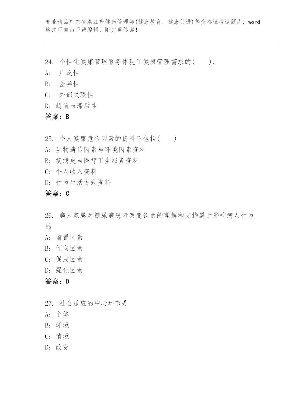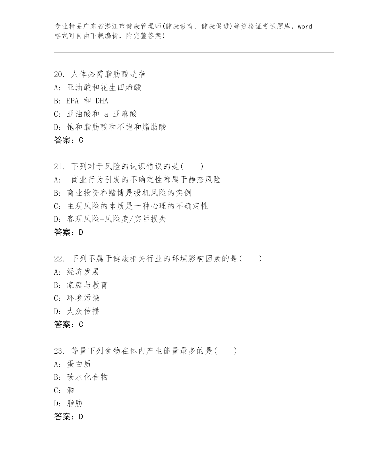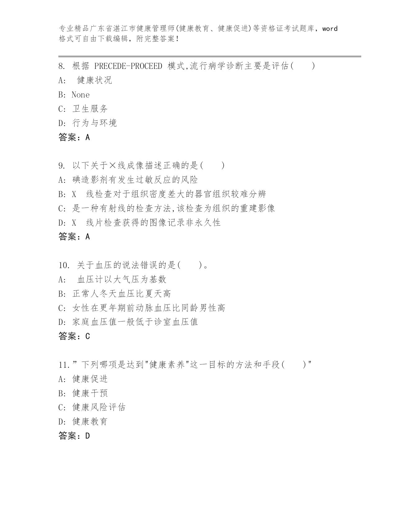 精品广东省湛江市健康管理师(健康教育、健康促进)等资格证考试大全【各地真题】