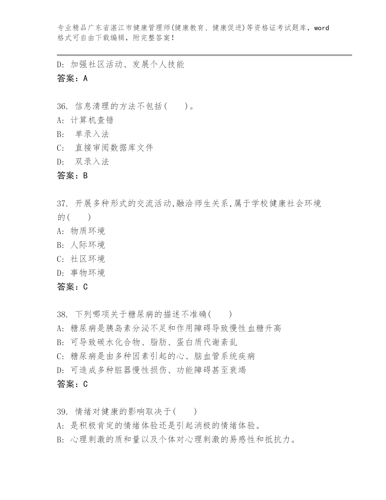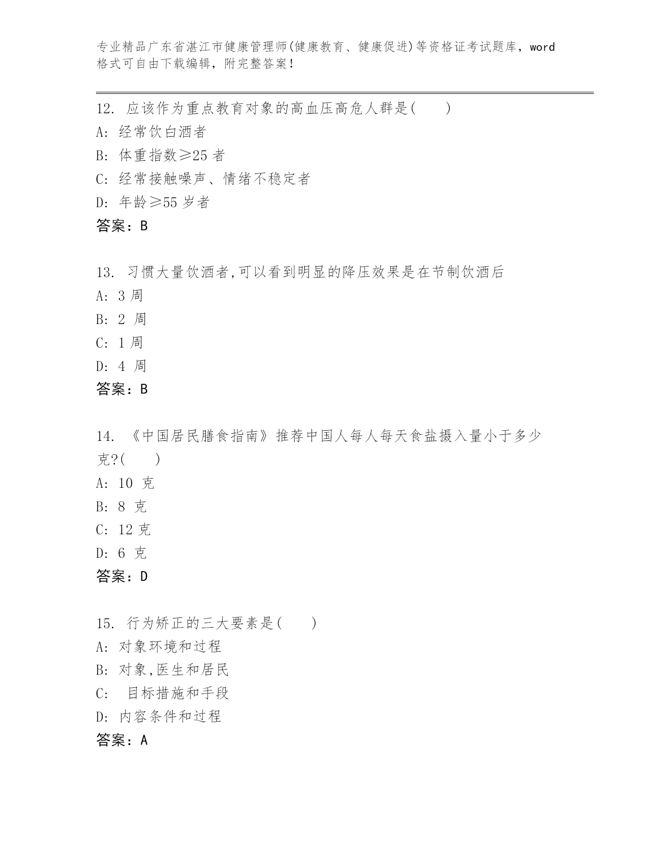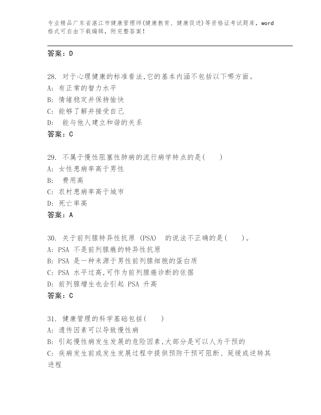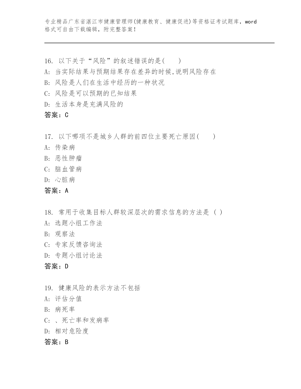 精品广东省湛江市健康管理师(健康教育、健康促进)等资格证考试大全【各地真题】