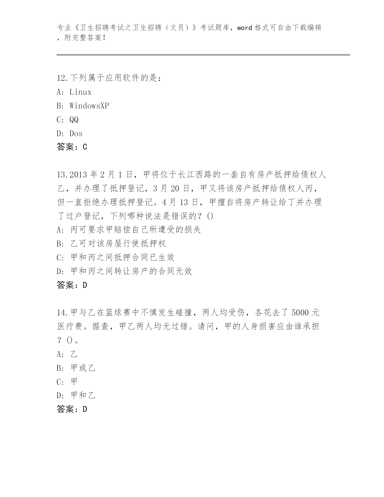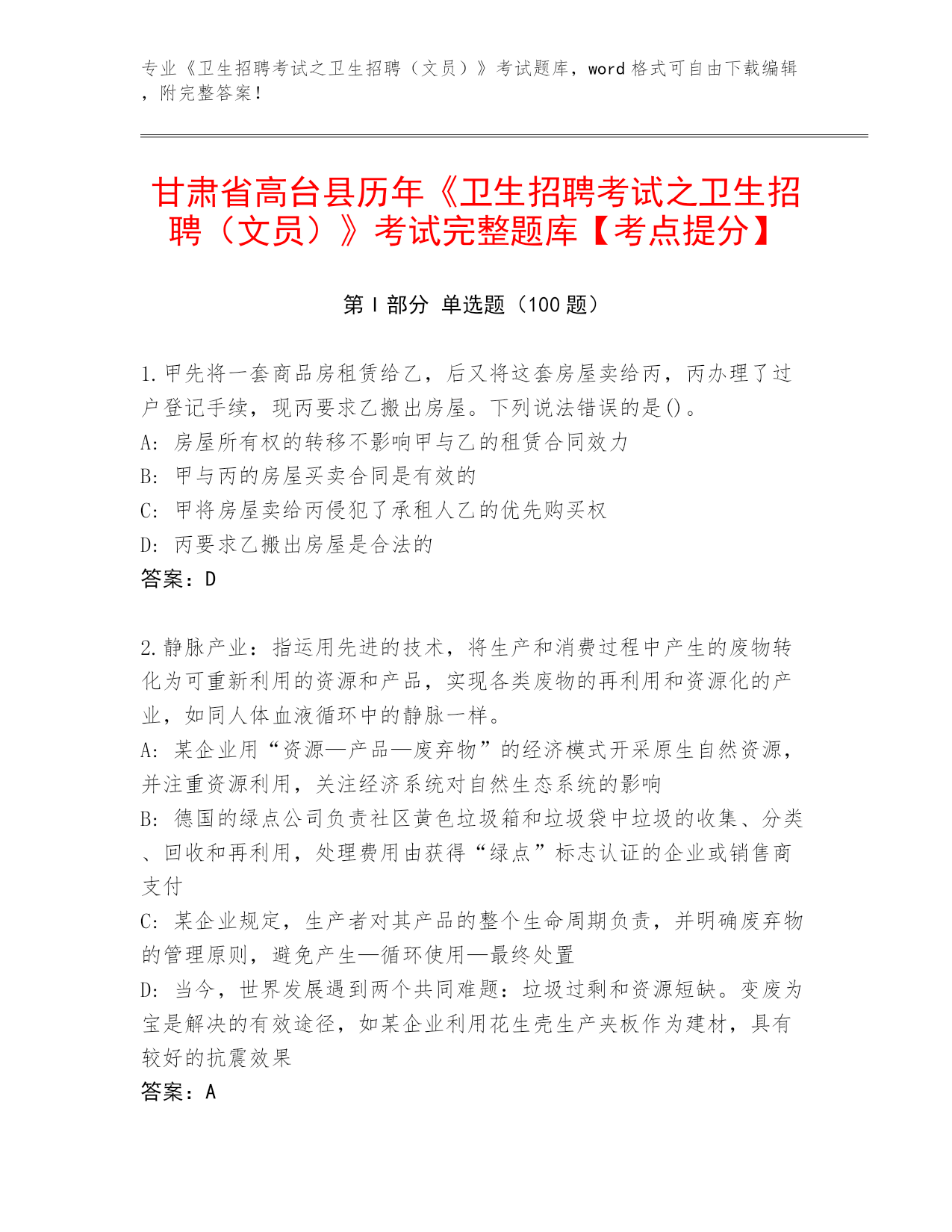 甘肃省高台县历年《卫生招聘考试之卫生招聘(文员)》考试完整题库【考点提分】.docx