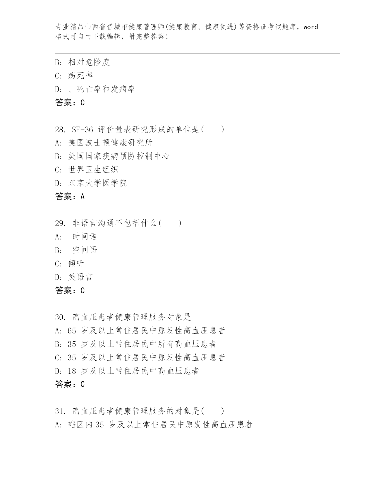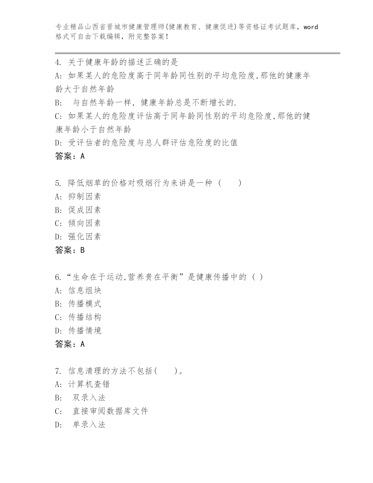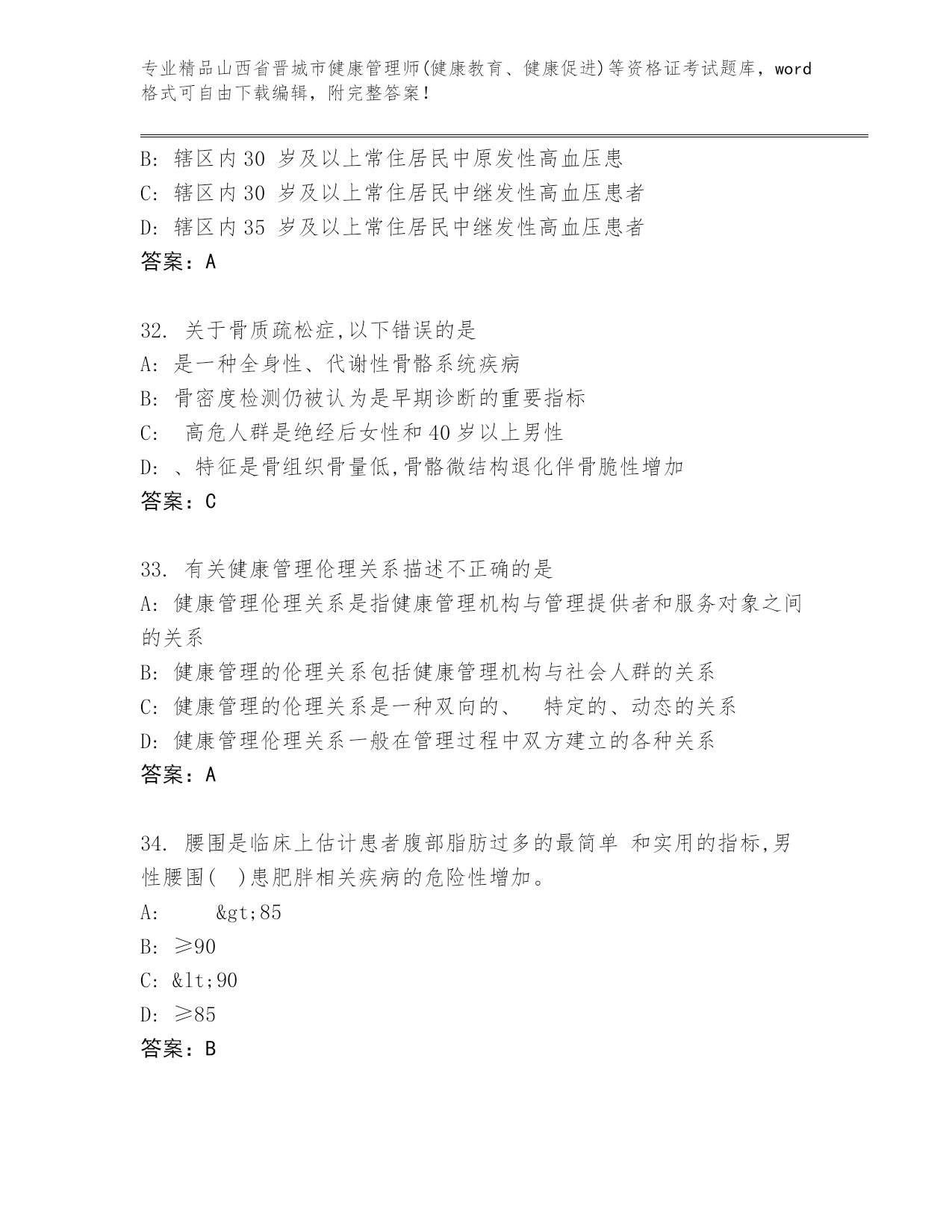 山西省晋城市健康管理师(健康教育、健康促进)等资格证考试王牌题库【预热题】.docx