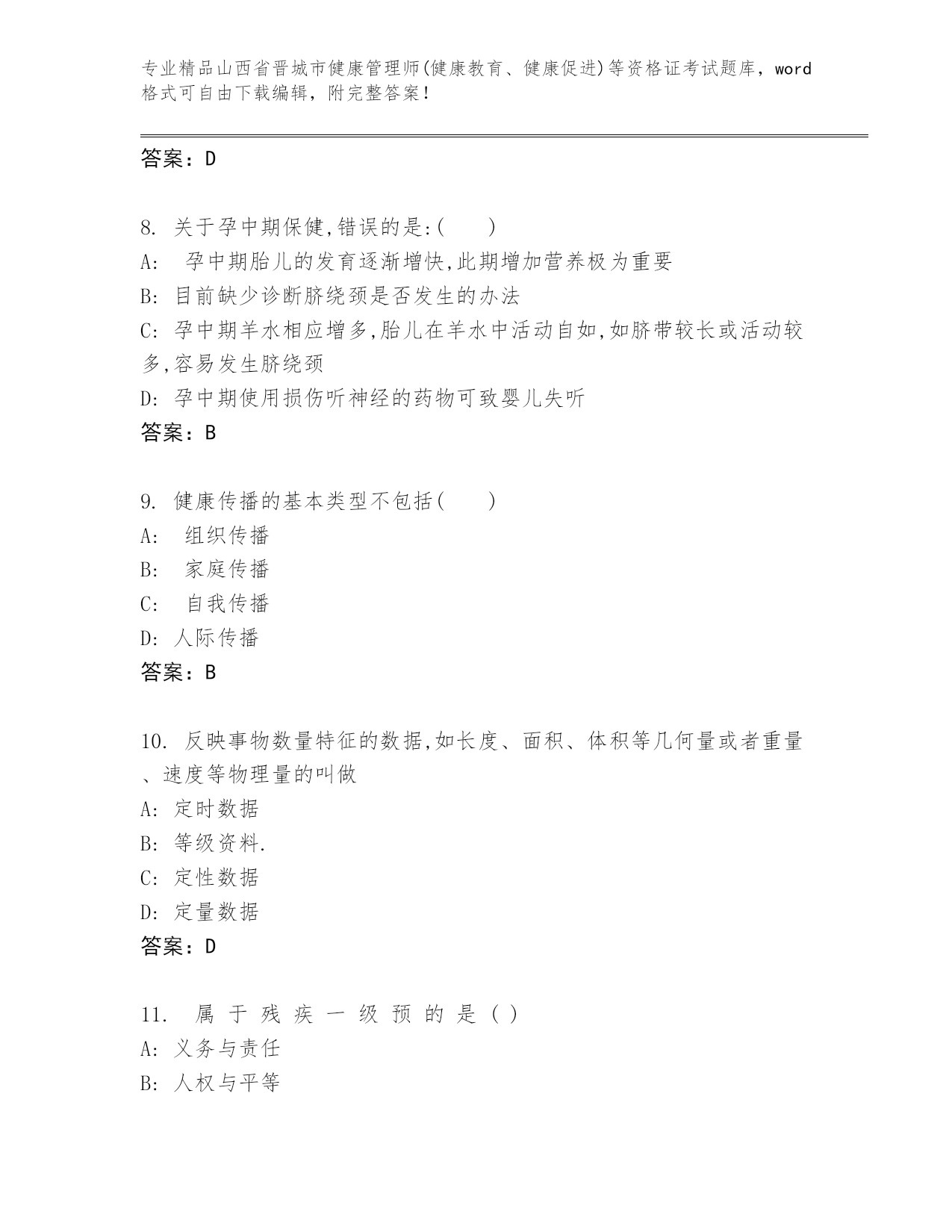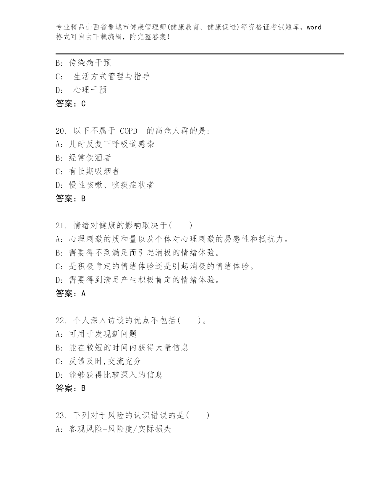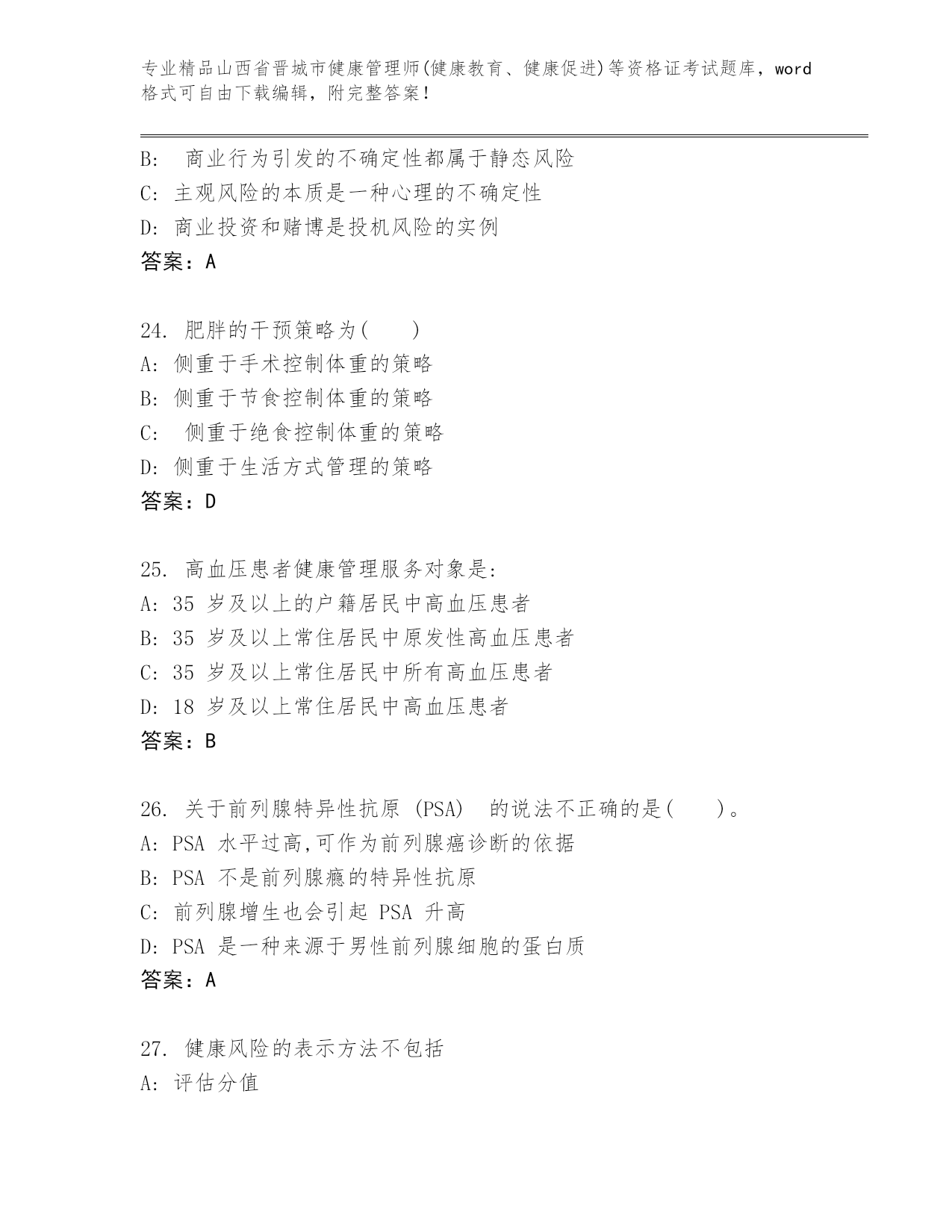 山西省晋城市健康管理师(健康教育、健康促进)等资格证考试王牌题库【预热题】.docx