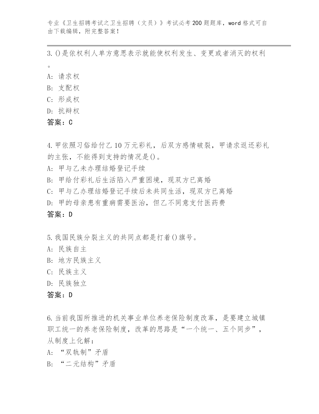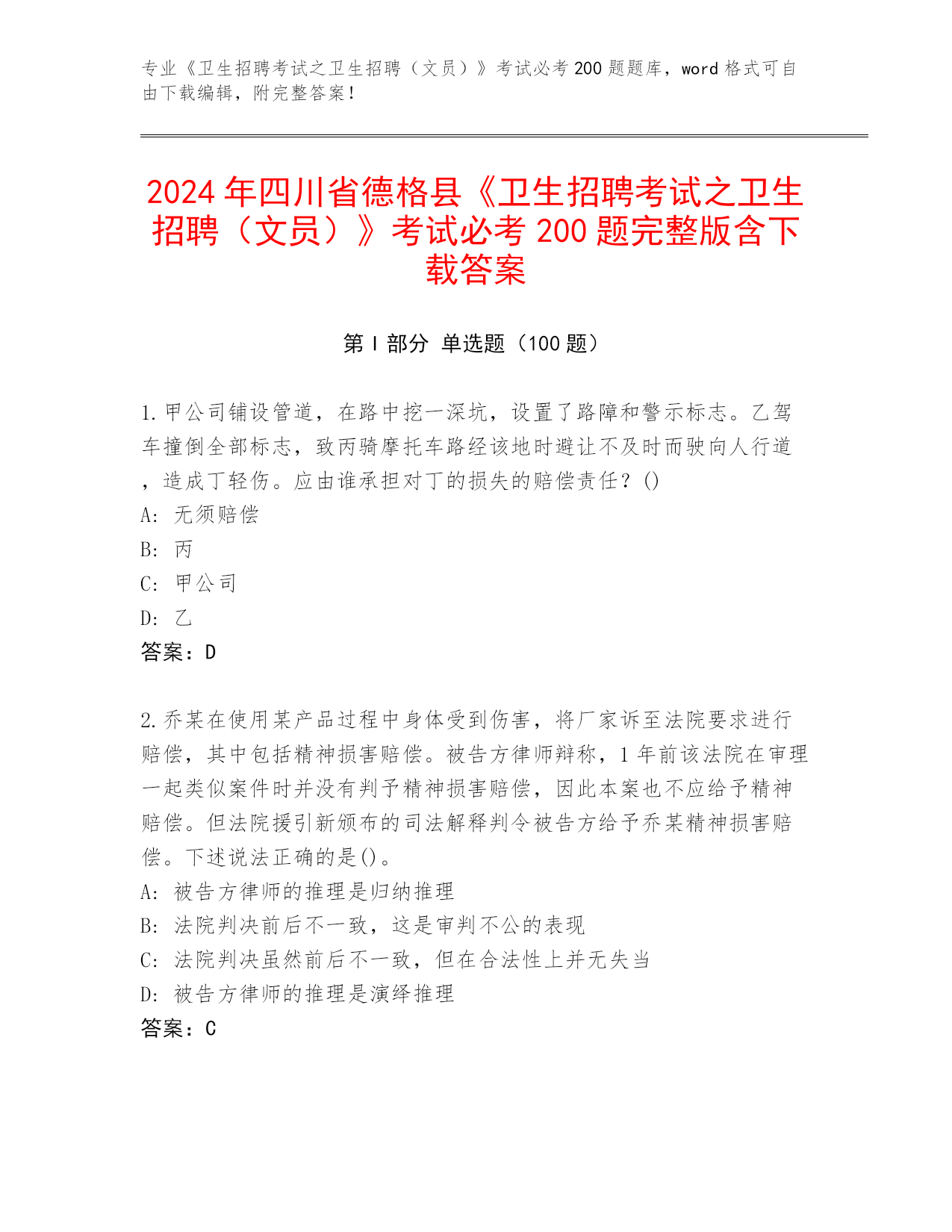2024年四川省德格县《卫生招聘考试之卫生招聘(文员)》考试必考200题完整版含下载答案