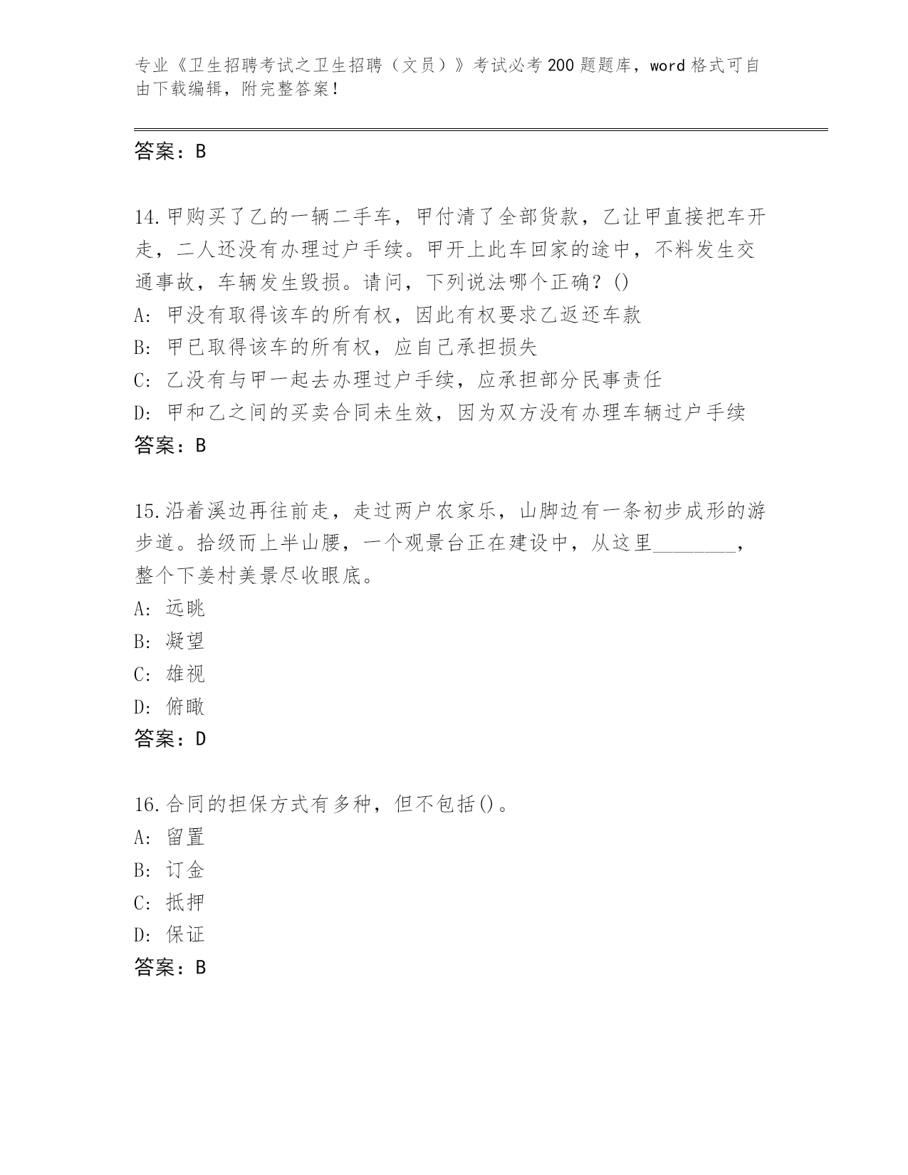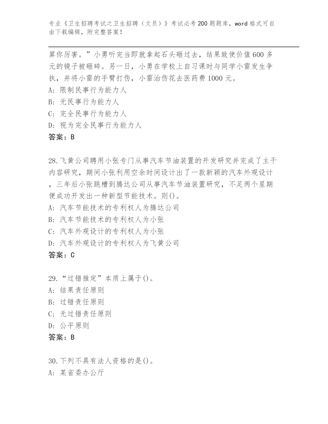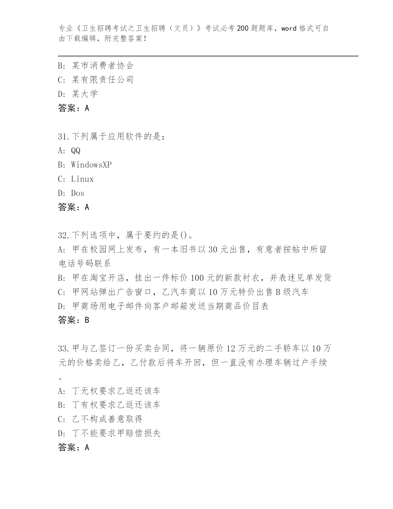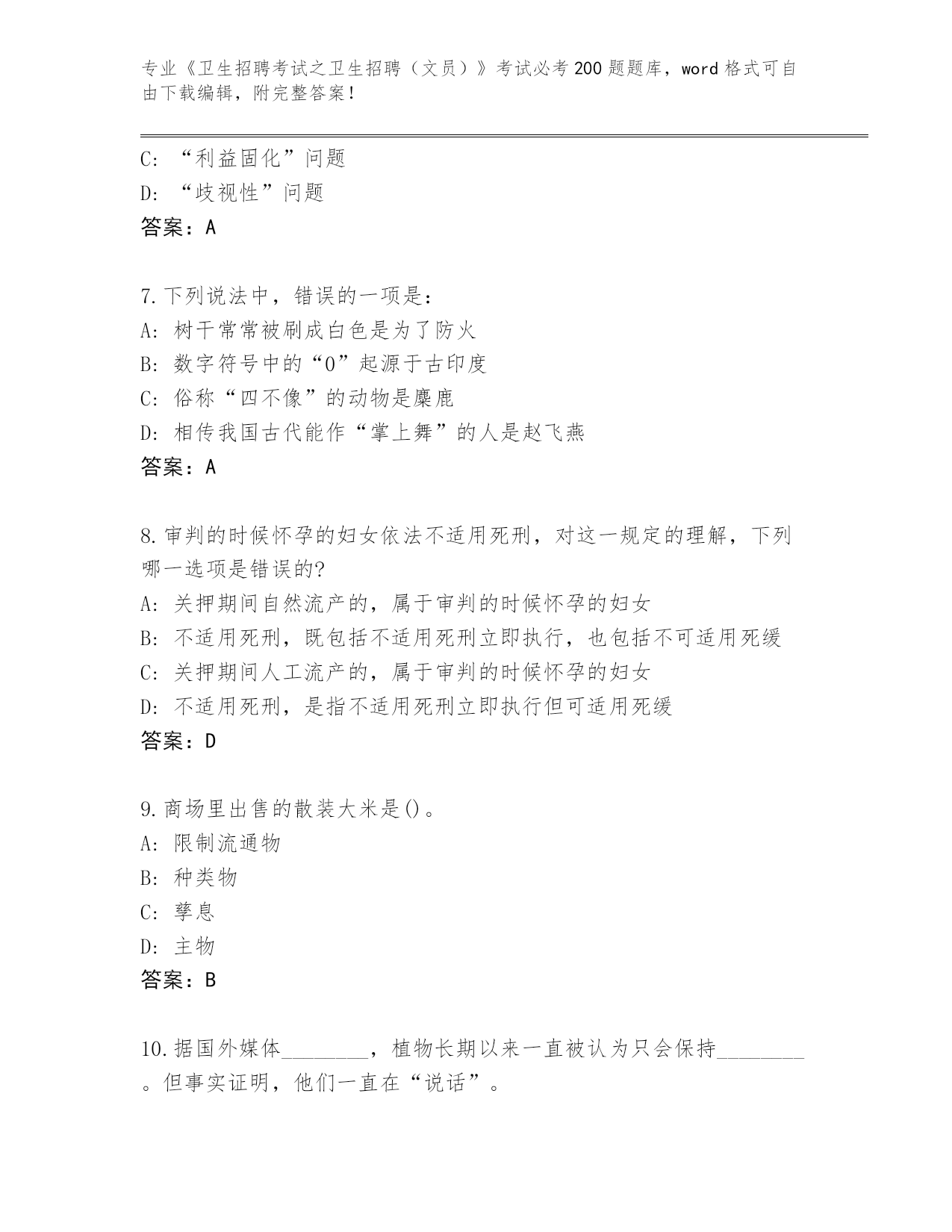 四川省《卫生招聘考试之卫生招聘(文员)》考试必考200题完整版含解析答案