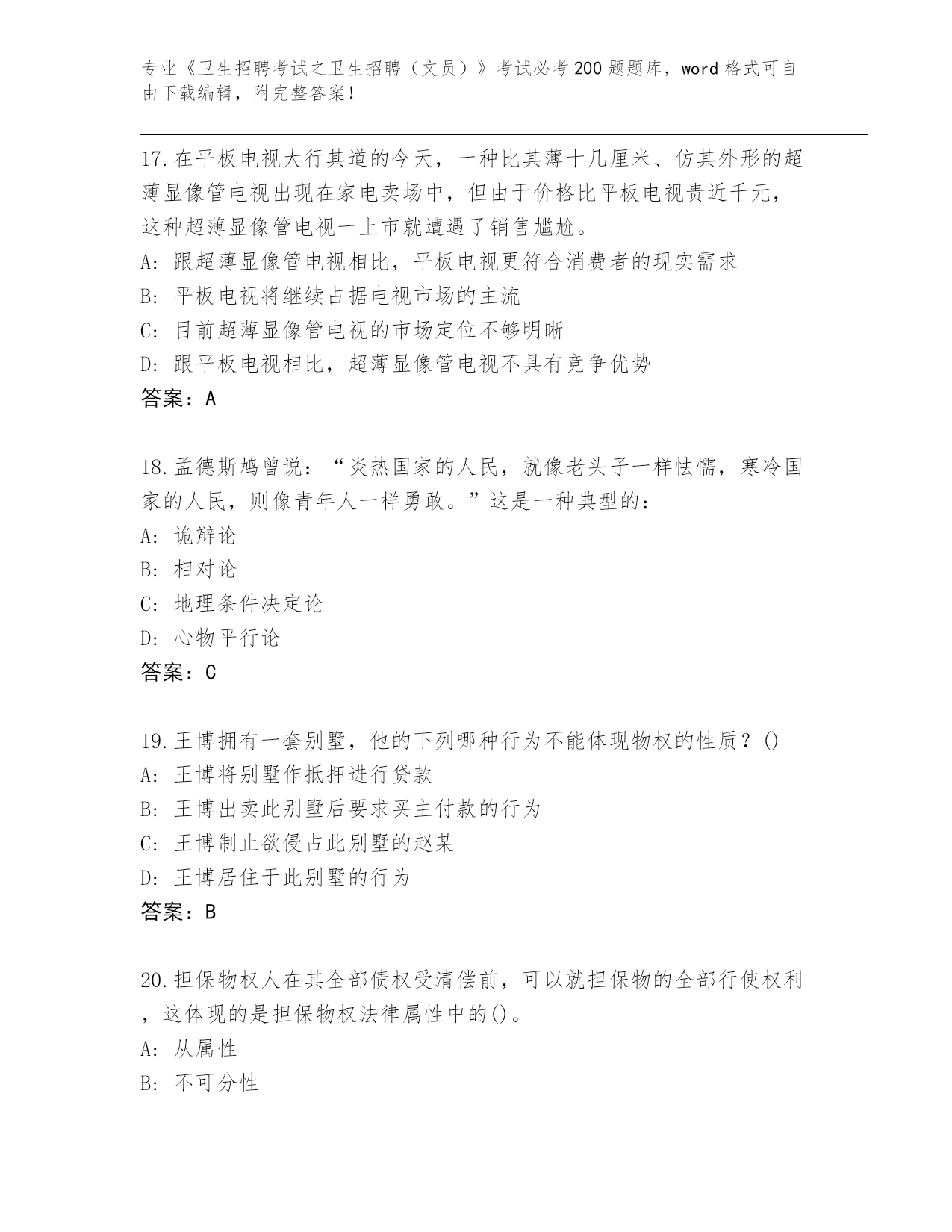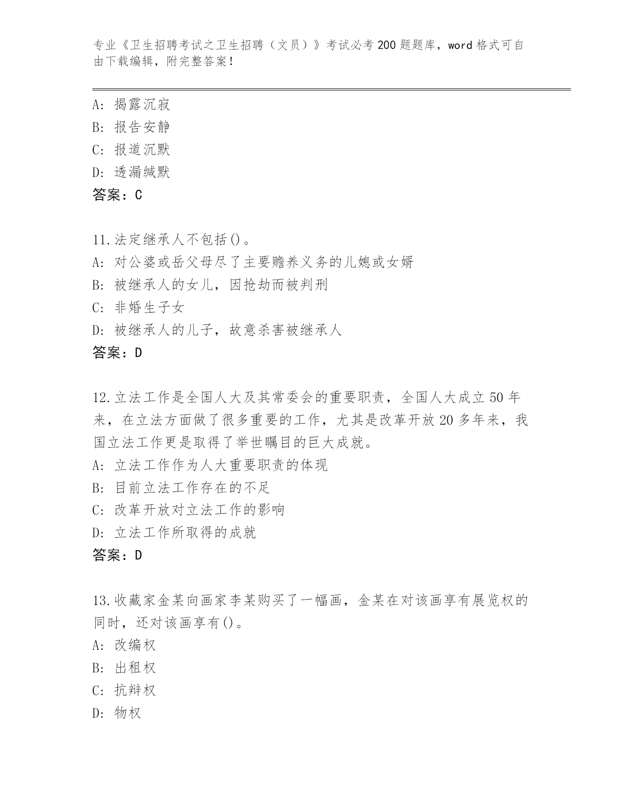 甘肃省完整版《卫生招聘考试之卫生招聘(文员)》考试必考200题完整版答案下载
