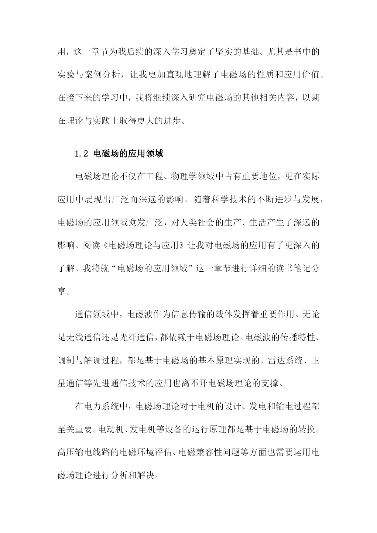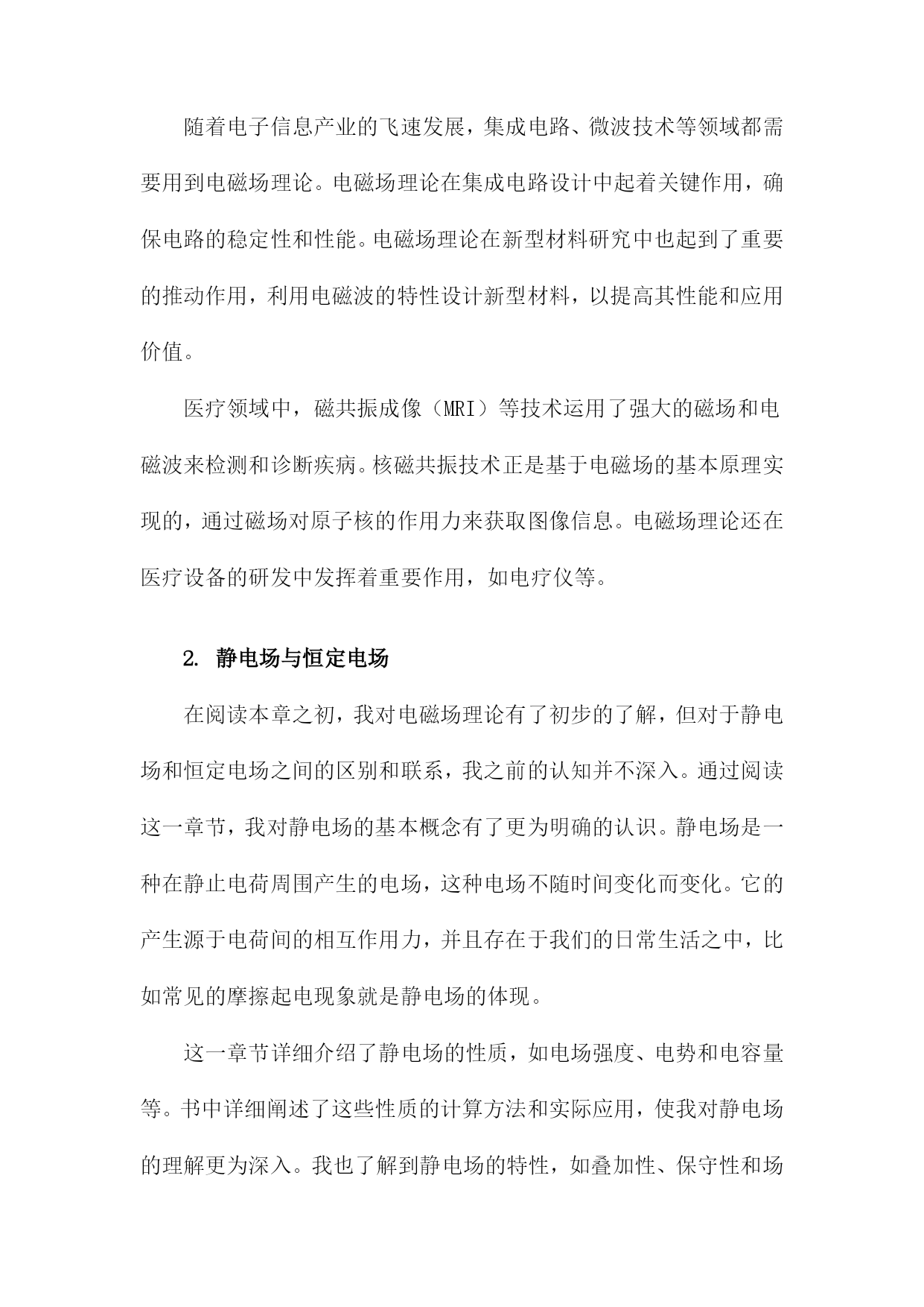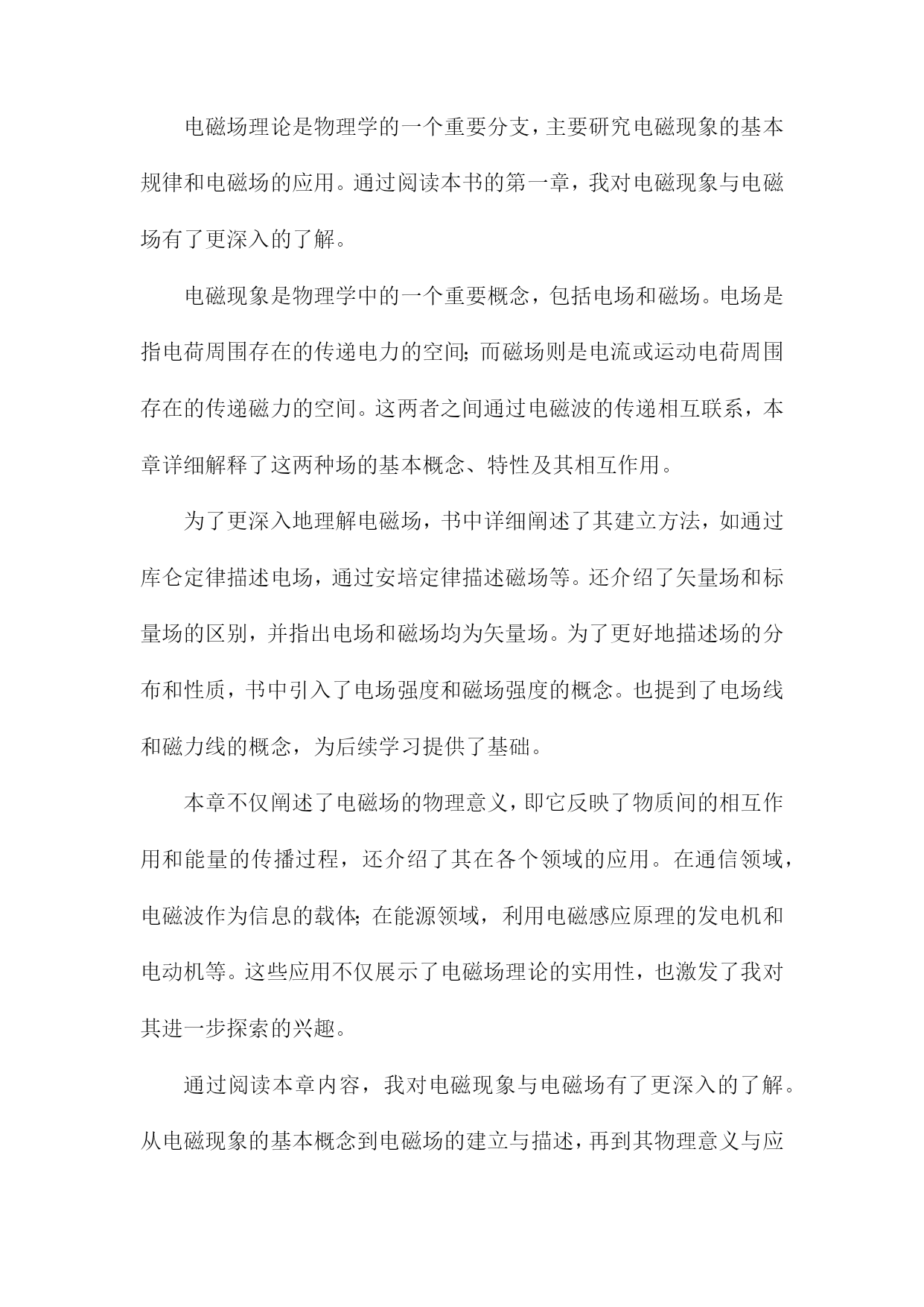 《电磁场理论与应用》读书笔记一、内容概览本书介绍了电磁场理论的基本概念、基本原理和基本方法。包括电场和磁场的基本性质、电磁场的矢量性质、麦克斯韦方程等核心内容。这些基础知识是理解电磁场理论的基础,也是后续章节内容的基础。阅读这一部分,使我对电磁场理论有了更加系统的认识,更加清晰地理解了电磁场的基本概念和方法。阅读这一部分内容的时候要注意基本概念的理解,注重原理的理解而不是简单地记忆公式。学习过程中多举例子以及使用所学知识去解题会非常有帮助,因为只有充分理解了原理才能灵活应用知识去解决问题。对于原理的理解和掌握,这是理解后续复杂应用的基础。另外也可以结合实际生活和工程应用来理解概念和方法,如用电磁场理论解释日常生活中的电磁现象等实际应用场景加深理解。有助于激发学习兴趣和理解难度降低,阅读时需要注意公式推导过程是否清晰明了,确保自己能够完全理解并掌握相关公式。同时也要注意书中对于电磁场理论的实验验证部分的内容阅读过程中要注意理论与实验的结合,更好地理解理论的正确性。在阅读过程中还可以适当做笔记,以便回顾和复习巩固所学知识。本书介绍了电磁场理论在各个领域的应用,包括电磁场在通信、电力、电子、航空航天等领域的应用,并且详细讲解了具体应用的方法和实现原理。通过阅读这一部分,我对电磁场理论的实际应用有了更加深入的了解。对如何将理论知识应用于实际项目中也有了更清晰的认识阅读这部分时应当重点关注理论与实际应用之间的关联。可以结合案例研究的方式,深入了解各个领域中电磁场的应用实例分析、设计和优化方案等等深入理解知识并解决实际问题的能力培养起来阅读时可以将理论与实践相结合。二、电磁场理论基础电磁场理论是物理学的一个重要分支,主要研究电磁场的性质、传播方式及其在各个领域的应用。在现代社会,电磁场理论几乎无处不在,无论是通信、能源转换还是电子技术等,都有广泛的应用。电磁场具有一系列的基本性质,包括场的矢量性、场的叠加性、场的传播性等。这些性质是理解和研究电磁场的基础,电磁场由电场和磁场构成,两者相互关联,形成不可分割的统一体。电场主要负责力的作用,而磁场则主要负责能量的传递。麦克斯韦方程组是描述电磁场行为的基础理论框架,它包括了高斯定律、高斯磁定律、法拉第感应定律和麦克斯韦安培定律等。这些定律揭示了电场和磁场之间的内在联系,以及它们与电荷和电流之间的关系。通过麦克斯韦方程组,我们可以理解和预测电磁场在各种条件下的行为。电磁波在真空和介质中的传播特性是电磁场理论的重要组成部分。电磁波以光速传播,具有特定的频率和波长。电磁波的传播受到介质性质的影响,如折射率、吸收系数等。这些特性对于无线通信、雷达、光学等领域的应用至关重要。电磁场理论的应用范围非常广泛,在通信领域,电磁波作为信息的载体,实现了远距离的信息传输;在能源领域,电磁场技术被用于风能、太阳能等可再生能源的转换和利用;在医疗领域,电磁场技术被用于诊断和治疗的许多方面。电磁场理论还在交通运输、军事等领域有着广泛的应用。通过深入研究电磁场理论,我们可以更好地理解和利用这些技术,推动社会的科技进步。1.电磁场基本概念引言:初次接触电磁场理论,我对其充满了浓厚的兴趣。电磁场是物理学的一个重要分支,其涵盖的领域广泛,从无线电通信到电动机的运行,再到微观粒子的运动规律等各个领域都与其紧密相连。为了更好地理解和应用这些知识,我对《电磁场理论与应用》一书进行了深入的阅读。以下是我的读书笔记。电磁场的定义:电磁场是一种物理现象,其包含电场和磁场两部分。电场和磁场相互关联,形成了电磁场的基本特性。电场是一种对电荷产生力的空间,而磁场则是对运动电荷产生力的空间。二者的相互作用构成了电磁现象的基础。电磁场的性质:电磁场具有许多重要的性质,如电磁波的传导、电磁波的传播以及电磁辐射等。其中电磁波是一种物质波动,可以通过介质传播信息;而电磁辐射则是一种能量的传播形式,广泛应用于无线通信等领域。这些性质构成了电磁场理论的核心内容。电磁场的物理定律:为了描述电磁场的行为和规律,物理学家提出了许多重要的定律和定理。这些定律构成了理解电磁场理论的基础。实际应用中的电磁场:在日常生活和工业生产中,电磁场的应用广泛而重要。电子的运动也遵循电磁场的规律。理解电磁场的基本概念有助于更好地应用这些技术服务于人类社会的发展和生活。通过对这部分内容的深入理解和学习,我不仅对理论知识有了更深的认识,同时也进一步了解到理论在实践中的应用方式和原理,使得理论和实践之间有了更好的结合。例如在学习电动机的运行原理时,我明白了电动机是通过电流在导线周围产生磁场来实现对电流的操控和能量的转换的,而这背后就是电磁场理论在发挥作用。这使得我对日常生活中的各种设备有了更深入的理解,这也为我日后的学习和工作打下了坚实的基础。1.1电磁现象