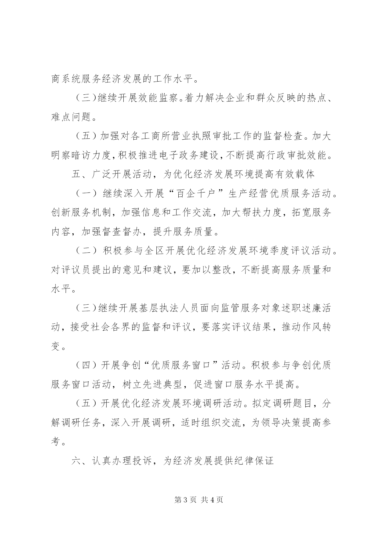 第PAGE\*Arabic\*MERGEFORMAT4页共NUMPAGES\*MERGEFORMAT4页工商局投诉受理工作方案2012年,我局投诉受理工作坚持以市局、区纪委全会精神为指导,以机制创新、源头治理为重点,按照规范、创新、实效的总要求,保证政令畅通,进一步优化我区经济发展环境,保障全民创业顺利进行。一、明确目标责任,加强组织和领导要健全投诉受理网络和工作制度,完善投诉受理工作机制;要配齐配强投诉受理工作人员,解决有人办事问题;要加大硬件配备力度,为投诉受理工作提供有效保证;要加大投诉受理工作人员培训学习力度,不断提高政策水平、业务素质和解决复杂问题能力。区局对投诉受理工作进行年终考评,作为目标考核内容依据之一。成立投诉受理领导小组:各工商所所长为投诉受理领导小组的联络员。二、明确责任任务,认真落实优化经济发展环境责任制和责任追究制(一)认真贯彻落实《关于印发市工商局落实优化经济发展环境责任追究办法的通知》工商纪监129号文件精神,层层分解任务,责任到人,落实执法责任制,健全责任网络体系。(二)认真落实《中共市纪委市监察局关于进一步优化全民创业环境的若干纪律规定(试行)》等有关文件精神,严肃工作纪律,严格责任追究。(三)认真落实省、市工商局、区工商局效能建设有关规定,明确各单位的责任、任务和要求。三、加强舆论宣传,不断提高全员优化发展环境意识(一)积极办理好“阳光投诉”栏目中群众反映强烈的热点、难点问题,认真监督整改。(二)在区工商局政务公开网站,开辟投诉举报和反馈专栏。建立网络互动机制,拓宽宣传渠道,扩大宣传范围,提高宣传效果。(三)提高优化经济发展环境意识。多渠道、多角度、多层次地宣传市工商局、区委、区政府、区纪委监察局关于优化经济发展环境的政策、规定和要求,全面提高优化经济发展意识,促进政策、规定和要求有效落实。四、采取措施,严格监督检查(一)继续开展《行政许可法》执行情况的监督检查。督促行政许可实施机关严格执行《行政许可法》和落实国务院、省关于取消和调整行政许可事项的决定,坚决杜绝违反《行政许可法》的行为。年内组织一次对基层所执法执纪情况的专项检查。(二)开展优化经济发展环境专项效能检查。检查各单位优化经济发展环境领导机制、工作机制、责任机制完善情况,政策规定落实情况,工作开展情况及任务完成情况,不断提高全市工商系统服务经济发展的工作水平。(三)继续开展效能监察。着力解决企业和群众反映的热点、难点问题。(五)加强对各工商所营业执照审批工作的监督检查。加大明察暗访力度,积极推进电子政务建设,不断提高行政审批效能。五、广泛开展活动,为优化经济发展环境提高有效载体(一)继续深入开展“百企千户”生产经营优质服务活动。创新服务机制,加强信息和工作交流,加大帮扶力度,拓宽服务内容,加强督查督办,提升服务质量。(二)积极参与全区开展优化经济发展环境季度评议活动。对评议员提出的意见和建议,要加以整改,不断提高服务质量和水平。(三)继续开展基层执法人员面向监管服务对象述职述廉活动,接受社会各界的监督和评议,要落实评议结果,推动作风转变。(四)开展争创“优质服务窗口”活动。积极参与争创优质服务窗口活动,树立先进典型,促进窗口服务水平提高。(五)开展优化经济发展环境调研活动。拟定调研题目,分解调研任务,深入开展调研,适时组织交流,为领导决策提高参考。六、认真办理投诉,为经济发展提供纪律保证认真办理“吃、拿、卡、要”、涉企“四乱”、以权谋私侵害群众利益、违法行政、作风不实、效能低下、推诿扯皮、敷衍塞责、“中梗阻”、行政不作为、乱作为、干扰破坏企业生产经营秩序等方面的典型投诉,通报曝光典型案件,以起到教育震慑作用。七、不断改革创新,提升实际效果不断研究新情况、解决新问题,创新工作思路、工作机制和工作手段,解决影响我区经济发展的突出问题。