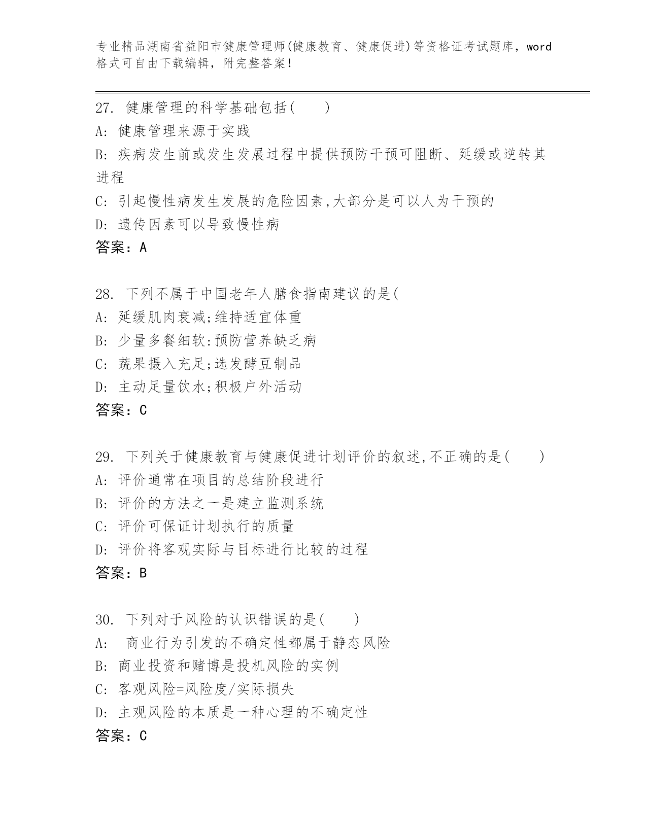 2024年湖南省益阳市健康管理师(健康教育、健康促进)等资格证考试含精品答案.docx