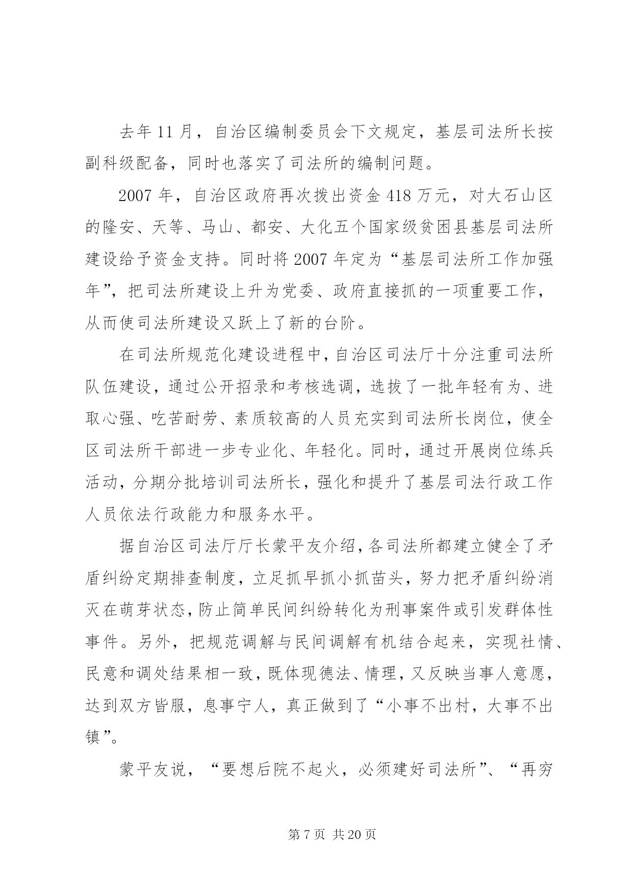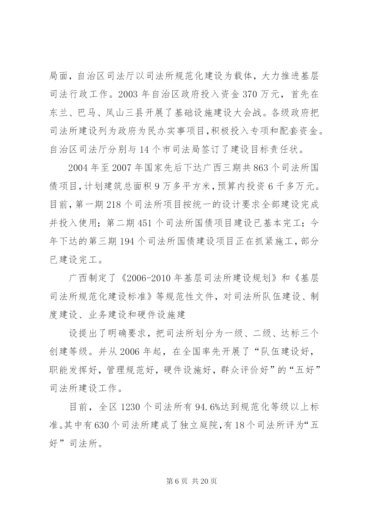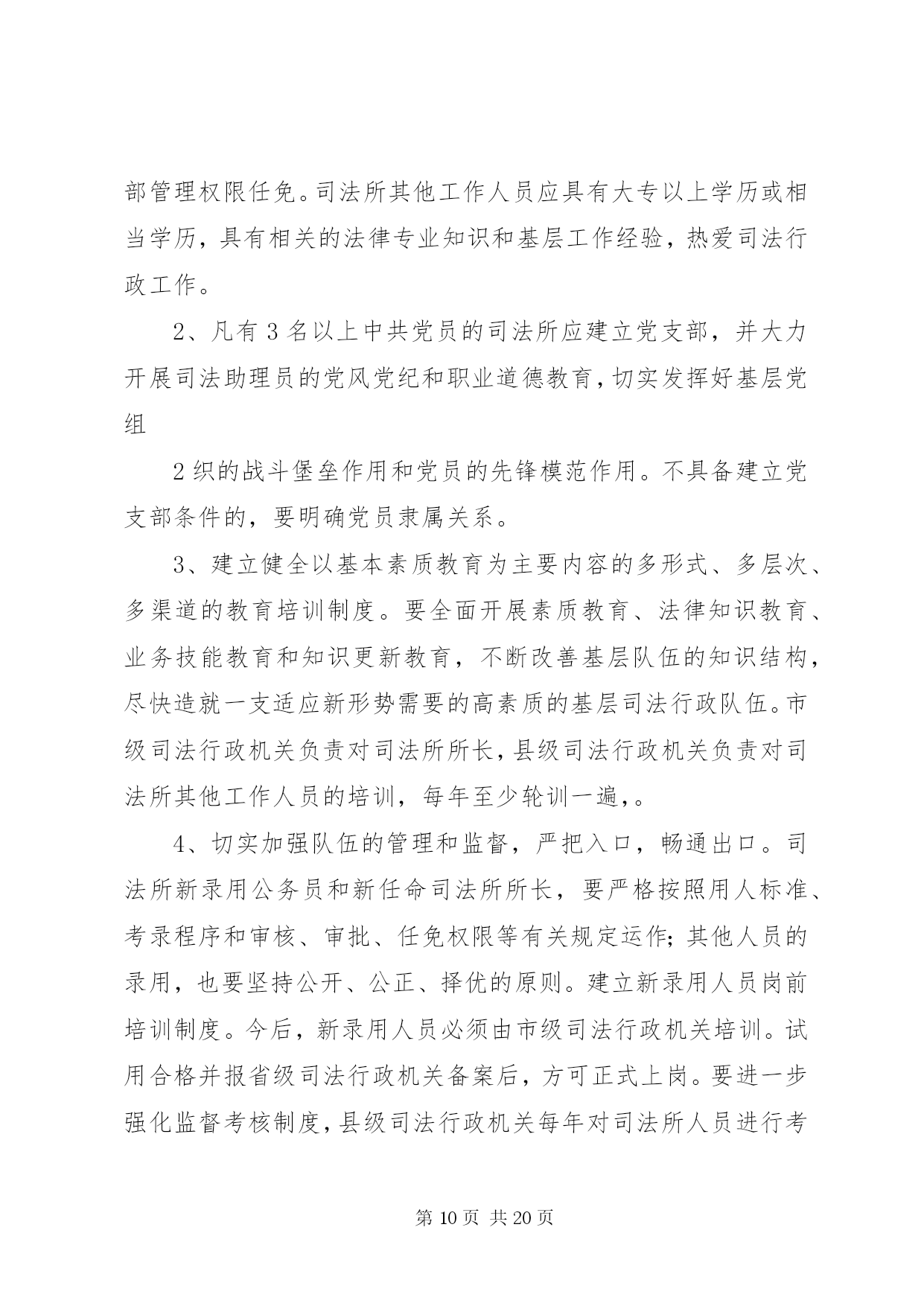 第PAGE\*Arabic\*MERGEFORMAT20页共NUMPAGES\*MERGEFORMAT20页司法所规范化建设总结[大全]为推动我市司法所规范化建设工作的开展,我们严格按照《XX省司法所范化建设实施意见》的要求,进一步强化我市的司法所基础设施建设、人员队伍建设和各项业务建设,取得了一定的成效。一、以司法所国债建设项目为基础,全面推进司法所基础设施建设一是积极争取党委政府支持,积极为司法所配置各类办公设施。截止2008年底,我市前4批67个国债司法所建设项目全部建设完成并投入使用,占全市司法所总数的86%,司法所工作人员的办公环境得到了极大的改善。在此基础上,我市各级司法行政机关利用新所建成的有利时机,积极争取资金,在几年的时间里,为司法所配备了新的办公桌椅、电脑、打印机等办公设施,条件好的县(市、区)还为司法所配备了汽车、摩托车等交通工具,现在我市78个司法所拥有汽车20辆,摩托车28辆,电脑80余台,极大的提高了司法所工作人员的工作积极性。二是统一规范司法所标识,全力打造司法所新形象。司法所标识直接关系司法所的外在形象,从一定程度反映了司法所的管理体制、工作机制和业务开展。我们将司法所标识工作作为规范化司法所建设的重要内容,纳入全年责任目标进行考核,下发了《关于司法所标识统一规范使用有关情况的通知》,确保工作开展有标准、有督导、有落实。同时,进行了认真自查,对发现的问题及时予以纠正,并限期进行了整改,目前我市78个司法所全部悬挂了新的标识、标牌,对树立我市基层司法行政部门良好形象、提升社会认知度、方便群众办事、接受群众监督起到了重要的作用。二、以全面提升司法所工作人员水平为目标,不断加强司法所人员队伍建设一是积极为司法所配齐、配强工作人员。2004年,在我们的积极争取下,市委、市政府办公室下发了《关于进一步加强基层司法所建设的意见》,《意见》明确提出了司法所人员编制不少于2-3人,司法所所长要享受副科级待遇,这对我市的司法所规范化建设起到的极大的促进作用。截止目前,我市78个司法所现有工作人员145人。其中,11名司法所长享受了副科级待遇。二是大力开展司法所工作人员教育培训工作。近年来,我们始终把加强司法所工作人员素质建设作为一项重要的工作来抓,市司法局每年举办一期针对全市司法所工作人员的培训班,努力提高他们的业务工作水平和思想道德建设,各县(市、区)司法局严格按照“凡进必考”的原则录用司法所工作人员,并坚持对新进人员进行岗前业务培训。目前,在全市已经形成了一支政治坚定、作风过硬、业务素质较高的司法所工作人员队伍,司法所工作人员从未出现违法违纪案事件。三、以开展社会管理创新工作为契机,深入推进司法所各项业务建设(一)充分发挥人民调解职能作用,全力维护社会稳定一是全面贯彻落实人民调解法。今年1月1日《人民调解法》正式实施后,各司法所在街头、集市等人员集中场所,通过设立咨询台、悬挂横幅、散发宣传资料等多种形式,大力宣传《人民调解法》的基本内容和人民调解化解矛盾纠纷方便、快捷、不收费的特点和优势,使广大人民群众了解人民调解法,提高了人民调解的社会认知度。截至今年9月底,全市各级司法行政机关在宣传活动中共设立咨询台90余个,解答法律咨询2400余人次,展出版面350余块,散发宣传资料19000余份,收到了良好的社会效果。二是积极构建人民调解、司法调解、行政调解、仲裁调解四调联动工作机制,形成化解矛盾纠纷的合力。为贯彻落实《xx市开展全国社会管理创新综合试点市工作实施方案》,各县(市、区)司法局积极探索构建人民调解、行政调解、司法调解、仲裁调解“四调联动”的大调解工作格局,有效整合和充分发挥人民调解职能作用。xx司法局印发了《关于加强人民调解与行政调解、司法调解、仲裁调解联动构建大调解格局的意见》,在坚持依法调解与以德调解、引导调解与当事人自愿调解相结合的原则基础上,大力实施“四调联动”,建立了“党委政府统一领导,综治部门牵头协调,司法行政具体实施,相关部门协作联动”的社会矛盾纠纷调处新格局。xx印发了《关于建立人民调解行政调解司法调解仲裁调解四调联动调解机制的意见》,在xx、xx、xx等乡镇开展四调联动试点,整合相关部门力量,搭建了统一受理群众诉求和调处矛盾纠纷的新平台。XX县区司法局启动了人民调解组织参与检察院委托调解、派出所委托的治安案件中的民事赔偿调解、乡镇政府交办的各类纠纷调解等形式,强化了人民调解和司法调解、行政调解的衔接配合。(二)加强刑释解教人员服务管理,确保社会大局安全一是积极推进安置帮教工作信息化管理。安置帮教的具体工作主要由司法所来完成,刑释解教人员信息管理系统启用以来,我们始终把对司法所工作人员的培训作为一项工作重点,每年坚持对司法所工作人员进行软件操作培训。目前,我市各