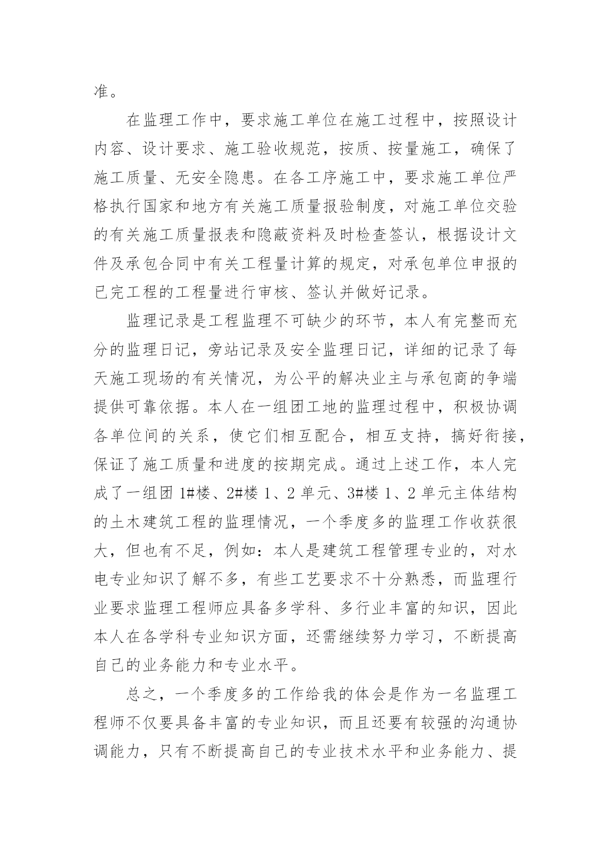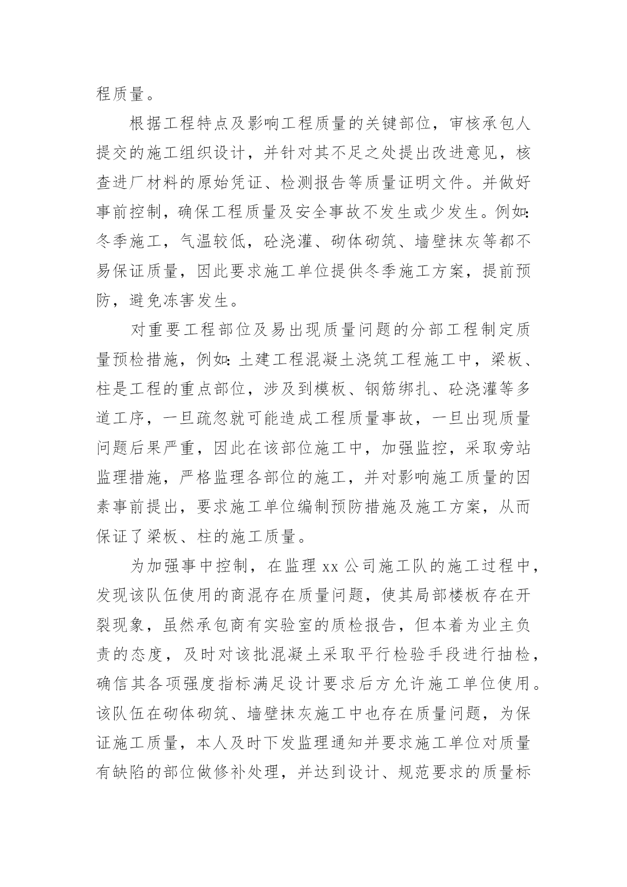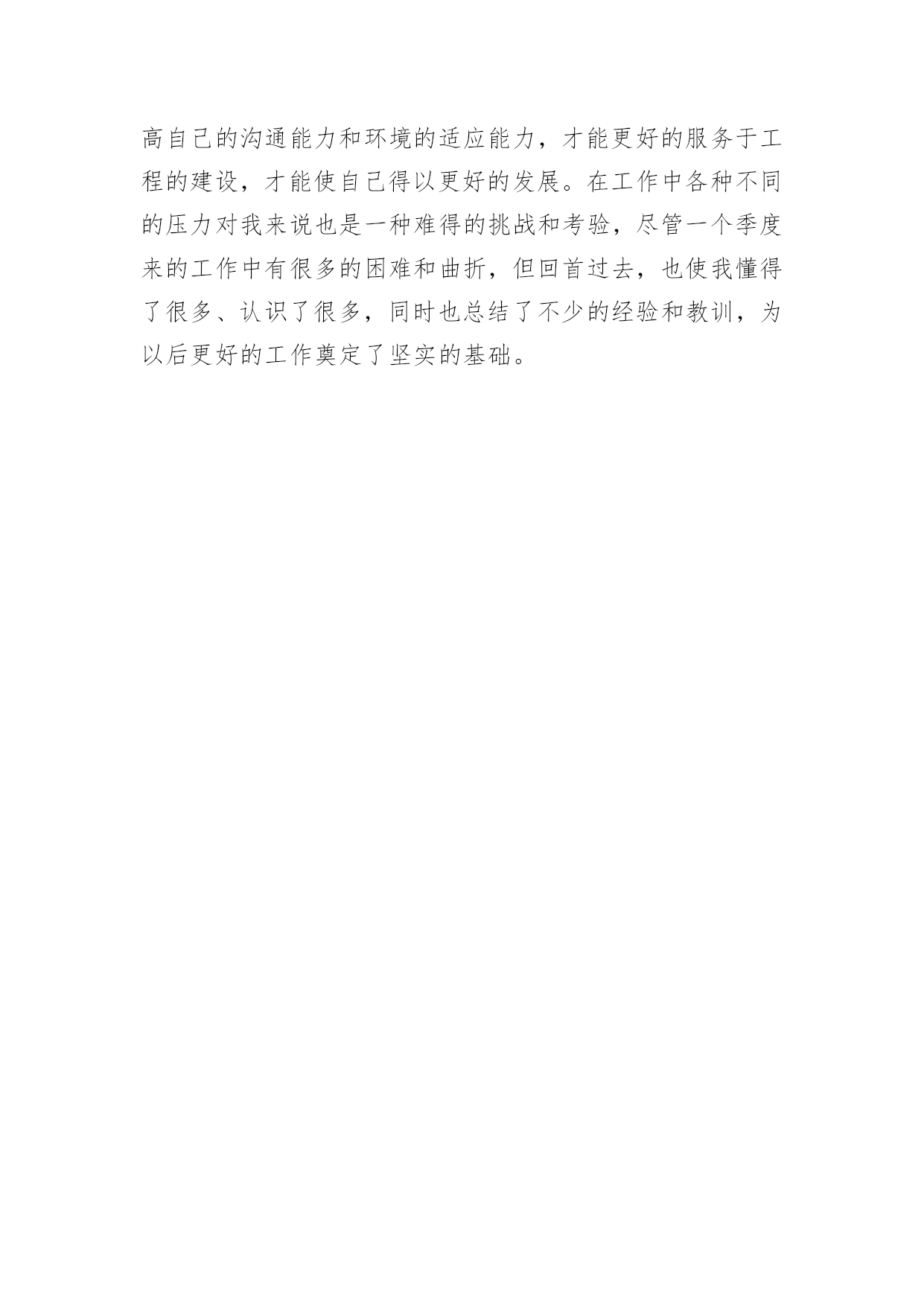 工程技术人员月度工作总结作为一名工程技术人员,除了严格按施工图和国家规范规程以及施工方案办事外,还要在工作中不断总结经验。今天小编给大家为您整理了工程技术人员月度工作总结,希望对大家有所帮助。工程技术人员月度工作总结范文一无论是作为一名普通的工程技术人员,还是作为一个工程项目的技术负责人,我感到要干好一个工程,不仅要严格遵守国家施工规范规程,还要理论联系实际,活学活用,不断总结施工和管理经验,技术上不断改进和创新。本人在工作中,接触到许多烟囱,体会到只有技术上不断创新,设备不断更新,才能创造出更大的经济效益和社会效益。比如,以前在造粒塔和烟囱的滑模中,我们用来提升滑模平台的是小吨位千斤顶(额定起重量为3.5t),后来经过论证和技术经济分析比较,决定从xx烟囱开始采用大吨位千斤顶(额定起重量为6.0t),与小吨位千斤顶相比有以下优点:可以节约一半的支承杆;支承杆脱空长度更高,滑模安全性可以得到更大的保证;减少了支承杆的加固工作量。在xx年和xx年施工的贵州xx工程的2个烟囱和xx供热工程的烟囱,就采用了大吨位千斤顶,其技术和经济效益十分明显。另外,在滑模测量技术上我们也进行了改革。以前一般是在造粒塔或烟囱的中心安装一台激光对中仪测偏移,而平台扭转则在外面用一台经纬仪测量,显得非常麻烦。后来我们在烟囱内部相对于中心的对称半径上同时布置2台激光对中仪,根据测量数据就可以直接计算出平台的偏移和扭转值了。其精高提高了,工作量也减小了。尽管我们现在在滑模技术方面取得了一定的成绩,但距世界滑模的先进水平还有不小的距离,这需要我们不断改进技术,总结经验。就我公司施工的烟囱和造粒塔来说,主要存在以下几个问题:1、我们目前还未涉及双曲线塔和框架的滑模,只限于圆形构筑物的滑模。2、在垂直运输方面比较落后,传统方法是采用落地井架加变幅拔杆或者是随升井架加变幅拔杆,此种方法比较落后,我们可以改进为:在筒体外侧配一台自升式高塔,不但可以满足钢筋和混凝土的垂直运输,而且可以节省几台卷扬机的费用。从长远效益来看,后者肯定比前者明显。3、按传统方法制作的钢平台只能使用一次,不仅浪费了钢材,还增加了拆卸平台的工作量。如果在保证平台安全使用的前提下,我们将平台杆件的焊接连接形式改为螺栓连接,这可以多次重复利用;4、在滑模纠偏和纠扭上,设想在提升架外侧安装自动收分控制装置。对于长期从事技术管理工作的人而言,无论是他的技术水平,还是施工能力都不容置疑,但是在经营管理上感觉要欠缺些。当然这除了与他自身是否愿意学习有关,但还与我们企业内部各专业分工过细不无关系。因此一个企业要想造就更多的复合性人才,就必须加强技术人员的经营理念培养和适应市场经济的能力。这点是我本人体会最深的。总之,作为一名工程技术人员,除了严格按施工图和国家规范规程以及施工方案办事外,还要在工作中不断总结经验,吸取教训,大胆进行技术改革和创新,在施工组织设计和施工方案上不断优化,努力将自己的专业水平和业务能力提高到一个新的台阶。工程技术人员月度工作总结范文二一个季度的时间很快过去了,在这一个季度多时间里,我在公司领导、部门领导和同事们的关心与帮助下,工作能力与专业技术有了更进一步的提高。在这季度终岁末之时,总结自己工作中的成绩和收获,从而找出不足,以利于今后能够更好的.完成工资任务,也衷心希望大家对总结不妥之处给予指正,对我来说是极大的帮助。在过去的一个季度多时间里,我在xx项目一组团担任土建监理工程师职务,该项目涉及到土建、电气设备、园林工艺、市政管网等多种专业,是比较大的综合性项目,作为土建监理工程师的我,感到任重而道远,特别是高层建筑施工,工程量大而且施工难度和质量要求都比较高,针对该特点,在项目监理部总监及总代的带领下,制定了具有针对性的、切实可行的监理方案。从基础到主体,每道施工工序严格按照监理规范、图纸设计和国家现行施工质量验收规范实施监理工作,以抓好对建筑材料的质量控制和对施工工艺的质量控制为重点工作,确保建筑物结构安全,对工程所需的原材料审查其材料质保单、复检报告、见证取样、送检,审查其试验结果,确保原材料质量。在高层主体施工中严格检查钢筋的绑扎质量和钢筋的保护层厚度以及砼的浇筑振捣,对各施工过程中的巡视、检查所发现的问题及时采用口头形式或书面形式通知施工单位项目部,做到发现问题及时向总监汇报,并督促施工单位落实整改及进行再次的复核检查,并要求监理人员做好关键部位的旁站监理,尽自己最大的努力做好监理控制质量的事前与事中控制,尽职尽职的做好我应该做的工作,坚持了严格按图、按规范、合同实施监理,确保各分项、分部工程的合格验收。在1-5#楼及37#楼主体结构施工现场的监理工作中,我深感自己对主体结构工程的不足之处,对此我查阅了大量的技术规范和施工验收规范,通过自身的学习和实践掌握了与主体结构
