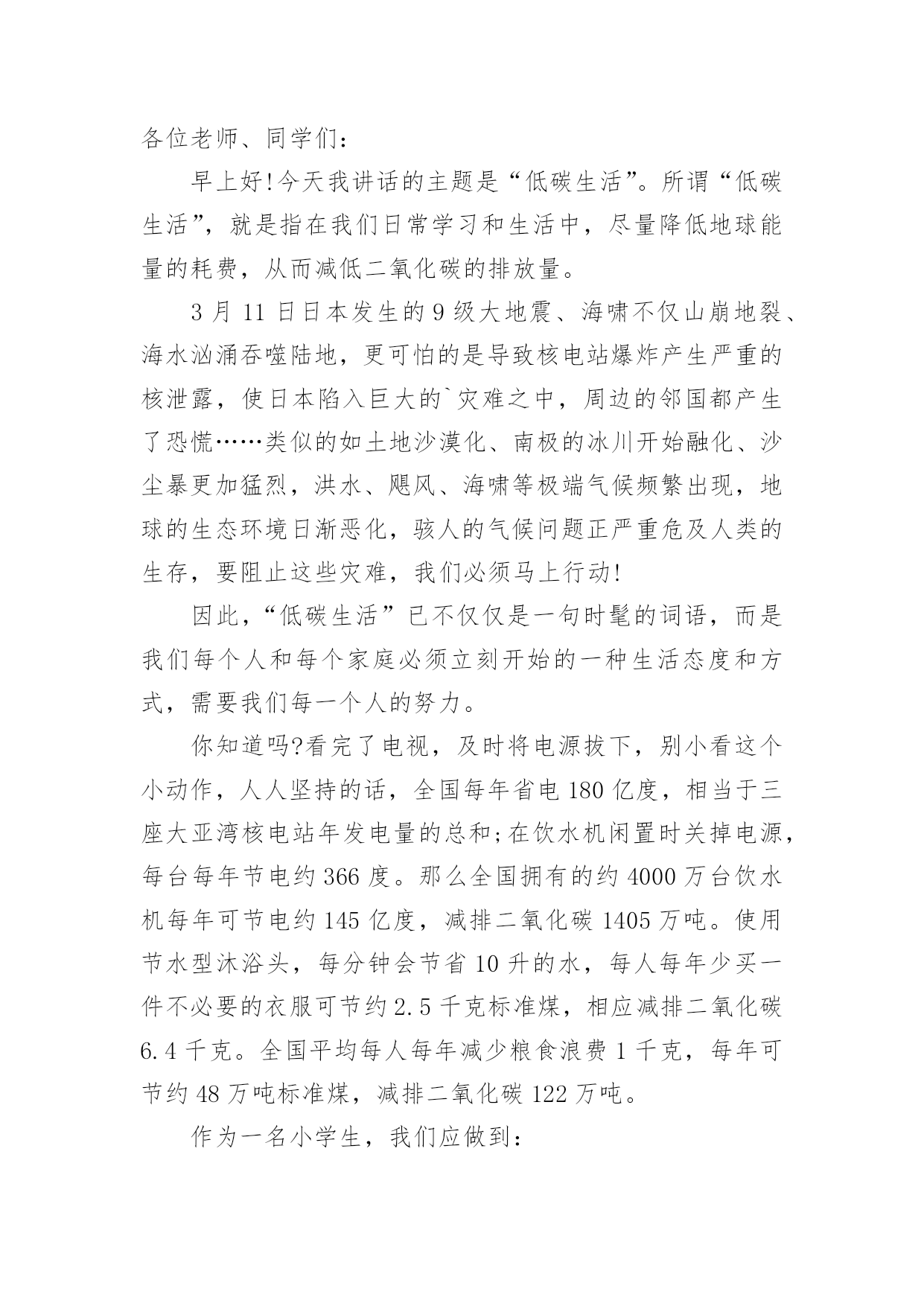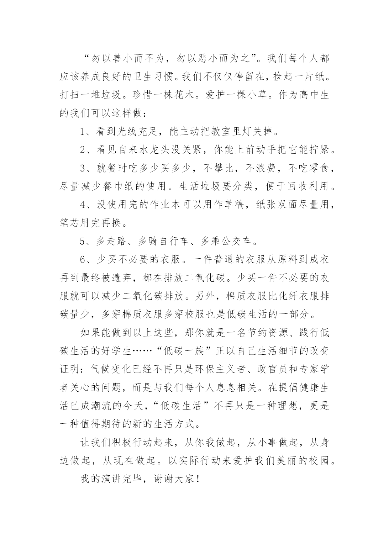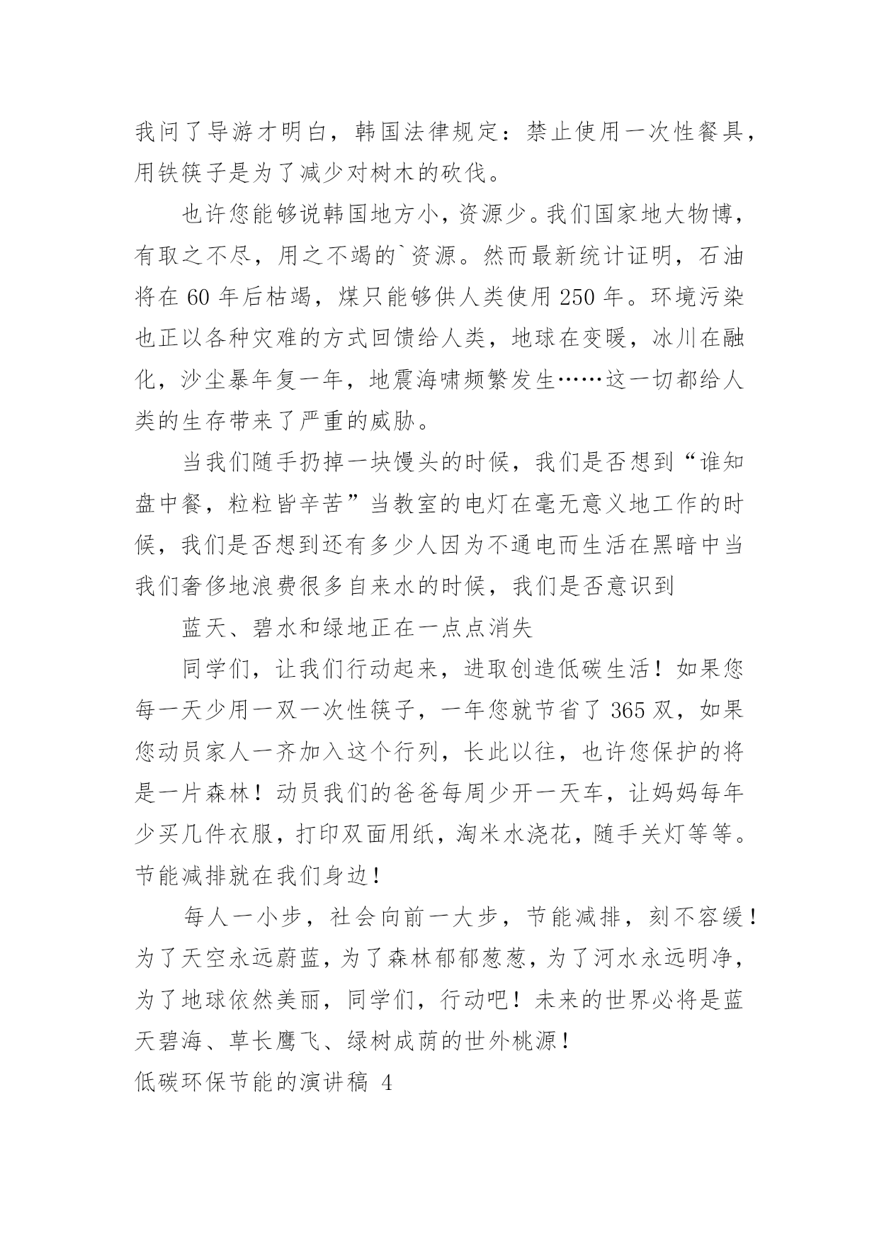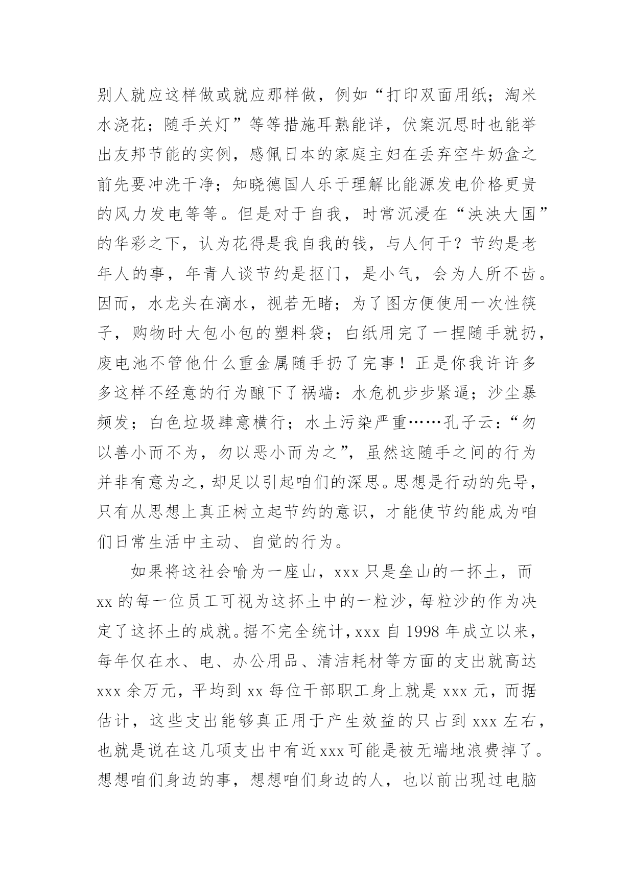 低碳环保节能的演讲稿低碳环保节能的演讲稿演讲稿的内容要根据具体情境、具体场合来确定,要求情感真实,尊重观众。现如今,很多地方都会使用到演讲稿,你知道演讲稿怎样才能写的好吗?下面是小编为大家整理的低碳环保节能的演讲稿,仅供参考,大家一起来看看吧。低碳环保节能的演讲稿1尊敬的各位xx领导,同事们:大家早上好!这天我演讲的题目是《节约事小意识为先》。不知从何时起,“中国地大物博,物产取之不尽,用之不竭”的语句不再出此刻初中的地理、历史课本上;不知从何时起“节约光荣,浪费可耻”又成为青年一代的口头禅。自开局之年起国家已将节能降耗工作放在了一个前所未有的高度,在全国经济工作会议上提出的八大任务中,节能降耗甚至被排在了第四位,国家发改委也三番五次申明单位gdp能耗指标是具有法律效力的约束性指标。这一系列的变化证明,在当今这个经济飞速发展的大社会,节能降耗已成为全社会上下强烈的共同意愿。肯尼迪总统的一句话说得好:“不好问国家能为咱们做些什么,先要问自我能为国家做些什么”。这句话很好的阐述了公民对国家,对社会的职责。对于节能咱们通常有的一种行为是告诉别人就应这样做或就应那样做,例如“打印双面用纸;淘米水浇花;随手关灯”等等措施耳熟能详,伏案沉思时也能举出友邦节能的实例,感佩日本的家庭主妇在丢弃空牛奶盒之前先要冲洗干净;知晓德国人乐于理解比能源发电价格更贵的风力发电等等。但是对于自我,时常沉浸在“泱泱大国”的华彩之下,认为花得是我自我的钱,与人何干?节约是老年人的事,年青人谈节约是抠门,是小气,会为人所不齿。因而,水龙头在滴水,视若无睹;为了图方便使用一次性筷子,购物时大包小包的塑料袋;白纸用完了一捏随手就扔,废电池不管他什么重金属随手扔了完事!正是你我许许多多这样不经意的行为酿下了祸端:水危机步步紧逼;沙尘暴频发;白色垃圾肆意横行;水土污染严重……孔子云:“勿以善小而不为,勿以恶小而为之”,虽然这随手之间的行为并非有意为之,却足以引起咱们的深思。思想是行动的先导,只有从思想上真正树立起节约的意识,才能使节约能成为咱们日常生活中主动、自觉的行为。如果将这社会喻为一座山,xxx只是垒山的一抔土,而xx的每一位员工可视为这抔土中的一粒沙,每粒沙的作为决定了这抔土的成就。据不完全统计,xxx自1998年成立以来,每年仅在水、电、办公用品、清洁耗材等方面的支出就高达xxx余万元,平均到xx每位干部职工身上就是xxx元,而据估计,这些支出能够真正用于产生效益的只占到xxx左右,也就是说在这几项支出中有近xxx可能是被无端地浪费掉了。想想咱们身边的事,想想咱们身边的人,也以前出现过电脑昼夜无眠的现象,也有过人走灯不灭的状况,也有文件一出一大摞的“辉煌”……也许这些事就发生在昨日,也许这些事就曾发生在自我身上……正是这样的'不经意,使你我的辛苦付出所创造的收入悄悄地流走,变成了一些苍白的账面支出数字,你难道不心疼吗?近几年来,大家欣喜地看到,咱们xx经营收入连年增长,连续三年实现了两位数的高位增长目标,那里有xx领导的支持,是xx班子精细化管理的成果,有xx全体员工的辛劳,也是咱们长期提倡节能产生了实效。向节能要效益正在逐步深入xx人心:君可见—服务部的姑娘们在开水房张贴了供水时刻;技术部在各用电终端加装了电表;管理人员下班后甚至拨掉了电源插头;双面打印排版越来越漂亮了;采购员越来越会算计了……这些事说起来不是什么大事,也无法精确计算每个人的这一举动能为xx省下一分还是一毛,但是有人这样做了,这是一份对自我的职责,是一份对xx的职责,更是一份对社会的职责。咱们赞赏这种行为,钦佩这种意识,更应向这样的干部职工领悟。节约事小,意识为先,如果咱们xx人人都能树立这种意识,长期坚持这种不经意的行为,xx必能取得更大的业绩。套用濮存晰在一段公益广告中的一句话作为我这天演讲的结束语:咱们每个人的一小步,将是xx向前迈进的一大步!多谢大家!低碳环保节能的演讲稿2节能是尽可能地减少能源消耗量,低碳是排放较低的温室气体,环保协调人类与环境的关系、保持生态良好,总起来说节能低碳环保,就是要实行低碳生活,做到节能减排,坚持节约发展、清洁发展、安全发展,实现经济又好又快发展。节能低碳环保是维护全球气候稳定,保护人类居住环境,建设美丽家园,已成为一种世界潮流,获得世界人民的拥护和支持。节能低碳环保,建设美丽家园是全社会的共同行动,企业具有更大的责任和义务,要改变过去不正确的发展方式,粗放的生产方式,树立低碳观念,加强节能减排,切实保护环境,实现可持续发展,共同维护我们美好的家园,让每个人过上健康有益的.生活。企业践行节能低碳环保,要承担落实节能减排社会责任,建设资源节约型和环境友好型企业,把节能减排与企业发展战略、结构调整紧密结合,优化产业结构、产品结构和能源消费结构,优化生产工