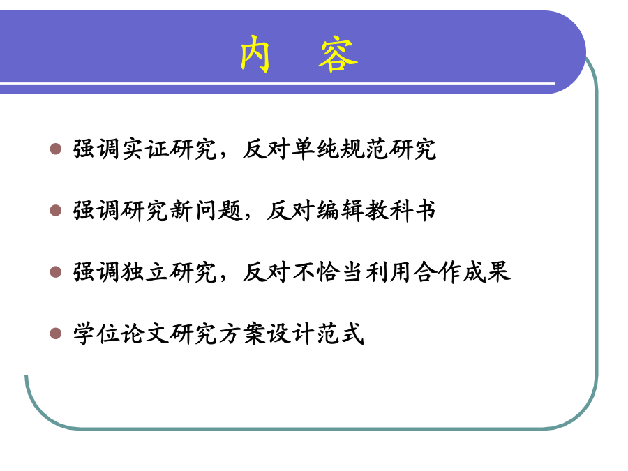 基本规范和研究方案范式内容强调实证研究,反对单纯规范研究强调实证研究,反对单纯规范研究强调实证研究,反对单纯规范研究强调实证研究,反对单纯规范研究强调实证研究,反对单纯规范研究强调实证研究,反对单纯规范研究强调研究新问题,反对编辑教科书强调独立研究,反对不恰当利用合作成果科学引用文献和他人成果科学引用文献和他人成果学位论文研究方案设计范式学位论文研究方案设计范式谢谢