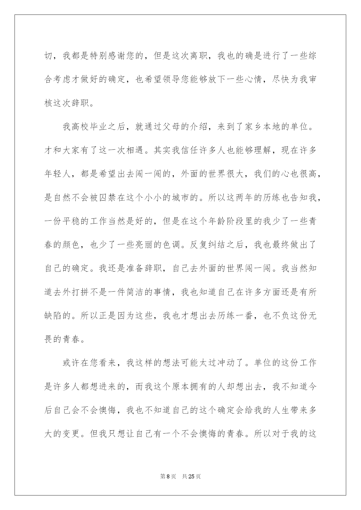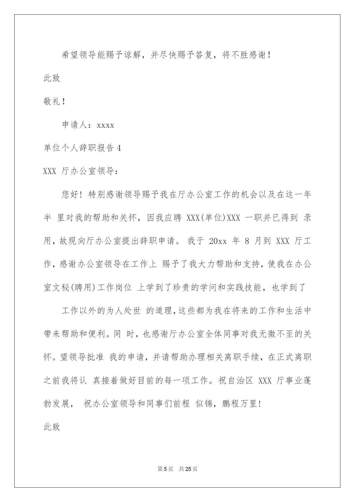 第PAGE\*Arabic\*MERGEFORMAT25页共NUMPAGES\*Arabic\*MERGEFORMAT25页第PAGE\*MERGEFORMAT25页共NUMPAGES\*MERGEFORMAT25页第PAGE\*MERGEFORMAT25页共NUMPAGES\*MERGEFORMAT25页第PAGE\*MERGEFORMAT25页共NUMPAGES\*MERGEFORMAT25页第PAGE\*MERGEFORMAT25页共NUMPAGES\*MERGEFORMAT25页第PAGE\*MERGEFORMAT25页共NUMPAGES\*MERGEFORMAT25页第PAGE\*MERGEFORMAT25页共NUMPAGES\*MERGEFORMAT25页第PAGE\*MERGEFORMAT25页共NUMPAGES\*MERGEFORMAT25页第PAGE\*MERGEFORMAT25页共NUMPAGES\*MERGEFORMAT25页第PAGE\*MERGEFORMAT25页共NUMPAGES\*MERGEFORMAT25页第PAGE\*MERGEFORMAT25页共NUMPAGES\*MERGEFORMAT25页2022单位个人辞职报告单位个人辞职报告在现在这个社会,职场人才流淌是很正常的事情,我们可能会觉得自己并不适合现有工作岗位,这时就要静下心来好好写写辞职报告了。那么你真的会写辞职报告吗?下面是我细心整理的单位个人辞职报告,希望能够帮助到大家。单位个人辞职报告1敬重的领导:您好!时间悠悠,转瞬我来到咱们单位已经有x年的时间了。这里,还请您宽恕我必需向您和大家告辞。在xx单位的工作生活虽然让人不舍,但在个人的生活中却有很多的事情须要我去处理,须要我为此做出变更的确定。为此,我不得不向您写下这份辞职报告,还望您能够接受。对于工作中给您带来的不便,我感到非常的愧疚。时间一晃而过,这些年来,其实我内心始终藏着一些话没能和你们说。在此,我也希望你们能知道:“对于您和xx部门的各位同事们,真的非常的感谢大家!”作为公司的一员,我自从加入公司起先,就是在您的管理和培育下工作的。这些年来,我随着公司的发展也发生了许多主动的改变,工作看法严谨了,业务的实力也大大的提升了。就连我自己,都变得开朗,热忱起来!而这一切,都要多亏了您在工作中给我的教育和指引。你的教育,让我能在工作中发挥出自己的实力,让我能为公司做出一份贡献!做为公司的一员,越是能为公司努力,我的内心也越是热忱!当然,也少不了你部门那些精彩的同事们!他们不仅仅是我工作上的伙伴,也是我在部门中竞争对手,我们一起努力,一起进步!有了这些精彩的同伴,才有了现在精彩的xx公司!我真的很感谢你们,尤其感谢您当时能给我一个加入xx公司的机会。因为那一次的转折,我才有了现在的收获!如今,匆忙这么多年过去,突然说要离开公司,其实最不舍得的人也是我。假如可以的话,我也真的很希望接着在自己心爱的岗位上工作下去,希望自己能在工作中和大家一起努力,一起发挥作为xx人的傲慢和奋斗精神!但比起工作,我们的生活才是真正的基础。或许每个人的都有机会放下工作,但不是每个人都能放下生活。尤其是当我们的生活中还有自己的家人,有自己的孩子的时候,我们更不能随意的去忽视生活中的问题。我很愧疚,但我在xx公司的道路就到此为止了。依据公司的规定,我会在x月x日前接着完成好自己的工作任务,并随时做好交接的打算。还望您能尽早给我回复。美妙的事情并不许久,但我很庆幸自己曾经来过这里,并为此努力和奋斗过。祝福xx公司越来越好!此致敬礼!辞职申请人:xxx20xx年x月x日单位个人辞职报告2敬重的公司领导:您好!首先感谢公司对我的培育,长期以来对我的关切和照看,使我得到了家庭般的暖和。和大家在一齐的日子里,让我学到了许多学问,学会了许多为人处事的原则。现由于个人缘由(家庭缘由身体缘由等等)不能在公司接着工作了,请领导赐予批准!此致敬礼!辞职申请人:20xx年8月11日单位个人辞职报告3敬重的公司领导:您们好!我是xx部的xxxx,在我到贵公司工作将近一年来,特别感谢你们对我的培育和关照,及同事对我的关切和帮助,可以说这是我工作以来过得最快乐的日子。我很辛运能到这么好的公司工作和学习,又遇到这么好的领导,我很想接着留在项目部工作,但人生总是很无奈,只因最近家中发生了一件急事,我必需得回去,不知何时才能回项目部上班。自古忠孝难两全,我不得已向公司提出辞职申请。但请公司领导放心,xxxx资料已基本整理完善,最终我肯定会做好资料的交接工作。希望领导能赐予谅解,并尽快赐予答
