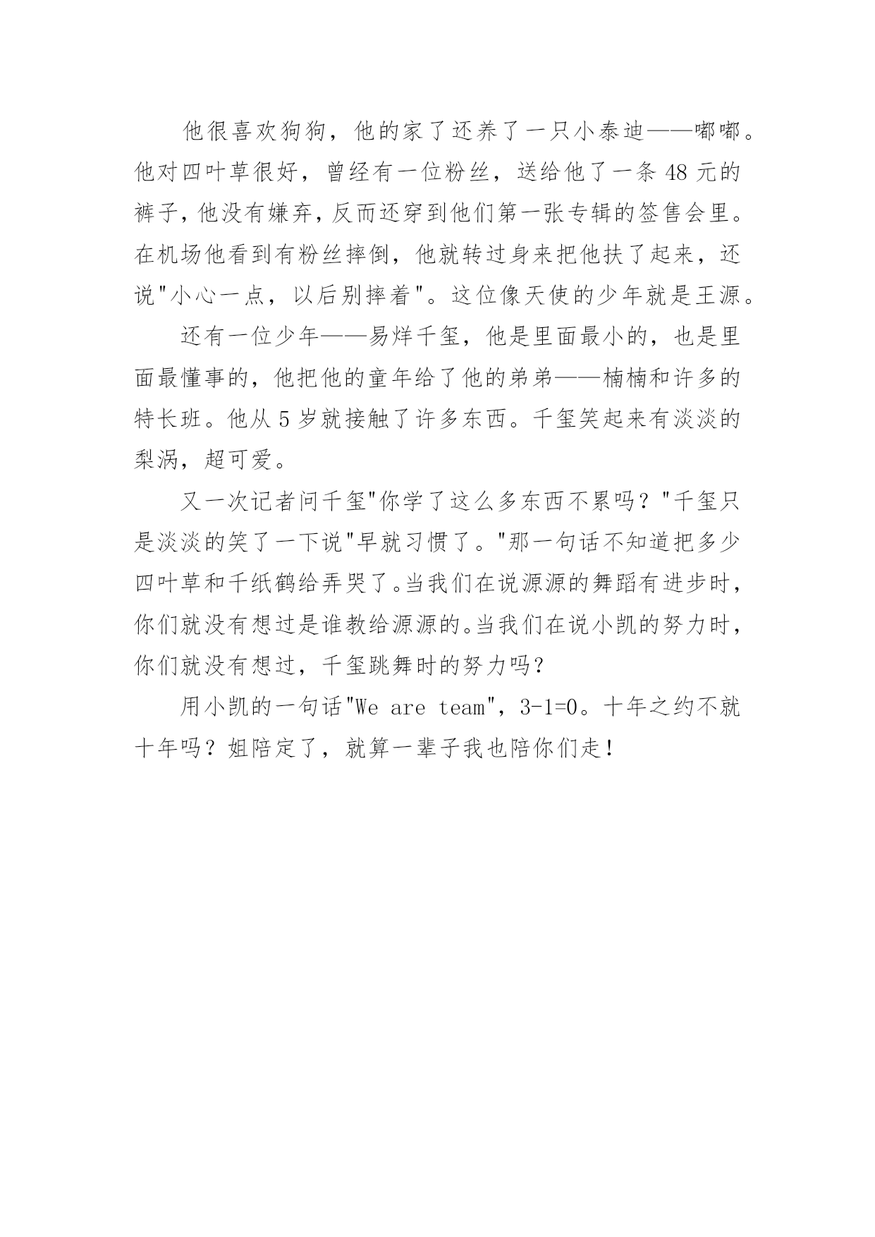 我爱的少年——TFBOYS700字-书信作文