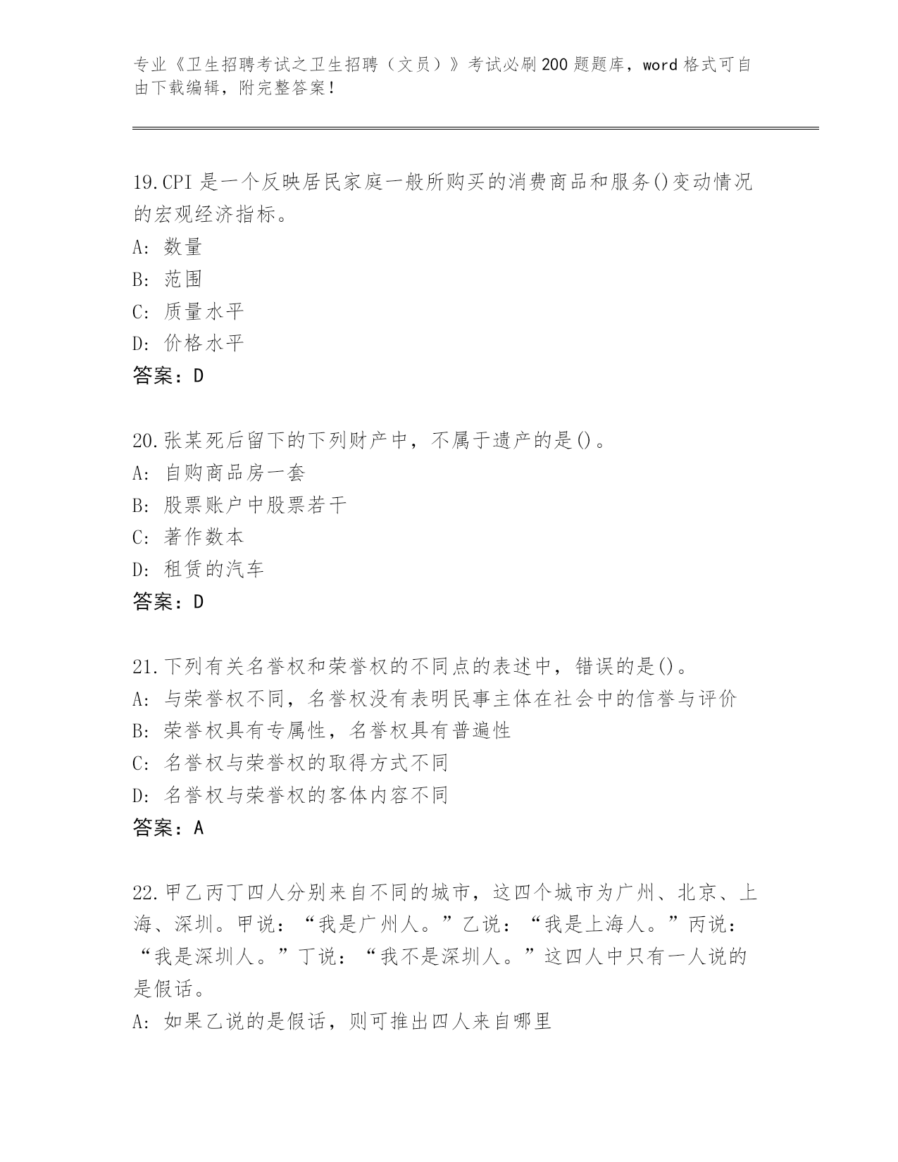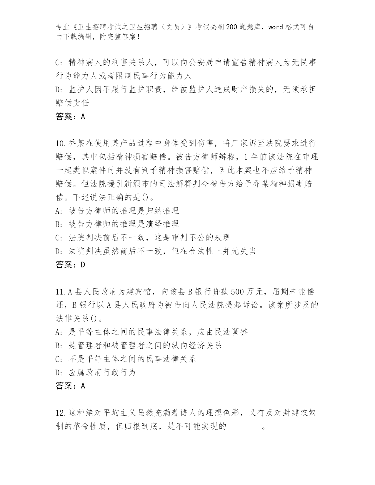 2024湖北省《卫生招聘考试之卫生招聘(文员)》考试必刷200题真题题库【巩固】