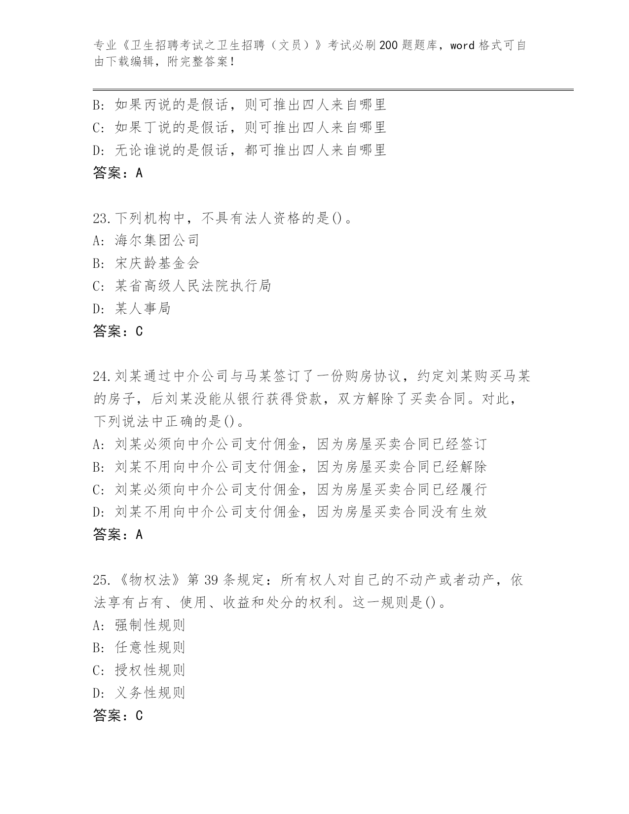 2023-24年湖北省麻城市《卫生招聘考试之卫生招聘(文员)》考试必刷200题真题题库及参考答案(考试直接用)