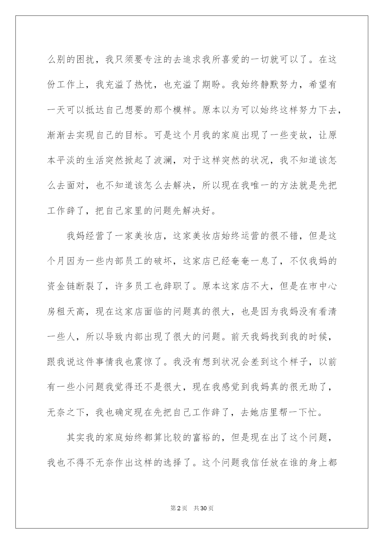 第PAGE\*Arabic\*MERGEFORMAT30页共NUMPAGES\*Arabic\*MERGEFORMAT30页第PAGE\*MERGEFORMAT30页共NUMPAGES\*MERGEFORMAT30页第PAGE\*MERGEFORMAT30页共NUMPAGES\*MERGEFORMAT30页第PAGE\*MERGEFORMAT30页共NUMPAGES\*MERGEFORMAT30页第PAGE\*MERGEFORMAT30页共NUMPAGES\*MERGEFORMAT30页第PAGE\*MERGEFORMAT30页共NUMPAGES\*MERGEFORMAT30页第PAGE\*MERGEFORMAT30页共NUMPAGES\*MERGEFORMAT30页第PAGE\*MERGEFORMAT30页共NUMPAGES\*MERGEFORMAT30页第PAGE\*MERGEFORMAT30页共NUMPAGES\*MERGEFORMAT30页第PAGE\*MERGEFORMAT30页共NUMPAGES\*MERGEFORMAT30页第PAGE\*MERGEFORMAT30页共NUMPAGES\*MERGEFORMAT30页2022单位员工辞职报告单位员工辞职报告在一个职场工作几年后,我们可能会因为某些缘由离开职位,现在这个时候就要备好辞职报告。怎样写好辞职报告呢?以下是我整理的单位员工辞职报告,欢迎阅读,希望大家能够喜爱。单位员工辞职报告1敬重的领导:您好!在单位工作的这段时间很有感受,我出社会也已经好几年了,这几年给我的感觉就是特别的充溢,时间也特别快。在工作中,我懂得了去珍惜和利用时间,也懂得了去正视自己的缺点和优点,在单位这段日子,让我变得越来越成熟,也在这条路上收获了一些特殊的经验。但此次很愧疚,因为我个人的一些事情的影响,我想申请在这个月月末准时辞职。望您能够谅解,感谢您!我是前年夏天到单位的,那个夏天是我觉得最有意义的一个夏天,我得到了自己宠爱的工作,一路上顺当无忧,生活逍遥自在,没有什么别的困扰,我只须要专注的去追求我所喜爱的一切就可以了。在这份工作上,我充溢了热忱,也充溢了期盼。我始终静默努力,希望有一天可以抵达自己想要的那个模样。原本以为可以始终这样努力下去,渐渐去实现自己的目标。可是这个月我的家庭出现了一些变故,让原本平淡的生活突然掀起了波澜,对于这样突然的状况,我不知道该怎么去面对,也不知道该怎么去解决,所以现在我唯一的方法就是先把工作辞了,把自己家里的问题先解决好。我妈经营了一家美妆店,这家美妆店始终运营的很不错,但是这个月因为一些内部员工的破坏,这家店已经奄奄一息了,不仅我妈的资金链断裂了,许多员工也辞职了。原本这家店不大,但是在市中心房租天高,现在这家店面临的问题真的很大,也是因为我妈没有看清一些人,所以导致内部出现了很大的问题。前天我妈找到我的时候,跟我说这件事情我也震惊了。我没有想到状况会差到这个样子,以前有一些小问题我觉得还不是很大,现在我感觉到我妈真的很无助了,无奈之下,我也确定现在先把自己工作辞了,去她店里帮一下忙。其实我的家庭始终都算比较的富裕的,但是现在出了这个问题,我也不得不无奈作出这样的选择了。这个问题我信任放在谁的身上都会很纠结,但是我妈现在年纪的确也比较大了,也承受不了这么大的重担了。我作为她的女儿,在这个时候也应当去帮她一把了,就算是为了这一份产业,我也应当去努力一把了。希望领导您能够谅解,也希望您能够尽快为我处理辞职的事情,感谢您。此致敬礼!辞职人:xxx20xx年x月x日单位员工辞职报告2敬重的领导:您好!首先和您说声愧疚,我这次来和您上交这份辞职报告前,已经明确的想好了,我确定我要离开公司。对此确定,假如给您和公司造成了什么不便,我深感愧疚。但是,作为一名成年人,我想我已经确定了我的去留,希望您能同意。虽然说的那么坚决,但其实我也并不是完全舍得,终归这里也是我工作过的地方,是我挥洒了青春的地方,这里曾经也有我努力过的时间。和同事们一起拼搏,一起奋斗的事情还历历在目,可是如今,我却不得不离开了。或许这的确有些冲突,但是我的确在心底还舍不得xxx公司。写这份报告的时候,我回想起在刚进入公司的那会,什么都不会,什么都不懂,但您却接受了这样专业学问匮乏的我。对此,我现在都感到特别的感谢。终归当时的我,真的已经在迷茫的边缘走向放弃,您对我的知遇之恩,就像是久旱逢甘霖一样滋润着我的内心,也让我感到了xxx公司的包涵性。还有那些身为前辈的同事,他们带给我的,是我在毕业后第一次体验到家一般的感觉。作为新来的晚辈,我什么时候都