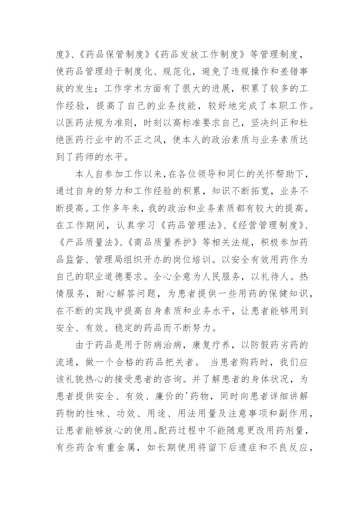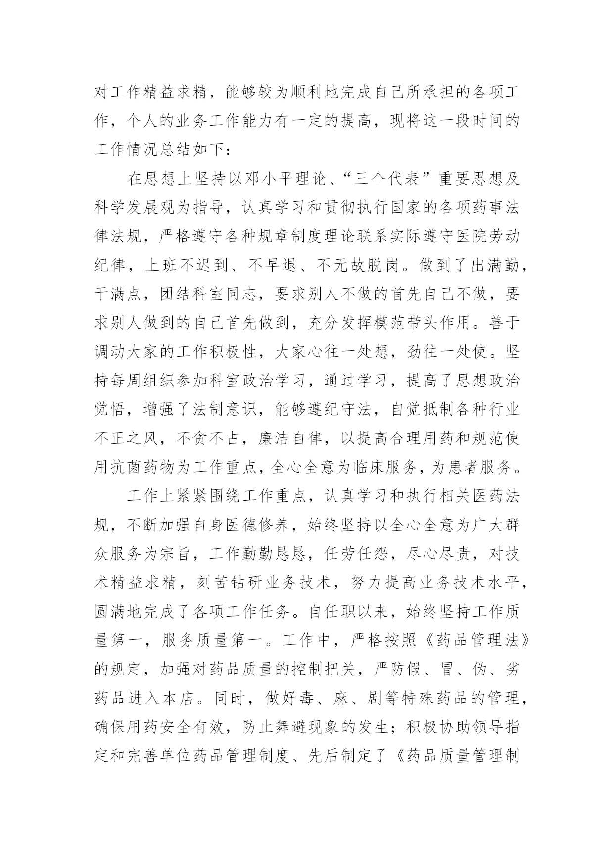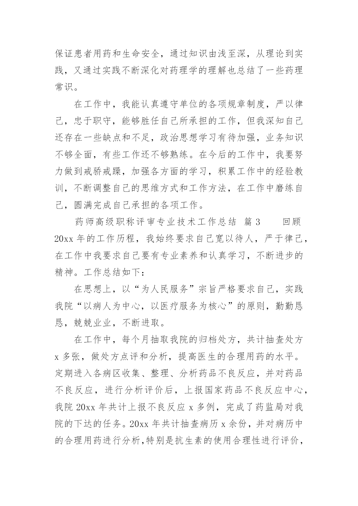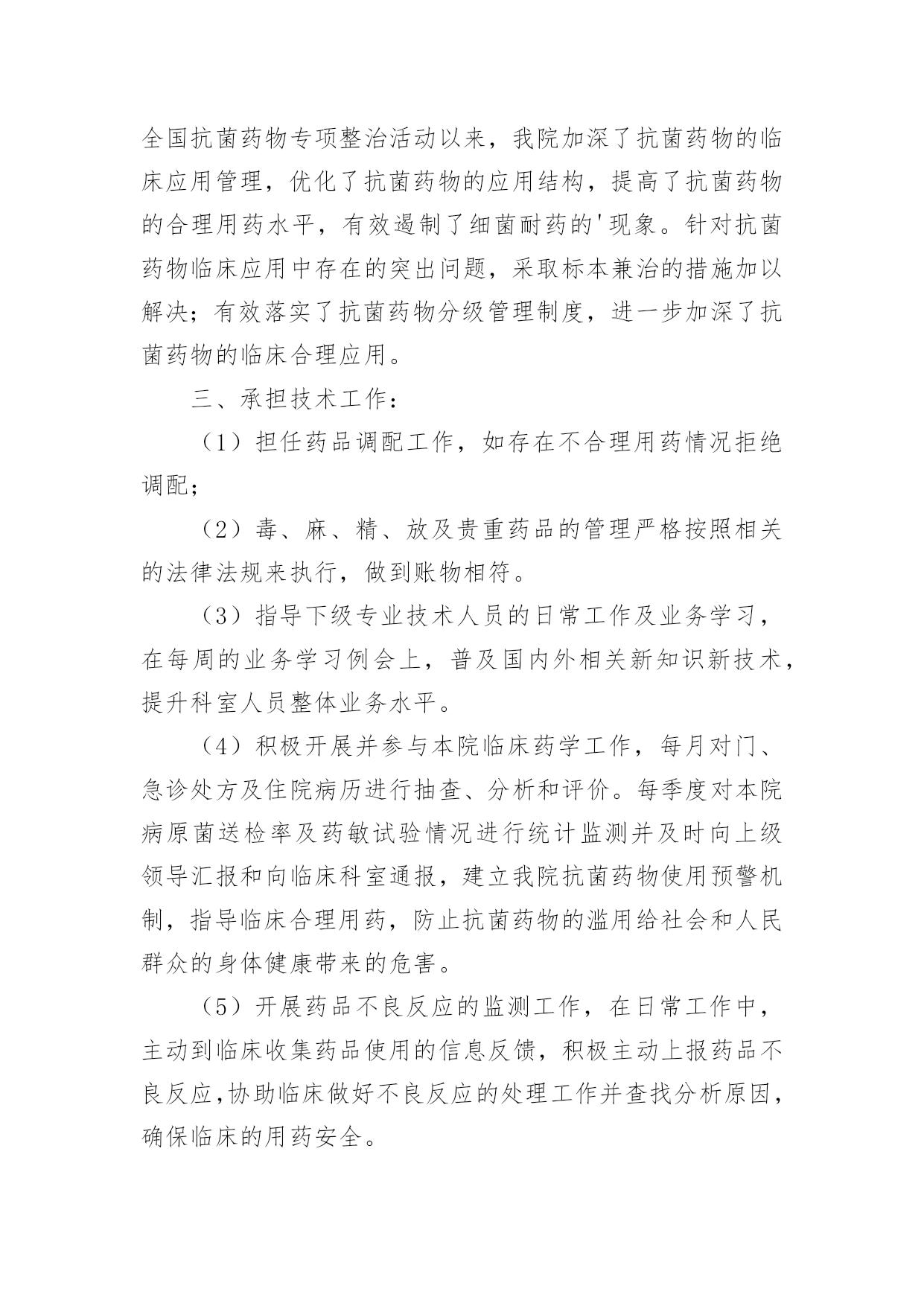 药师高级职称评审专业技术工作总结药师高级职称评审专业技术工作总结(精选12篇)忙碌而又充实的工作已经告一段落了,经过过去这段时间的积累和沉淀,我们已然有了很大的提升和改变,好好写写工作总结,吸取经验教训,指导将来的工作吧。怎样写工作总结才更能吸引眼球呢?以下是小编收集整理的药师高级职称评审专业技术工作总结,欢迎阅读,希望大家能够喜欢。药师高级职称评审专业技术工作总结篇1自1980年3月开始在x医院从事药剂专业工作34年来,本人在院科领导的指导关怀下,在同事的帮助支持、密切配合下,认真学习,努力工作,不断提高自己的业务素质和专业服务能力并于1996年通过自修考试取得了湖北中医学院药学专业专科文凭。三十多年来,本人一直从事药学工作,在平凡的工作岗位中,力争做到让患者满意、同事满意、领导满意。回首过去的工作内容,现总结如下:一、日常工作内容(1)药品调配发放:收方后,认真审核处方,按照四查十对的原则,审核无误后,方进行调配。(2)药品的清领和管理:每天按时查看药房药品的使用情况,列出计划领进药品的品种和数量;对药品的有效期限每月检查统计,按照先进先出的原则发放药品;严格按照药品的贮藏管理规范保管药品,确保药品质量符合药典规定,同时也为医院减少不必要的经济损失;严格管理毒、麻、精、放药品,严防差错事故。(3)每周两次到临床参与临床科室医师查房,参与疑、难、急、危重病人会诊,为医师提供合理用药建议,为医、护、患三方提供一般用药方案及特殊用药方案,严密检测药品不良反应,积极改进治疗措施;每月抽查住院病历,回顾性分析患者用药情况,并对病例中用药的合理性进行分析,特别是针对抗菌药物的使用情况进行评价。(4)每周组织一次专业学习,探讨工作及专业上的一些问题,及时发现改进,相互学习,相互促进,共同进步。二、岗位胜任能力:本人参加工作34年来,从未间断过对本专业新知识的学习,在国内及省级期刊上分别发表专业论文累计6篇,熟悉本专业相关的的法律法规及技术操作规程,掌握了常见病有关的药物治疗学、临床药理学、病理生理学的基本理论知识,对合理用药,特别是抗菌药物的合理应用和药品不良反应等方面有较深的了解;熟悉医院的药事管理和药物治疗学的组织机构工作程序;相关英语水平达B级,能借助工具书翻译药品的使用说明,能协助科主任进行业务技术管理的能力;熟悉掌握药品的供应、制剂配制、质量检验等药剂科的日常工作,具备解决日常工作中疑难问题的能力。自近几年开展临床药学工作以来,每周三上午深入临床科室参与临床医师查房,给临床医师提供合理化的用药方案,自2011年全国抗菌药物专项整治活动以来,我院加深了抗菌药物的临床应用管理,优化了抗菌药物的应用结构,提高了抗菌药物的合理用药水平,有效遏制了细菌耐药的'现象。针对抗菌药物临床应用中存在的突出问题,采取标本兼治的措施加以解决;有效落实了抗菌药物分级管理制度,进一步加深了抗菌药物的临床合理应用。三、承担技术工作:(1)担任药品调配工作,如存在不合理用药情况拒绝调配;(2)毒、麻、精、放及贵重药品的管理严格按照相关的法律法规来执行,做到账物相符。(3)指导下级专业技术人员的日常工作及业务学习,在每周的业务学习例会上,普及国内外相关新知识新技术,提升科室人员整体业务水平。(4)积极开展并参与本院临床药学工作,每月对门、急诊处方及住院病历进行抽查、分析和评价。每季度对本院病原菌送检率及药敏试验情况进行统计监测并及时向上级领导汇报和向临床科室通报,建立我院抗菌药物使用预警机制,指导临床合理用药,防止抗菌药物的滥用给社会和人民群众的身体健康带来的危害。(5)开展药品不良反应的监测工作,在日常工作中,主动到临床收集药品使用的信息反馈,积极主动上报药品不良反应,协助临床做好不良反应的处理工作并查找分析原因,确保临床的用药安全。(6)主持编辑本院药剂科《医院药讯》,每季度一期的医院药讯开展了相关药事法律法规、药物与临床、用药小知识、不良反应讯息、新药信息及药物预警信息等相关版块,对促进临床合理用药起到了一定的指导作用,为用药的安全、有效、经济提供了保障。四、代教能力:多年的工作经历,使我具备了一定的教学组织能力,能够指导本专业实习生、初中级专业技术人员的工作,对他们的询问不厌其烦,耐心细致的讲解,把自己的工作经验和所学的专业知识毫无保留的传授给他们,让他们能尽快的熟悉工作并能独挡一面,经本人代教的专业人员走上工作岗位后能很快成为业务骨干。随着医疗事业的发展,药剂工作需要更高的专业素养和操作技能,我们更应本着实事求是、忠于科学、全心全意为人民服务的态度,廉洁自律,为医院、为患者付出我们无悔的努力。34年来,本人本着一切为了病人,为了病人一切宗旨,为医院的发展,默默奉献,无怨无悔,在以后的工作中,我会更加努力,提高完善服务质量,为医院的发展进步添砖加