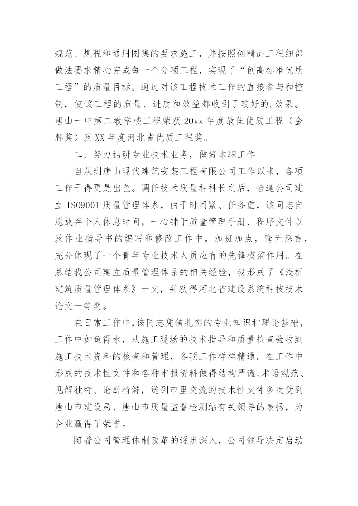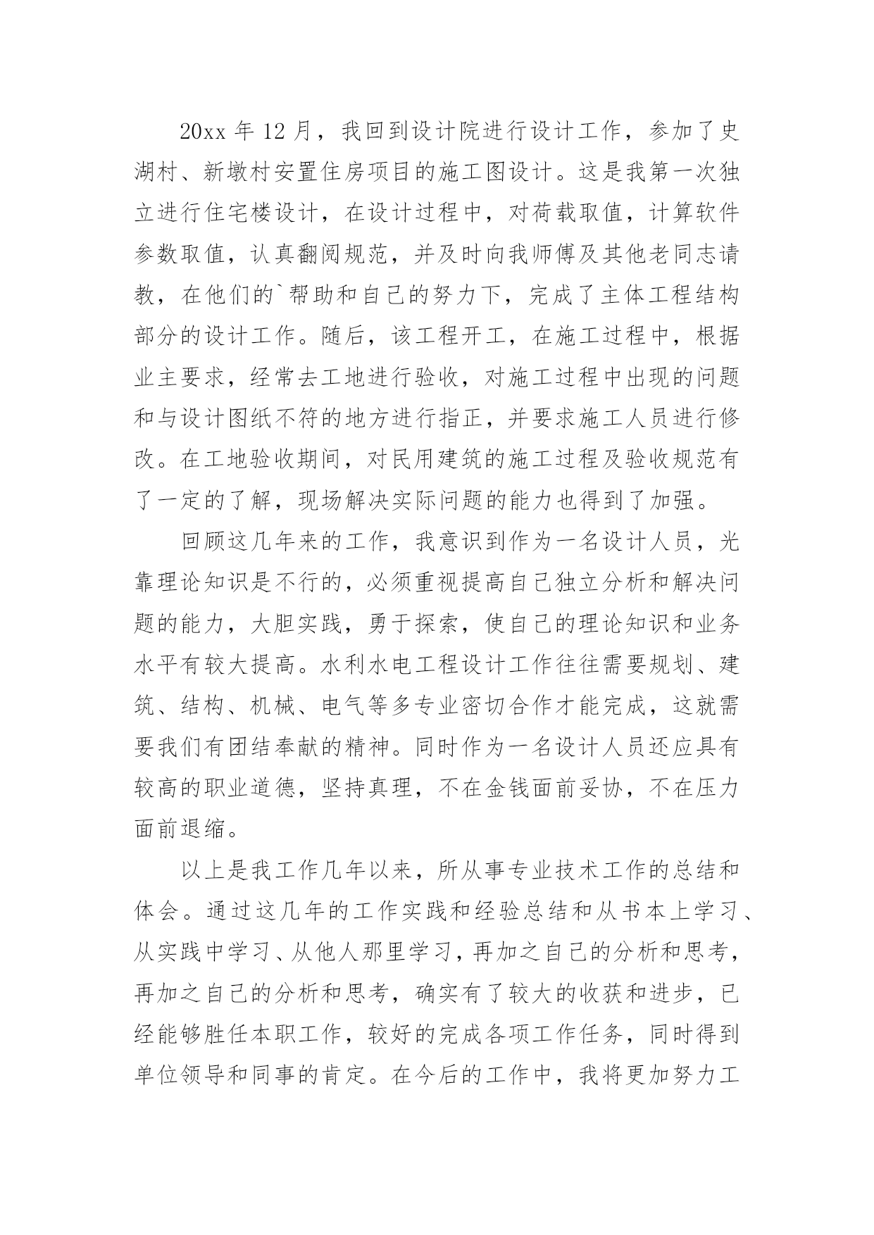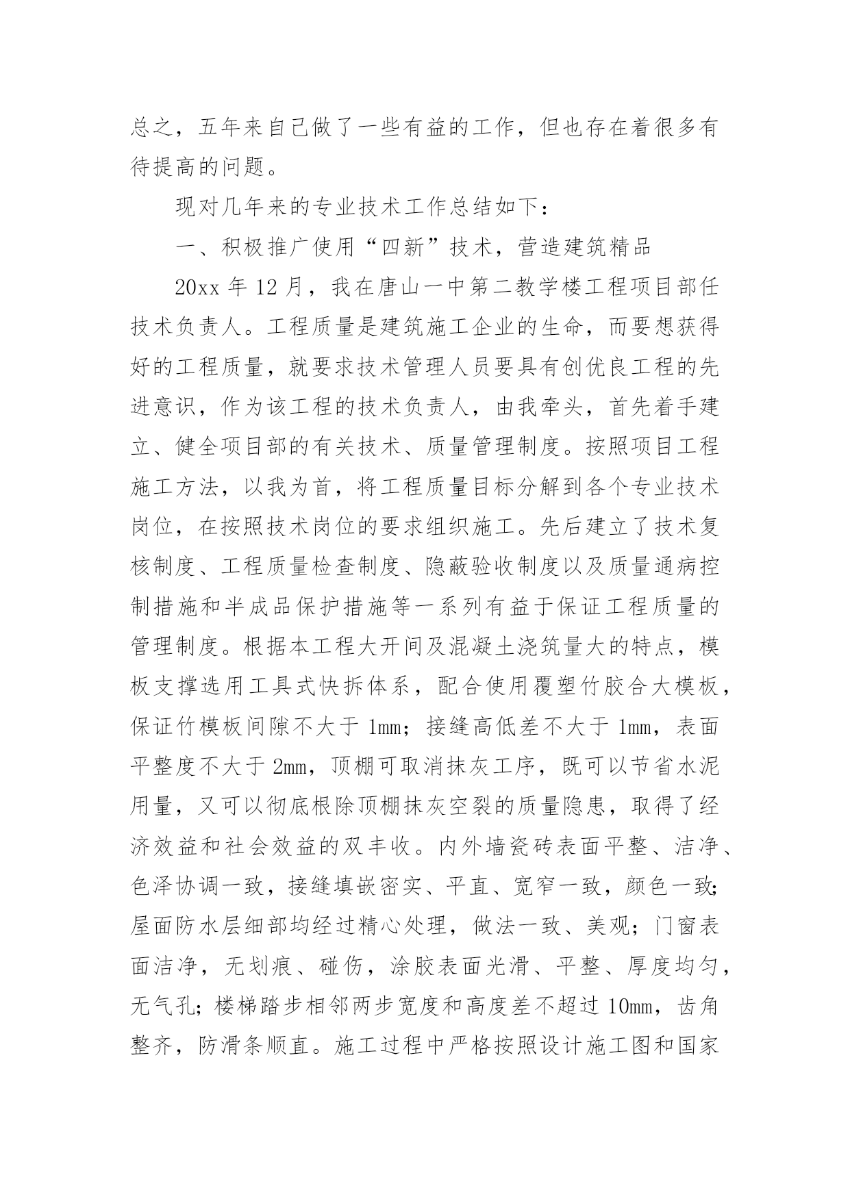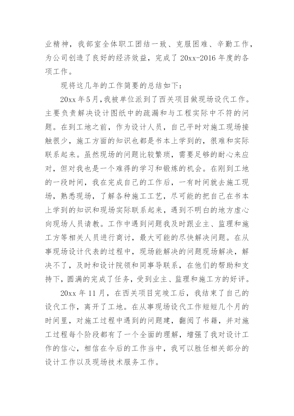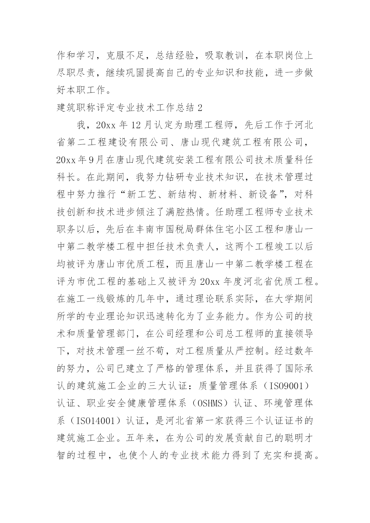 建筑职称评定专业技术工作总结建筑职称评定专业技术工作总结总结是对过去一定时期的工作、学习或思想情况进行回顾、分析,并做出客观评价的书面材料,它可以提升我们发现问题的能力,是时候写一份总结了。那么你真的懂得怎么写总结吗?以下是小编为大家整理的建筑职称评定专业技术工作总结,仅供参考,希望能够帮助到大家。建筑职称评定专业技术工作总结1我叫啊宇,20xx年6月毕业于CTGU土木与建筑学院土木工程专业,同年七月份参加工作。三年来,我从事工民建设计,经过几年的工作实践和业务学习,业务水平和工作能力有了很大的提高,已经能独立胜任本职工作。20xx年,在公司领导的正确领导和各部室配合下,经过我部室全体职工辛勤工作共同努力,这一年成为设计院不断的成长和逐渐的成熟的一年。20xx-2016年,随着经济发展,工厂、商铺、新建小区、棚户区改造项目不断增多;当前这种工程大、任务重的局面,给我们设计院带来新的机遇和挑战。这也是对我们设计工作更加细致深入进行着新的要求。我部室进行的电力工程设计,严格按照国家颁发的建筑设计标准规范,不断学习更新标准,从源头上杜绝了装置性违章。遵循努力超越、追求卓越的企业精神,我部室全体职工团结一致、克服困难、辛勤工作,为公司创造了良好的经济效益,完成了20xx-2016年度的各项工作。现将这几年的工作简要的总结如下:20xx年5月,我被单位派到了西关项目做现场设代工作。主要负责解决设计图纸中的疏漏和与工程实际中不符的问题。在到工地之前,作为设计人员,自己平时对施工现场接触很少,施工方面的知识也都是书本上学到的,很难和实际联系起来。虽然现场的问题比较繁琐,需要足够的耐心来应对,但对我也是一个难得的学习和锻炼的机会。在刚到工地的一段时间,我在完成自己的工作后,一有时间就去施工现场,熟悉现场,了解各种施工工艺,尽可能的把自己在书本上学到的知识和现场实际联系起来,遇到不明白的地方虚心向现场人员请教。工作中遇到问题我及时跟业主、监理和施工方等相关人员进行商讨,最大可能的尽快解决问题。在从事现场设计代表的过程中,现场能解决的问题现场解决,解决不了,及时和设计院领和同事导联系,在他们的帮助和支持下,圆满的完成了任务,受到业主、监理和施工方的好评。20xx年11月,在西关项目完竣工后,我结束了自己的设代工作,离开了工地。在从事现场设代工作短短几个月的时间里,对施工过程中遇到的问题建,翻阅了书籍,并对施工过程每个阶段都有了一个全面的理解,增强了我对设计工作的信心,相信在今后的工作当中,我可以胜任相关部分的设计工作以及现场技术服务工作。20xx年12月,我回到设计院进行设计工作,参加了史湖村、新墩村安置住房项目的施工图设计。这是我第一次独立进行住宅楼设计,在设计过程中,对荷载取值,计算软件参数取值,认真翻阅规范,并及时向我师傅及其他老同志请教,在他们的`帮助和自己的努力下,完成了主体工程结构部分的设计工作。随后,该工程开工,在施工过程中,根据业主要求,经常去工地进行验收,对施工过程中出现的问题和与设计图纸不符的地方进行指正,并要求施工人员进行修改。在工地验收期间,对民用建筑的施工过程及验收规范有了一定的了解,现场解决实际问题的能力也得到了加强。回顾这几年来的工作,我意识到作为一名设计人员,光靠理论知识是不行的,必须重视提高自己独立分析和解决问题的能力,大胆实践,勇于探索,使自己的理论知识和业务水平有较大提高。水利水电工程设计工作往往需要规划、建筑、结构、机械、电气等多专业密切合作才能完成,这就需要我们有团结奉献的精神。同时作为一名设计人员还应具有较高的职业道德,坚持真理,不在金钱面前妥协,不在压力面前退缩。以上是我工作几年以来,所从事专业技术工作的总结和体会。通过这几年的工作实践和经验总结和从书本上学习、从实践中学习、从他人那里学习,再加之自己的分析和思考,再加之自己的分析和思考,确实有了较大的收获和进步,已经能够胜任本职工作,较好的完成各项工作任务,同时得到单位领导和同事的肯定。在今后的工作中,我将更加努力工作和学习,克服不足,总结经验,吸取教训,在本职岗位上尽职尽责,继续巩固提高自己的专业知识和技能,进一步做好本职工作。建筑职称评定专业技术工作总结2我,20xx年12月认定为助理工程师,先后工作于河北省第二工程建设有限公司、唐山现代建筑工程有限公司,20xx年9月在唐山现代建筑安装工程有限公司技术质量科任科长。在此期间,我努力钻研专业技术知识,在技术管理过程中努力推行“新工艺、新结构、新材料、新设备”,对科技创新和技术进步倾注了满腔热情。任助理工程师专业技术职务以后,先后在丰南市国税局群体住宅小区工程和唐山一中第二教学楼工程中担任技术负责人,这两个工程竣工以后均被评为唐山市优质工程,而且唐山一中第二教学楼工程在评为市优工程的基础上又被评