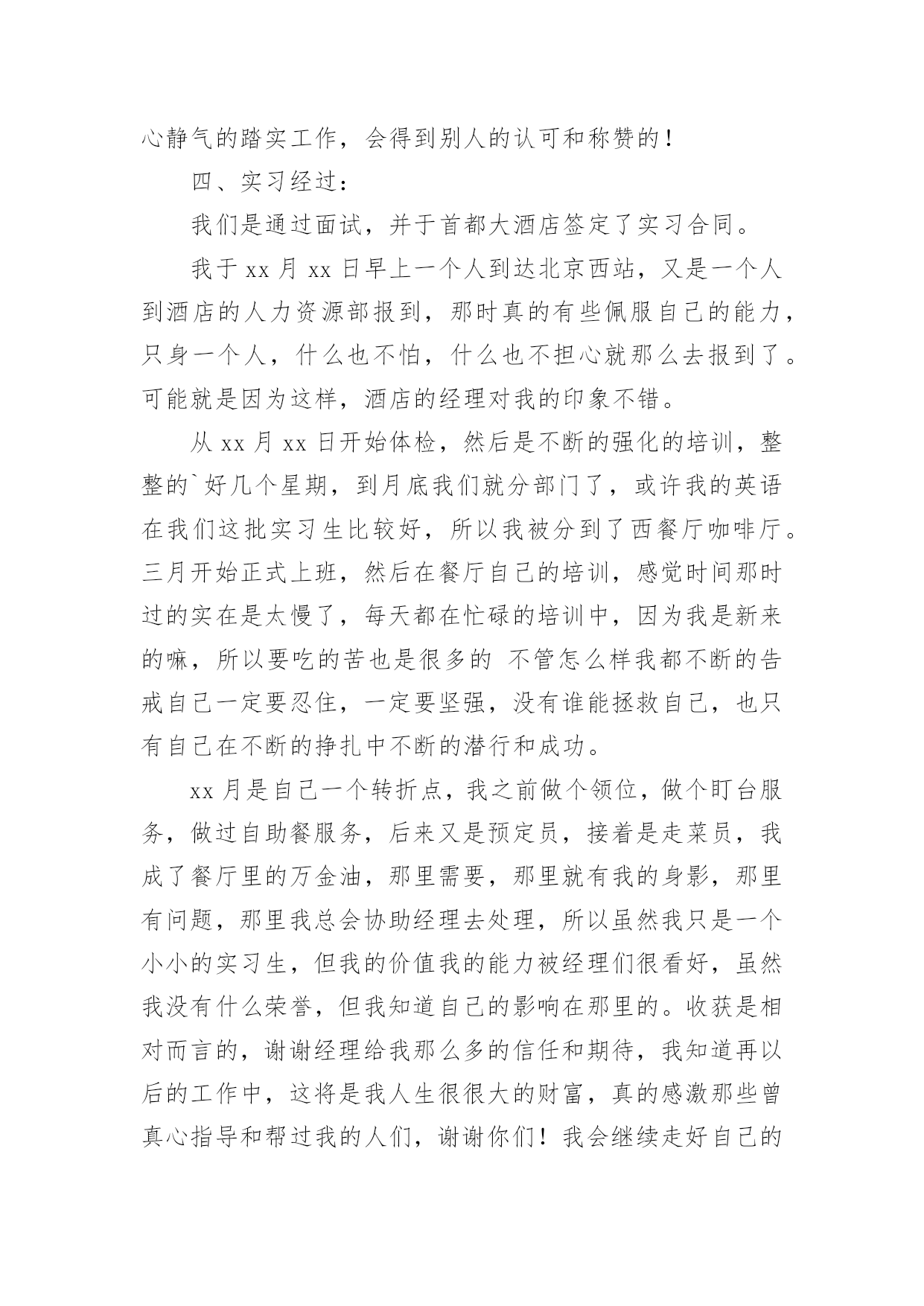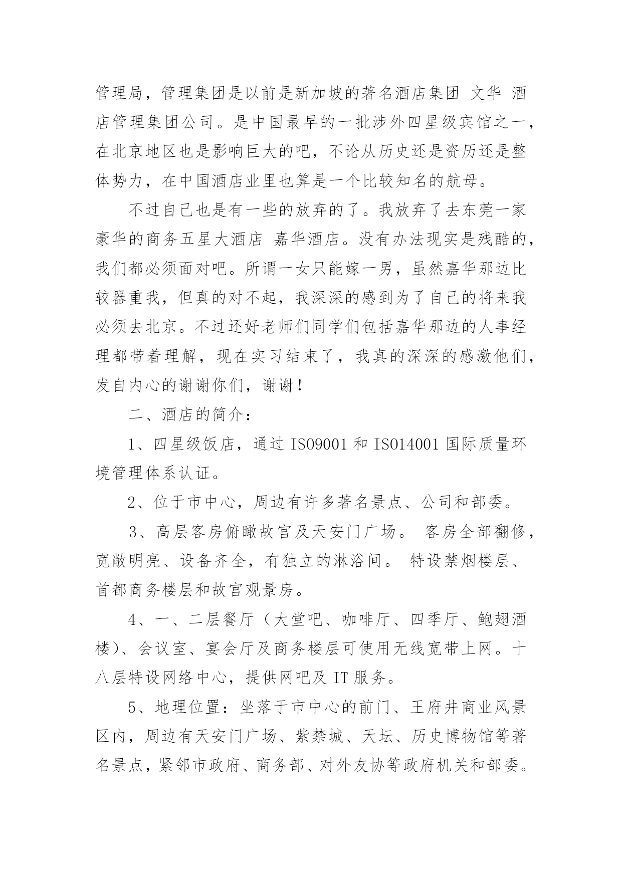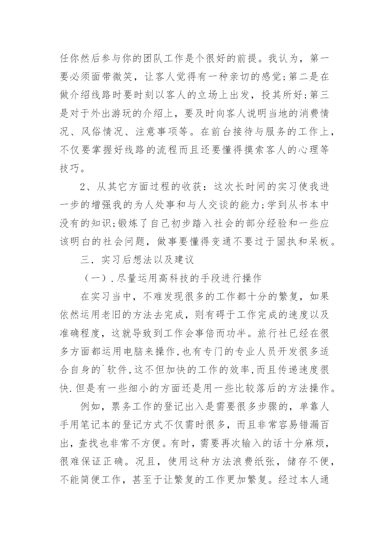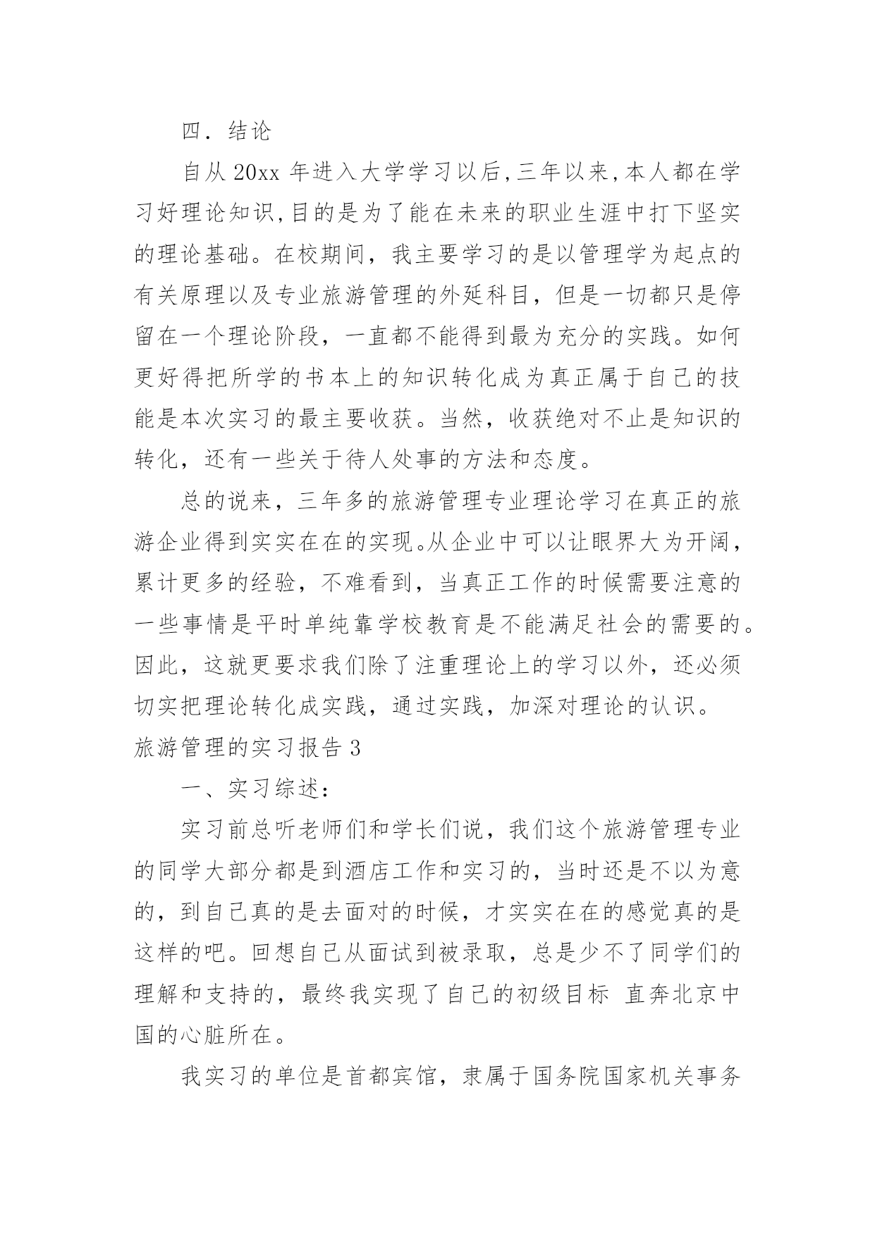 旅游管理的实习报告旅游管理的实习报告随着个人的文明素养不断提升,我们都不可避免地要接触到报告,不同种类的报告具有不同的用途。一听到写报告马上头昏脑涨?以下是小编为大家收集的旅游管理的实习报告,希望能够帮助到大家。旅游管理的实习报告1实习目的:历练自己,提升技能,运用在校期间的学习内容于实际,把握职业动态方向,毕业后在工作上能尽快适应职业环境实习时间:20xx年12月至20xx年3月实习地点:安徽省阜阳市阜南县实习内容:实习工作我选择了当一名汽车销售员,因为没有任何汽车销售经验,刚到阜南超峰汽车销售有限公司的时候,只能由老员工带着,大家都叫他老张,到陌生的环境难免紧张,我就向老张讨教公司的规章制度、功能分区及人员构成,因此而获得了职业的历练,提升了今后的职场适应能力。以下是我的详细实习经历:一、了解经过一段时间熟悉,我对我们公司有了大致了解,我们工作时间是上午7:40~17:00,中午有吃饭时间,不定,主要是看自己有没有客户需要接洽。上午上班时有个早会,会上销售组组长会提问新人一些关于汽车的基本知识问题,那个时候是我最紧张的时候。也许正因为如此,我也记住了不少汽车基本知识。比如排量,是活塞从上止点移动到下止点所通过的空间容积称为气缸排量,如果发动机有若干个气缸,所有气缸工作容积之和称为发动机排量。再比如涡轮增压(涡轮增压简称Turbo),如果在轿车尾部看到Turbo或者T,即表明该车采用的发动机是涡轮增压发动机。涡轮增压器实际上是种空气压缩机,通过压缩空气来增加进气量。涡轮增压器的最大优点是能在不加大发动机排量就能较大幅度地提高发动机的功率及扭力,一般而言,加装增压器后的发动机的功率及扭矩要增大20%。其他了解到的汽车基本知识我就不一一列举了,懂得了这些汽车基本知识,不仅是对自己以后的选购车辆、驾驶车辆大有帮助,而且对以后和客户更专业的.沟通,给客户提供多重选择,提供了扎实的专业基础。二、体验销售组长会对一周的销售数据做个统计,然后制作一个表格,贴在一楼楼梯口的文化墙上,每次上、下楼都能看到。有人这周销售了4辆,有人售出1-2辆,还有没有售出一辆的。虽然我是在实习阶段,但想想如果我是正式员工,上周挂零,一辆未卖出,被贴在墙上,压力顿时就来了。在这个以市场竞争为主的行业里,能力就是把利剑,能力越强,你斩获越多,财富、地位、名声……如果你不想成为loser,你要尽快认识自己的不足,尽快的提高自己。每次经过文化墙,感觉它矗立在那里就像矗立在我心中一样,时间久了,不知不觉就被它激励着。但售车过程不止是企业文化作为底气,还有自己的谈话技巧,善于捕捉客户心理需求等等。实习期间有一次售车经历给我的印象最深,那是跟着老张的一次售车,几经波折,最后成功售出。记得当时是一对夫妻第一次来展厅看车,首先老张给两位大体讲解了一下汽车市场的车辆信息,接着将公司所销售车辆的详细特性做了细致介绍。王女士比较关注运动时尚感十足的东风日产楼兰型,赵先生却喜欢稳重与大气的东风日产阳光型,甚至因此两人还发生了小小的争执,不过这时候老员工悄悄对我说表面愈是争执蕴含着购车的确定性愈大。通过近20分钟的沟通交流,我们了解到真正的车主是赵先生,他们是在附近做生意,生意比较红火;了解到他们经常出入的地方和他们的性格类型;他们的消费导向等等。再考虑到他们的生意肯定会需要大量的周转资金,于是我们向他们介绍了GMAC带来的好处,比如安装GPS可以免交三年盗抢险,他们一听也非常感兴趣,但毕竟是二十万左右的车辆,他们说要回家商量一下,临走时老张把GMAC申请表和贷款需要的资料表各准备了一份交给他们……半个小时后,老张还给王女士发了短信:“您好!我是阜南超峰汽车销售有限公司销售顾问老张,感谢关注东风日产汽车,希望您早日成为东风日产阳光型车主,感受上海通用与超峰公司带给您的全新感受!顺祝天天开心,家庭美满!”旅游管理的实习报告2一、实习单位及实习内容概况这次实习我非常荣幸,实习的是负责前台接待和咨询的工作,在这项工作中我首先是要充分了解旅行社推出的线路,如线路的行程如何安排、住宿情况、交通工具、游玩景点和要注意的事项等等我十分认真地向其他有经验的同事学习,了解真正的操作程序,真正实现了从课本中走进现实,把理论联系实际。认识旅行社工作的全过程以及上下级工作的各个环节,并从中观摩其他部门的工作过程,使我掌握更多的工作技巧,获得不少的工作经验。实习期间,我利用这次非常难得的机会去加深自己对行业以及企业的认识,并把所学的知识充分运用到工作上来。正如在专业学习时所知道的,旅游业的其中一个突出的特点就是其淡旺季分明。二、实习主要收获和体会实习后我所获甚多,不仅将我在课堂上学习到的知识和工作实践相结合,还使我在工作中获得了宝贵的工作经验,对于现在社会上各个企业聘用人才时处处讲究工作经验的前提下,这些经