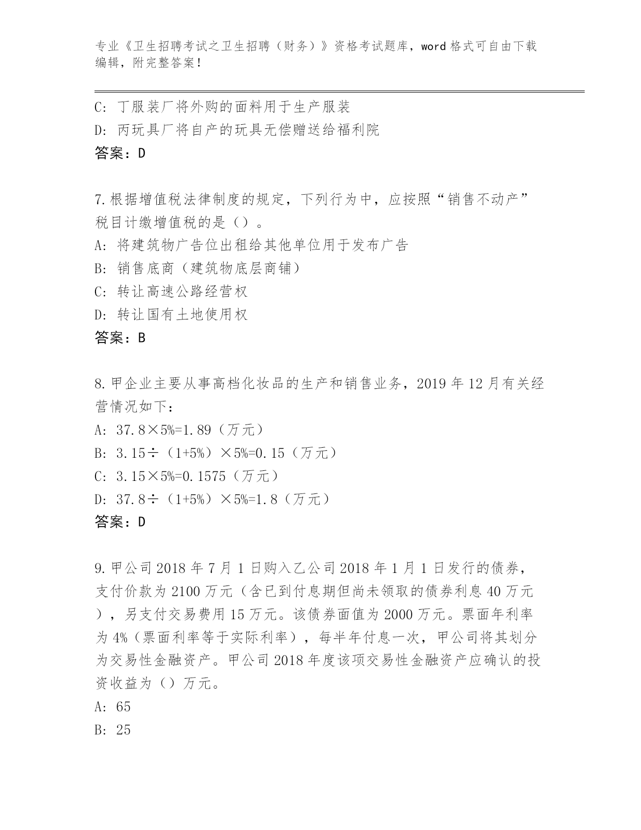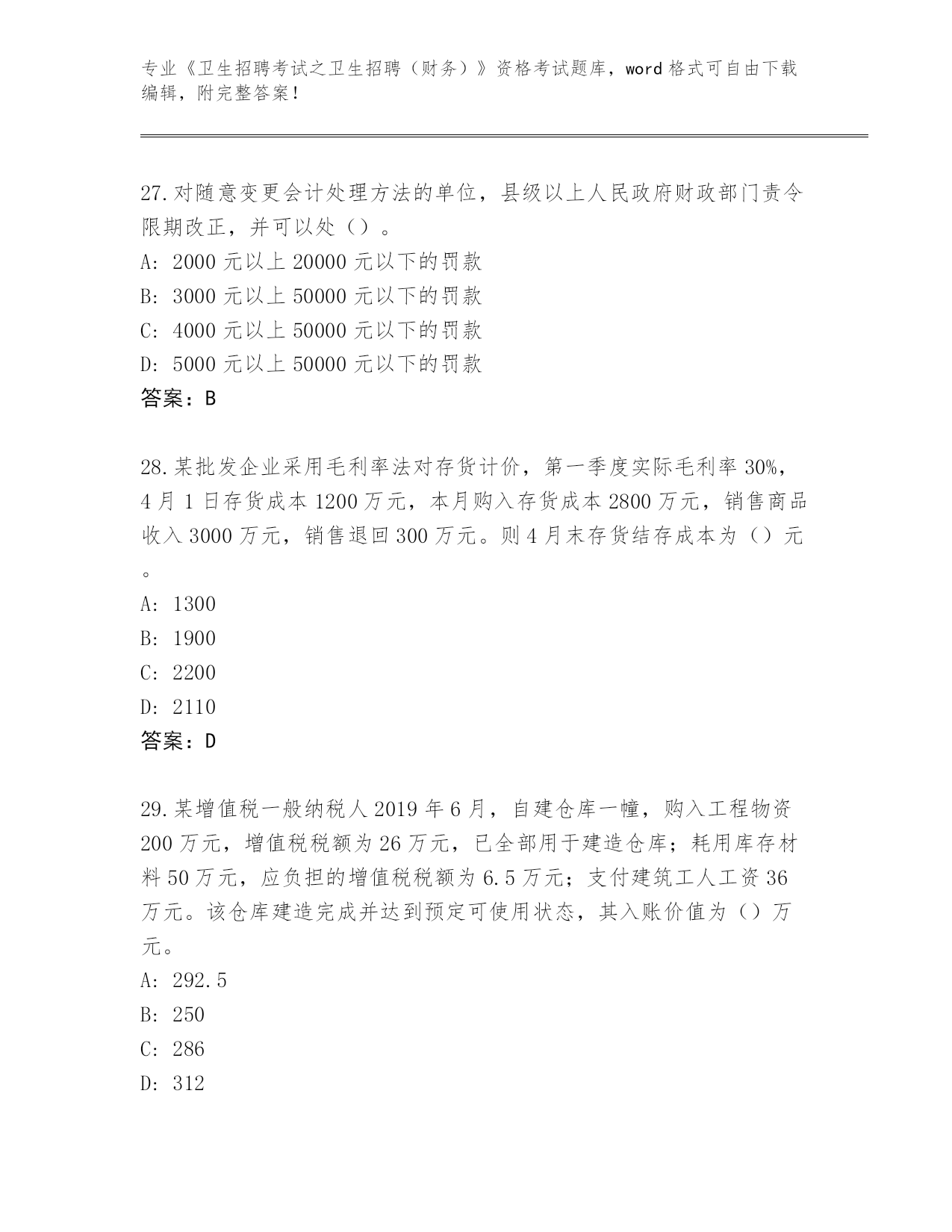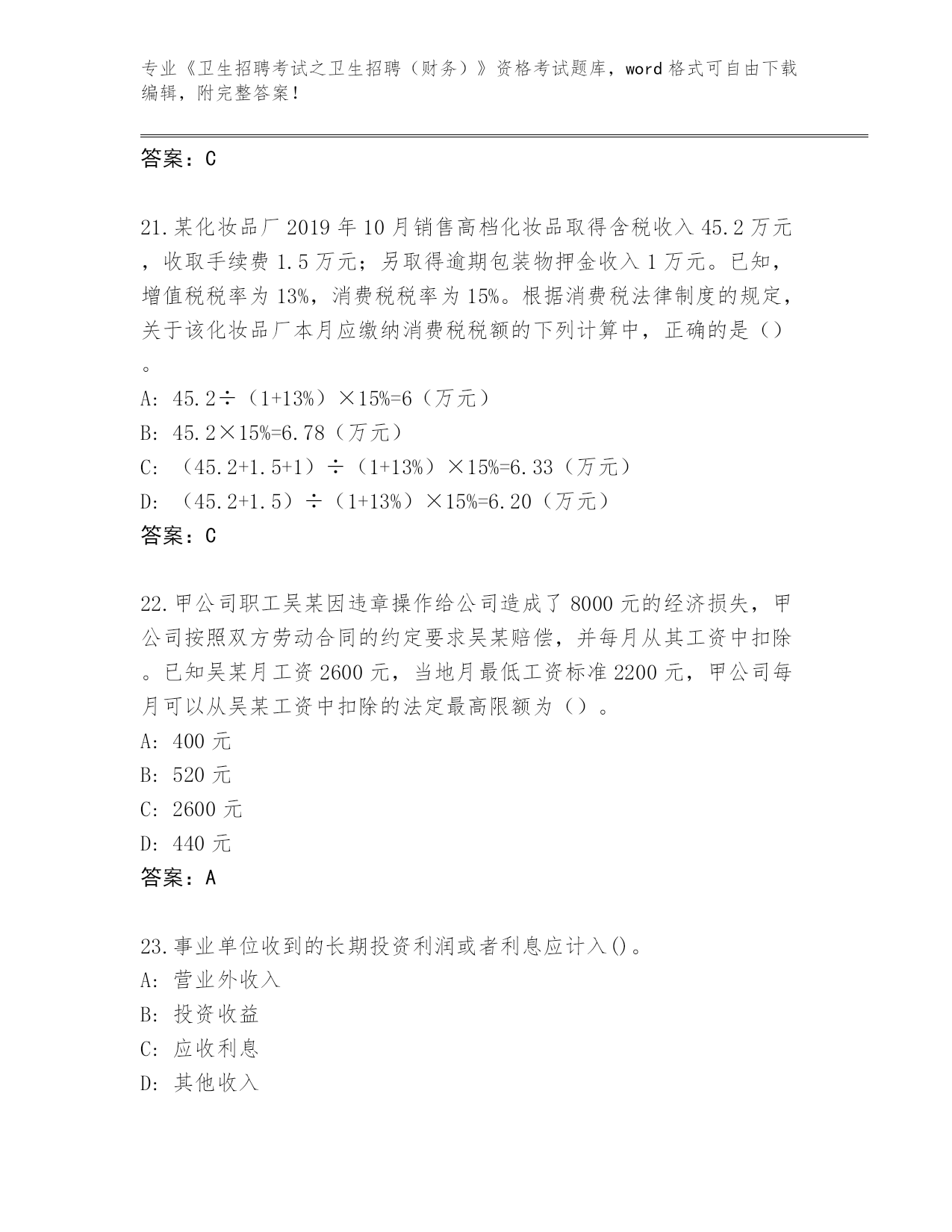 整理天津市静海区《卫生招聘考试之卫生招聘(财务)》资格考试大全含答案(研优卷)