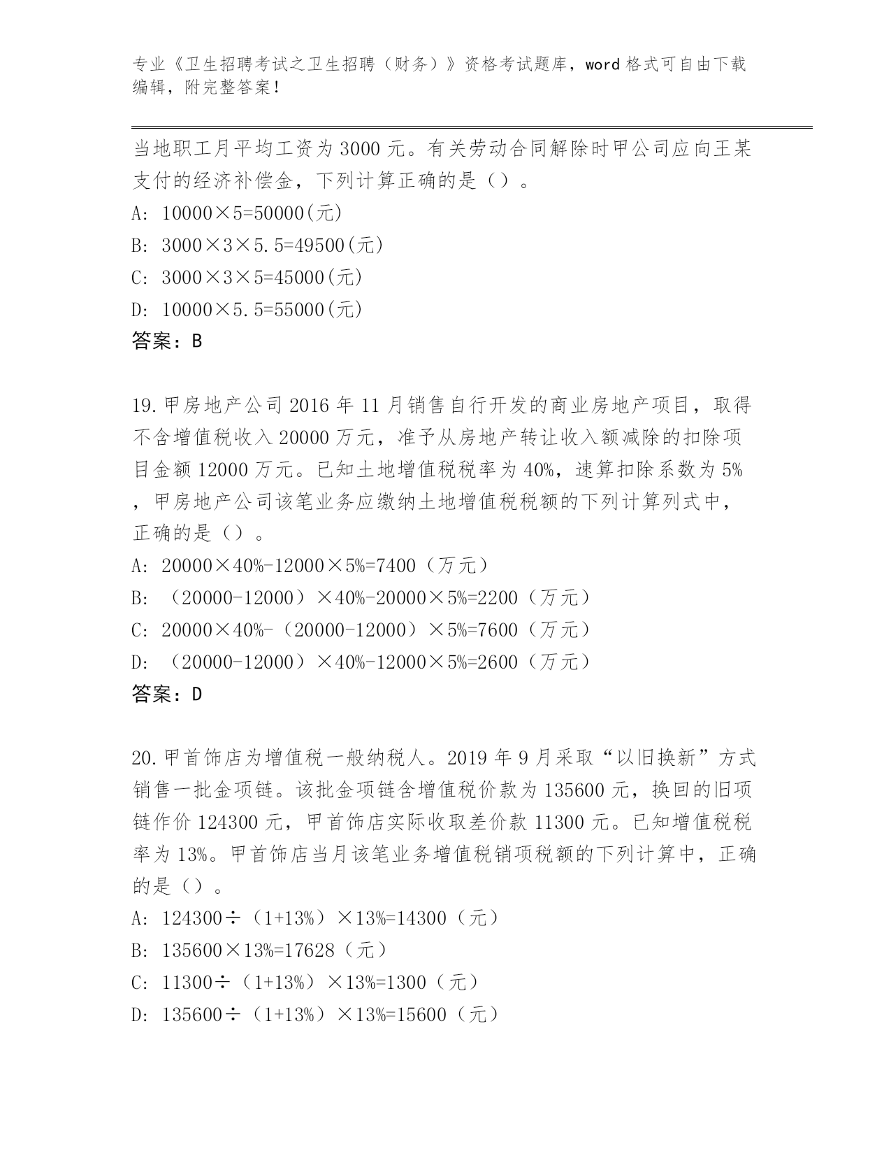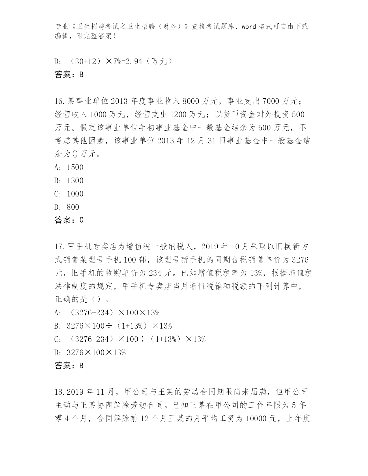 2024年江苏省溧水区《卫生招聘考试之卫生招聘(财务)》资格考试必背200题大全(B卷)