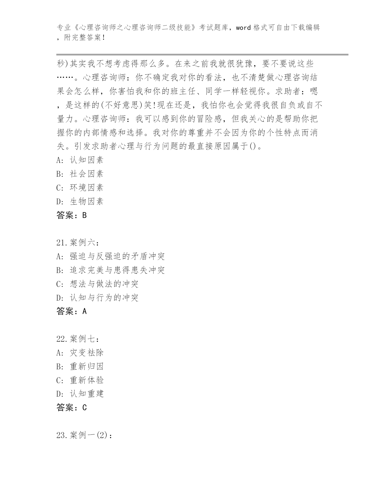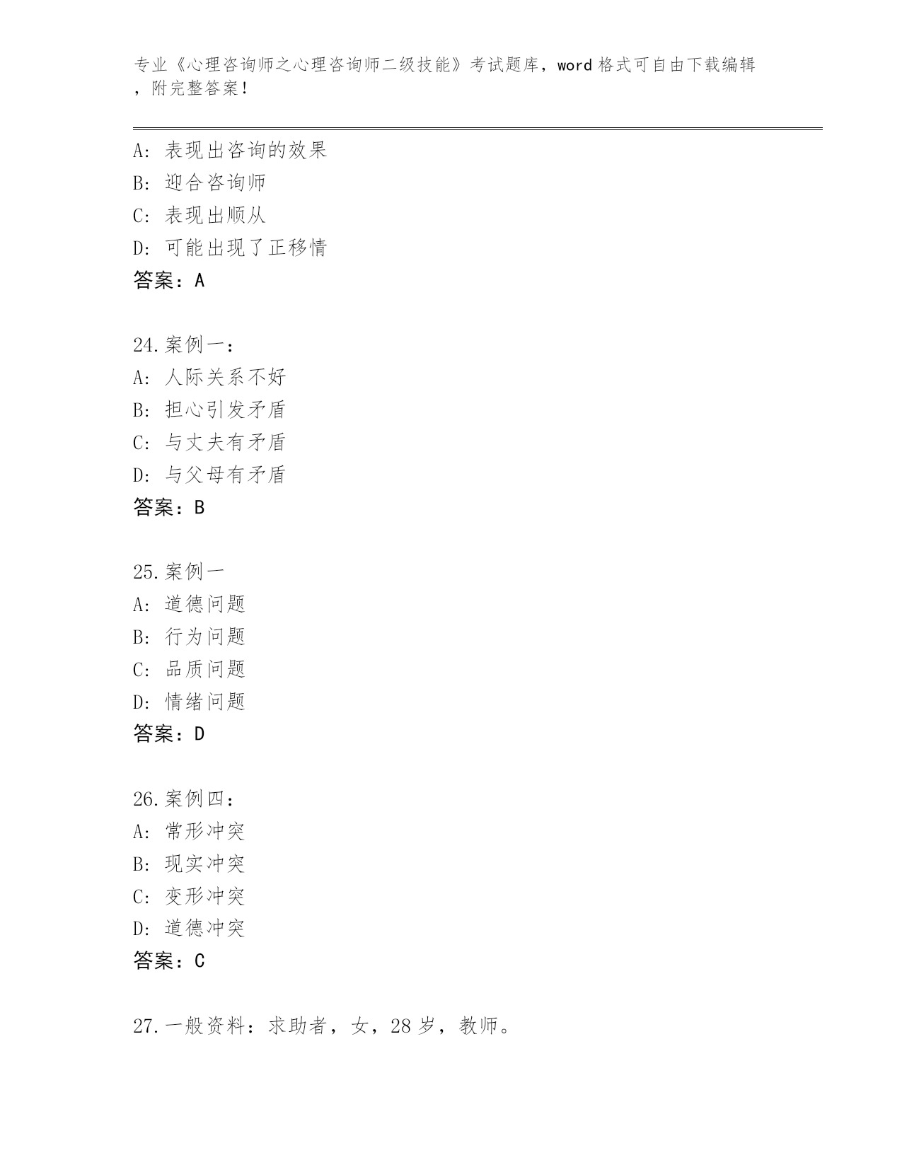 2024年黑龙江省青冈县《心理咨询师之心理咨询师二级技能》考试大全【全优】
