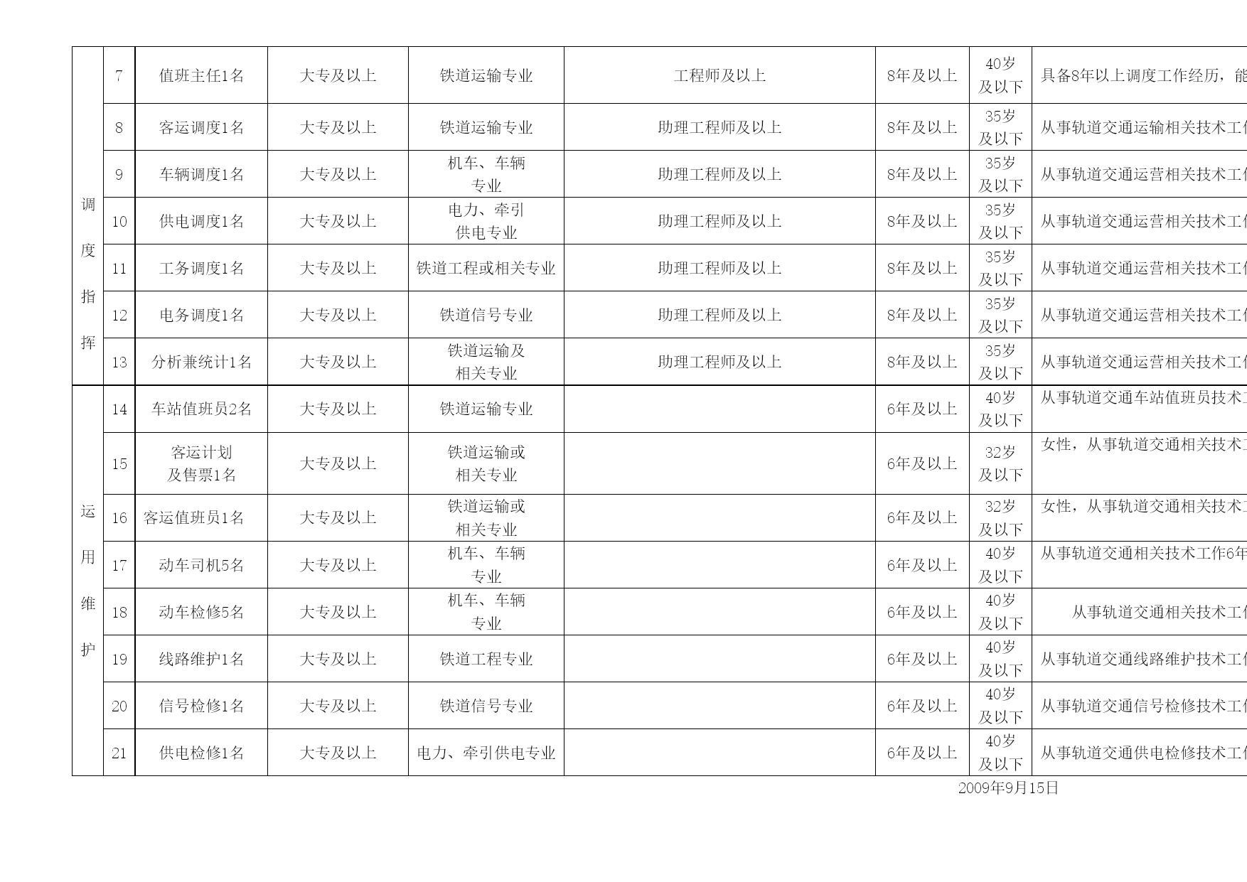 广东省东南城际轨道交通有限公司运营管理招聘岗位职数....doc