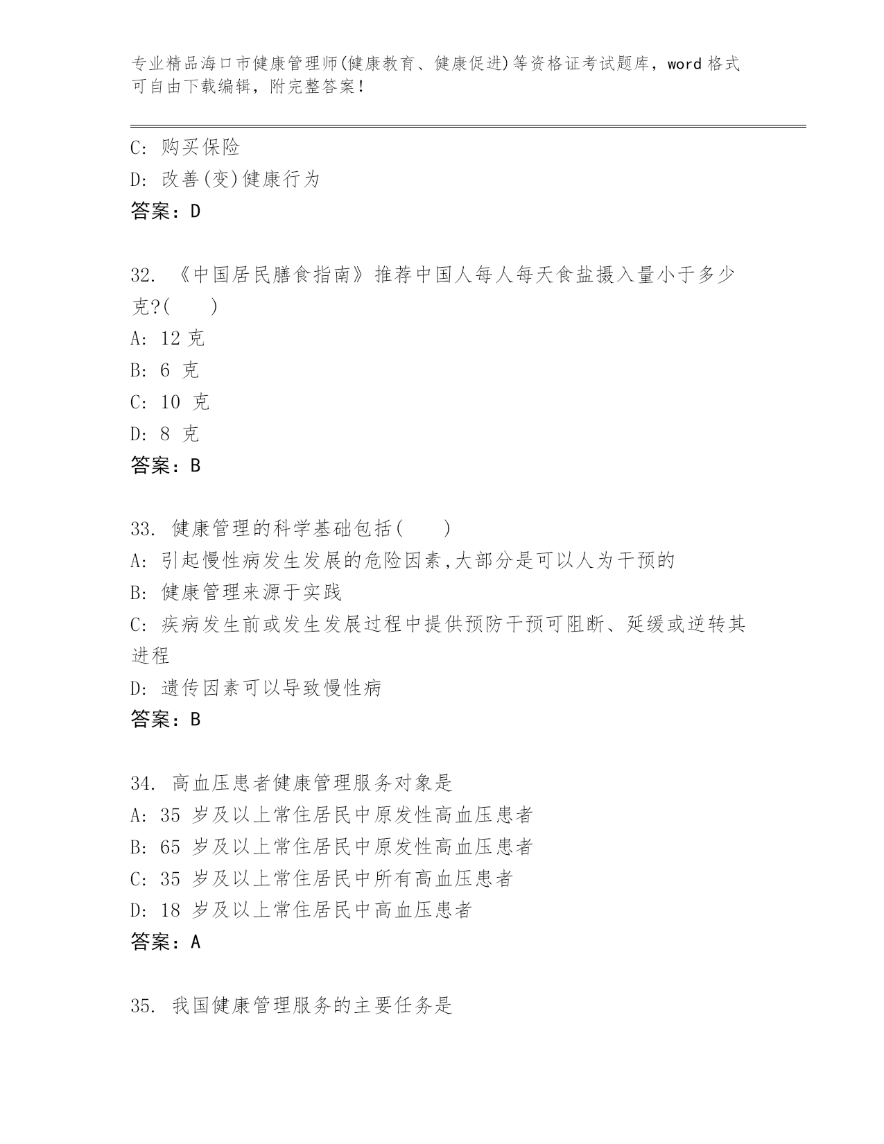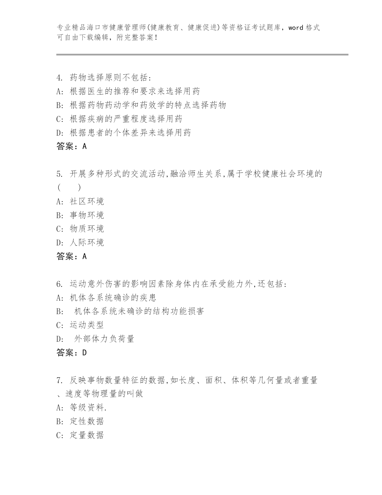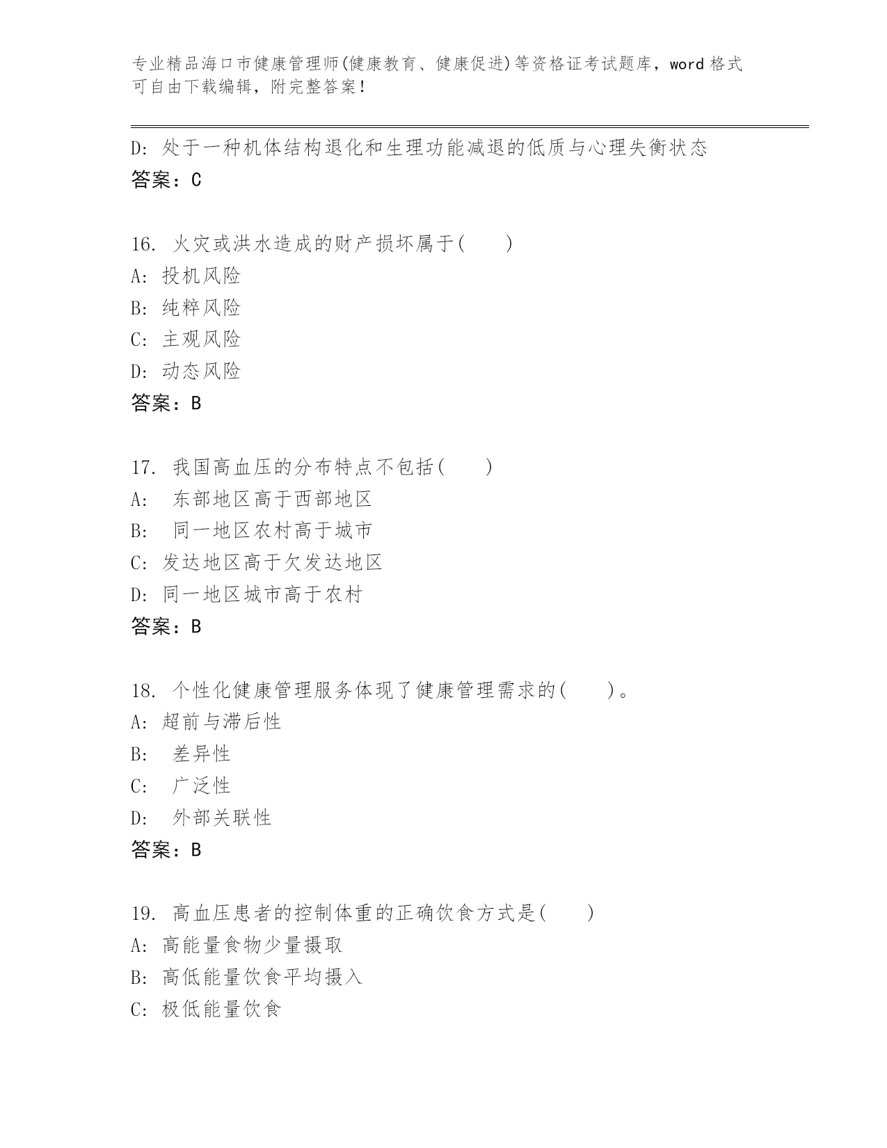 完整版海口市健康管理师(健康教育、健康促进)等资格证考试精品(名师推荐).docx