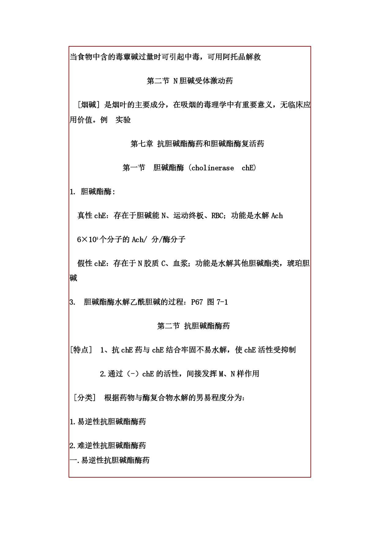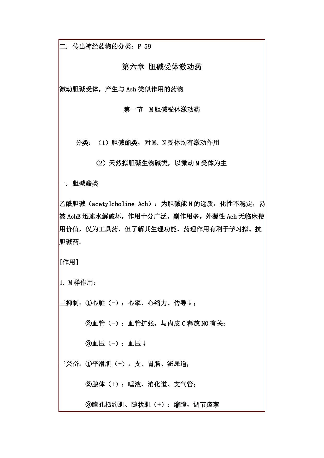 药理学教案第5-7章传出神经系统药物概论胆碱受体激动药.doc