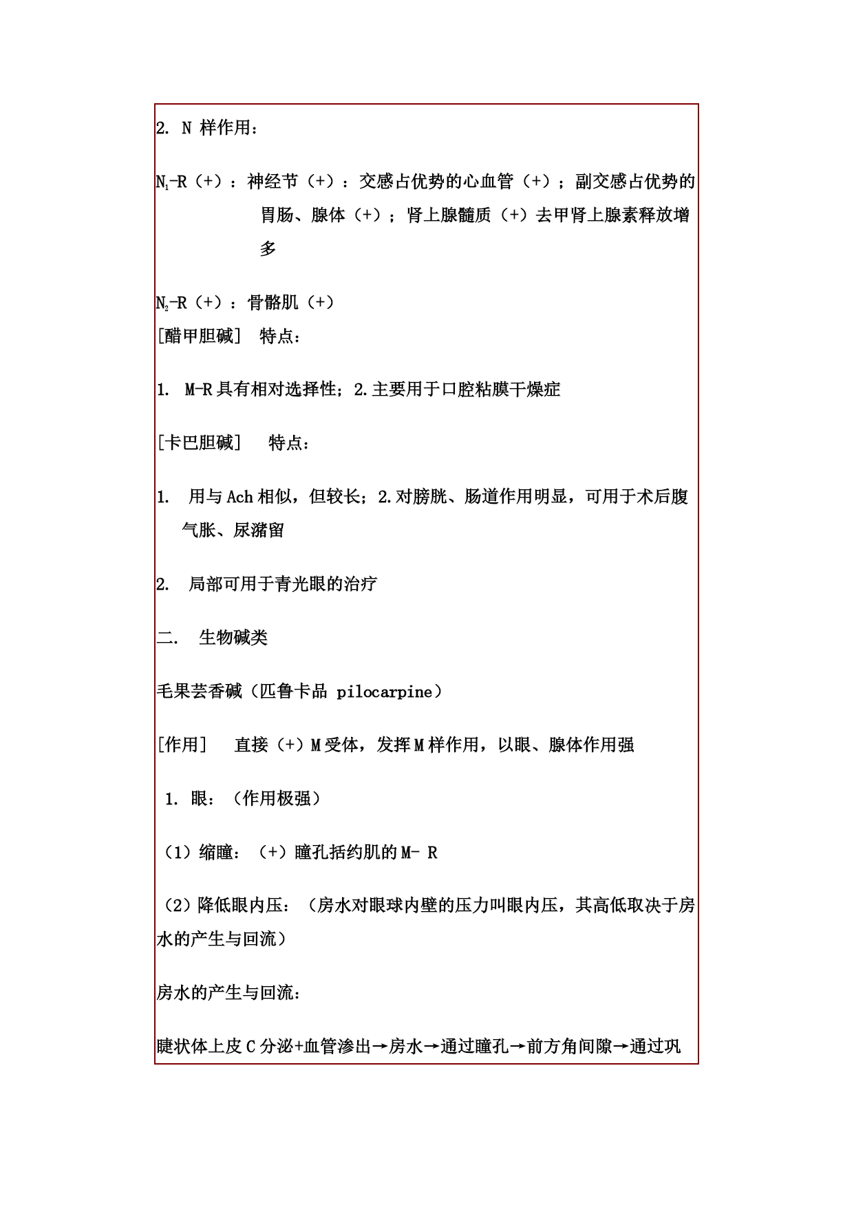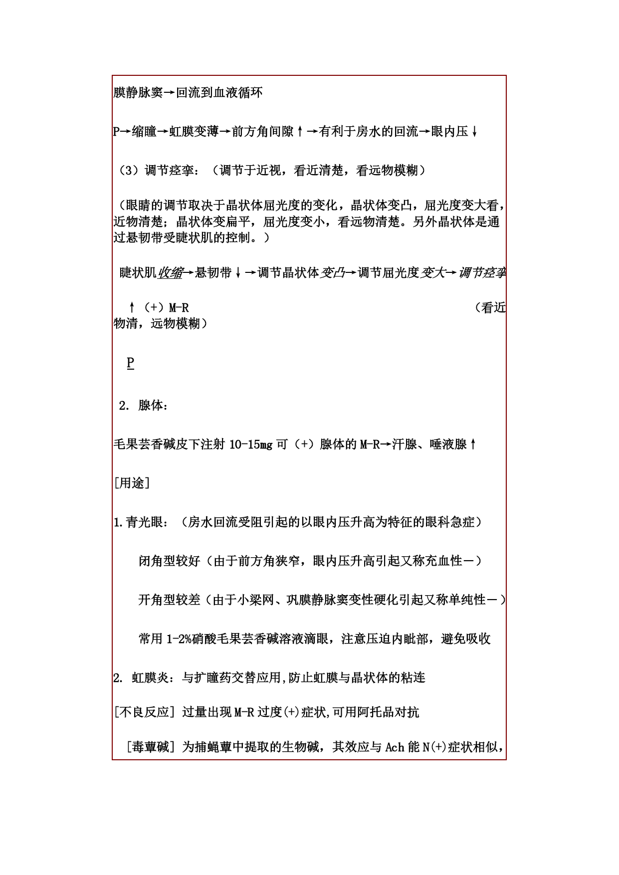 药理学教案 第5-7章传出神经系统药物概论胆碱受体激动药