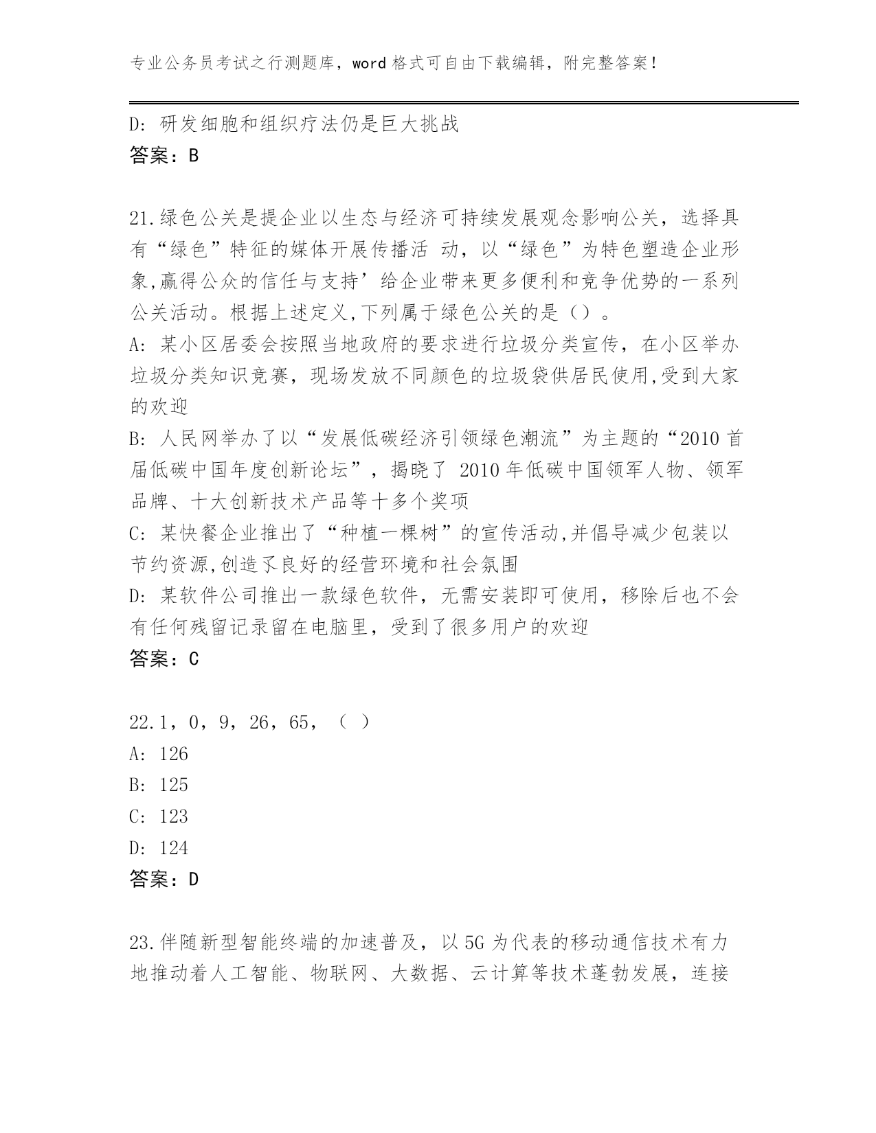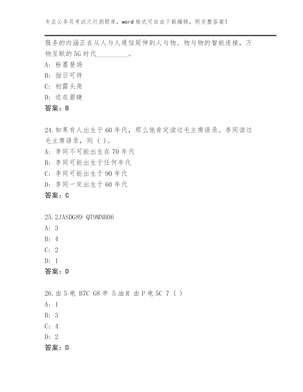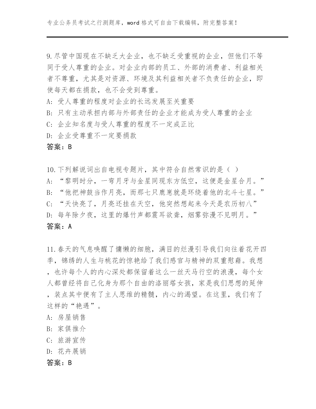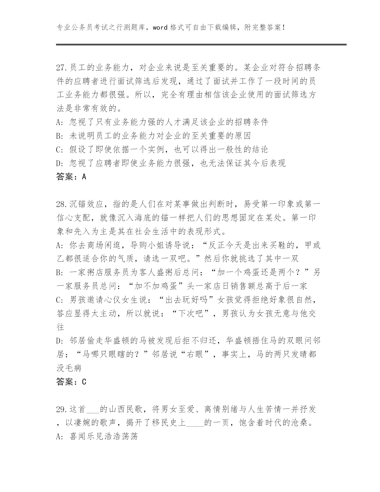 山西省柳林县2023-24年公务员考试之行测题库大全答案