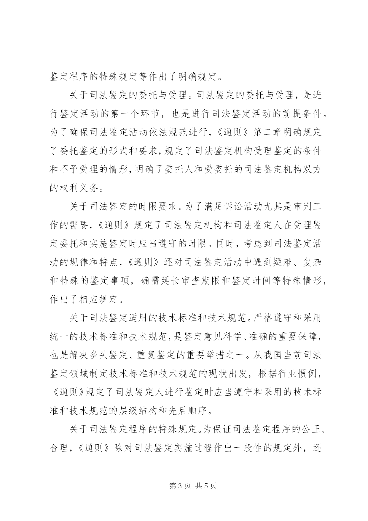 第PAGE\*Arabic\*MERGEFORMAT5页共NUMPAGES\*MERGEFORMAT5页论司法鉴定启动程序司法鉴定程序通则司法鉴定程序通则-权威解读通则司-法-部有关部门负责人对重新制定的《通则》进行了解读,司法鉴定程序通则。这位负责人说,重新制定《通则》,主要是为规范司法鉴定的实施程序,保障司法鉴定的质量。《通则》是司法鉴定制度的重要组成部分,也是与《全国人民代表大会常务委员会关于司法鉴定管理问题的决定》相配套的一部基础性的重要规章,对司法鉴定活动具有重要作用。与试行的《通则》相比新《通则》具有更高效力等级谈及重新制定的《通则》与过去的《司法鉴定程序通则(试行)》有何不同时,这位负责人认为,有三大不同。首先是立法依据不同。在2004年底开始的司法体制和工作机制改革中,司法鉴定体制改革是其中的一项重要任务。2005年《决定》的颁布,除明确了对司法鉴定工作的管理法制、司法鉴定人和司法鉴定机构的准入条件及程序外,同时已对进行司法鉴定活动应遵循的原则、相关要求及监督举措也作出了相应的规定。原《通则》虽然在规范面向社会服务的司法鉴定业务活动中发挥过重要作用,但有些内容与《决定》的规定和当前的需要已不相适应。其次是内容有较大调整和补充。重新制定《通则》,一方面,保留了原《通则》中继续教育的内容,同时又注意总结吸收多年来司法鉴定实践中积累和形成的具有普遍适用意义的好办法、好经验;另一方面,针对与《决定》不适应的地方和鉴定实践中存在的突出问题,依据《决定》的规定,在充分调研论证的基础上,对许多内容作了调整和补充。《通则》自2005年形成初稿后,先后多次征求中央和地方有关部门的意见,征求司法鉴定人及有关专家的意见,同时通过“中国司法鉴定网”向社会广泛征求意见。再次是适用范围和效力不同。《通则》明确规定了进行司法鉴定活动时应当遵循的方式、方法、步骤以及相关的规则和标准,明确规定了《通则》的适用范围。今后,司法鉴定机构和司法鉴定人进行各类司法鉴定活动时,都须自觉遵循《通则》的规定。对违反《通则》的行为,新《通则》分别从司法鉴定机构、司法鉴定行业组织和司法行政机关的层面赋予了相应的处分权限。“原《通则》以规范性文件试行,新《通则》以正式规章的形式颁发,具有更高的效力等级。”这位负责人说。明确委托鉴定形式要求规定司法鉴定时限据介绍,《通则》设总则、司法鉴定的委托与受理、司法鉴定的实施、司法鉴定文书的出具、附则,共5章40条,司法鉴定《司法鉴定程序通则》。《通则》遵循司法鉴定活动的内在规律,按照司法鉴定活动的工作流程,对司法鉴定的委托与受理、司法鉴定的实施、司法鉴定应遵循采用的技术标准和技术规范、司法鉴定程序的特殊规定等作出了明确规定。关于司法鉴定的委托与受理。司法鉴定的委托与受理,是进行鉴定活动的第一个环节,也是进行司法鉴定活动的前提条件。为了确保司法鉴定活动依法规范进行,《通则》第二章明确规定了委托鉴定的形式和要求,规定了司法鉴定机构受理鉴定的条件和不予受理的情形,明确了委托人和受委托的司法鉴定机构双方的权利义务。关于司法鉴定的时限要求。为了满足诉讼活动尤其是审判工作的需要,《通则》规定了司法鉴定机构和司法鉴定人在受理鉴定委托和实施鉴定时应当遵守的时限。同时,考虑到司法鉴定活动的规律和特点,《通则》还对司法鉴定活动中遇到疑难、复杂和特殊的鉴定事项,确需延长审查期限和鉴定时间等特殊情形,作出了相应规定。关于司法鉴定适用的技术标准和技术规范。严格遵守和采用统一的技术标准和技术规范,是鉴定意见科学、准确的重要保障,也是解决多头鉴定、重复鉴定的重要举措之一。从我国当前司法鉴定领域制定技术标准和技术规范的现状出发,根据行业惯例,《通则》规定了司法鉴定人进行鉴定时应当遵守和采用的技术标准和技术规范的层级结构和先后顺序。关于司法鉴定程序的特殊规定。为保证司法鉴定程序的公正、合理,《通则》除对司法鉴定实施过程作出一般性的规定外,还根据有关法律、法规,对检查女性或未成年人身体、进行法医精神病鉴定或者进行尸体解剖、现场提取检材等特殊情形作出了专门规定,既体现了鉴定程序的公正性,又加强了委托人对鉴定过程的监督。同时,为了及时应对重大突发公共事件,适应跨学科、跨地域、跨行业鉴定的需要,《通则》也对相关制度安排作出了规定。落实司法鉴定人负责制规范重新鉴定受理条件这位负责人说,根据《决定》的规定,《通则》还对司法鉴定人、司法鉴定机构和司法鉴定行业组织在司法鉴定活动中的相关责任以及接受重新鉴定委托的条件分别作出了规定。一是进一步落实了司法鉴定人负责制。司法鉴定人运用科学技术和专门知识对诉讼涉及的专门性问题独立、客观、公正地进行鉴别和判断,并对自己作出的鉴定意见负责,是《决定》确立的司法鉴定人负责制的核心内容。《通则》使这一原则得到了落实