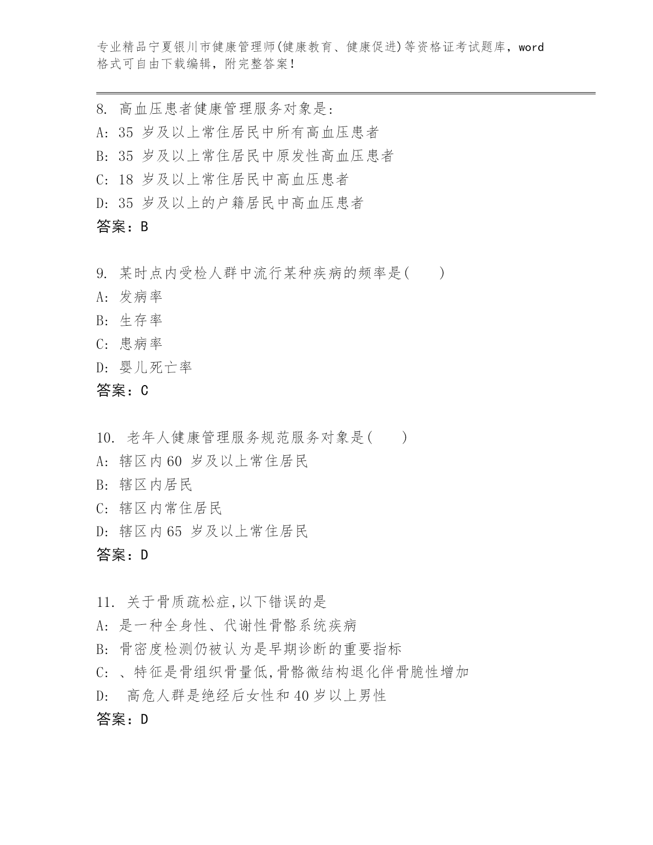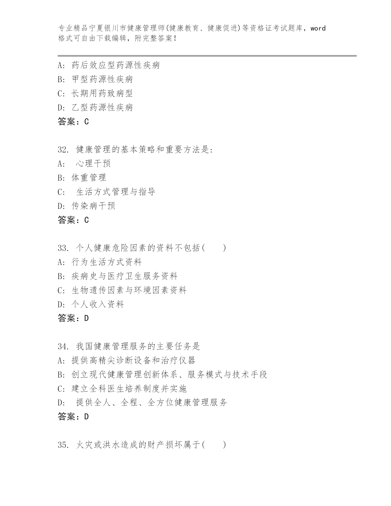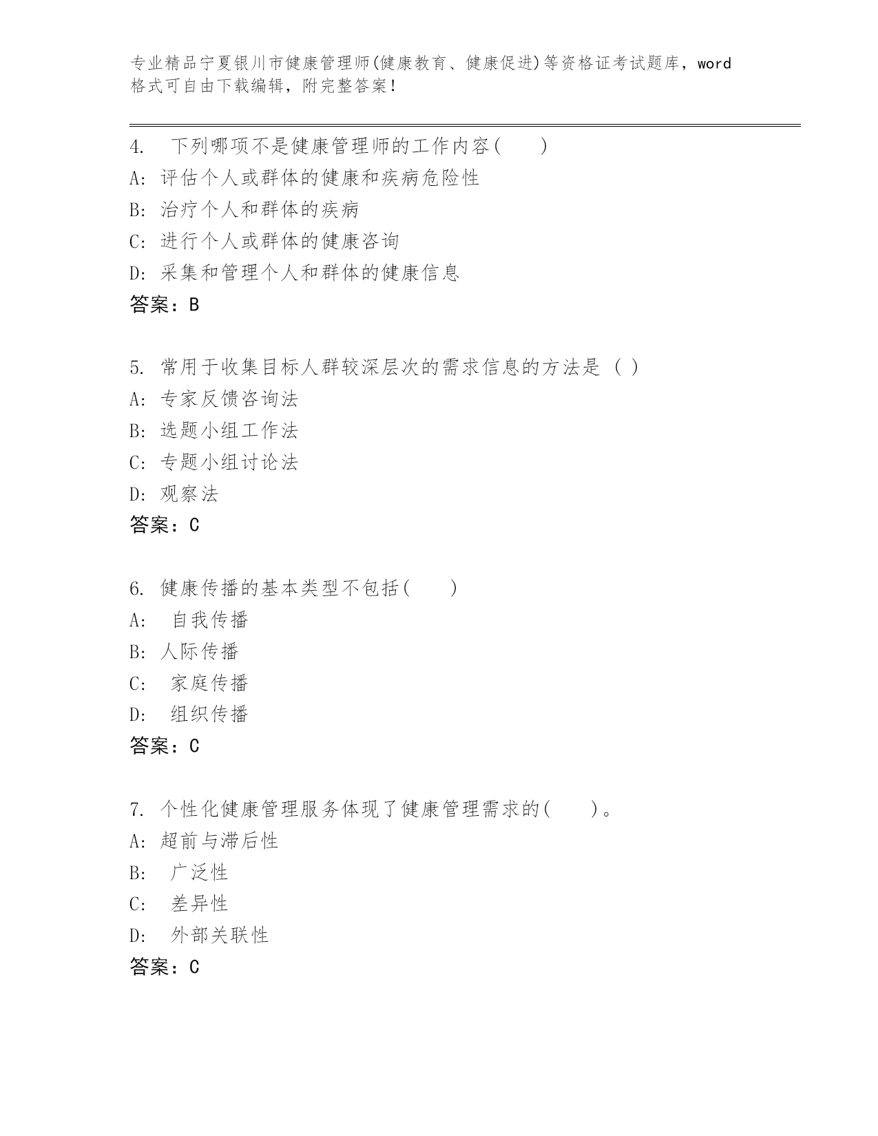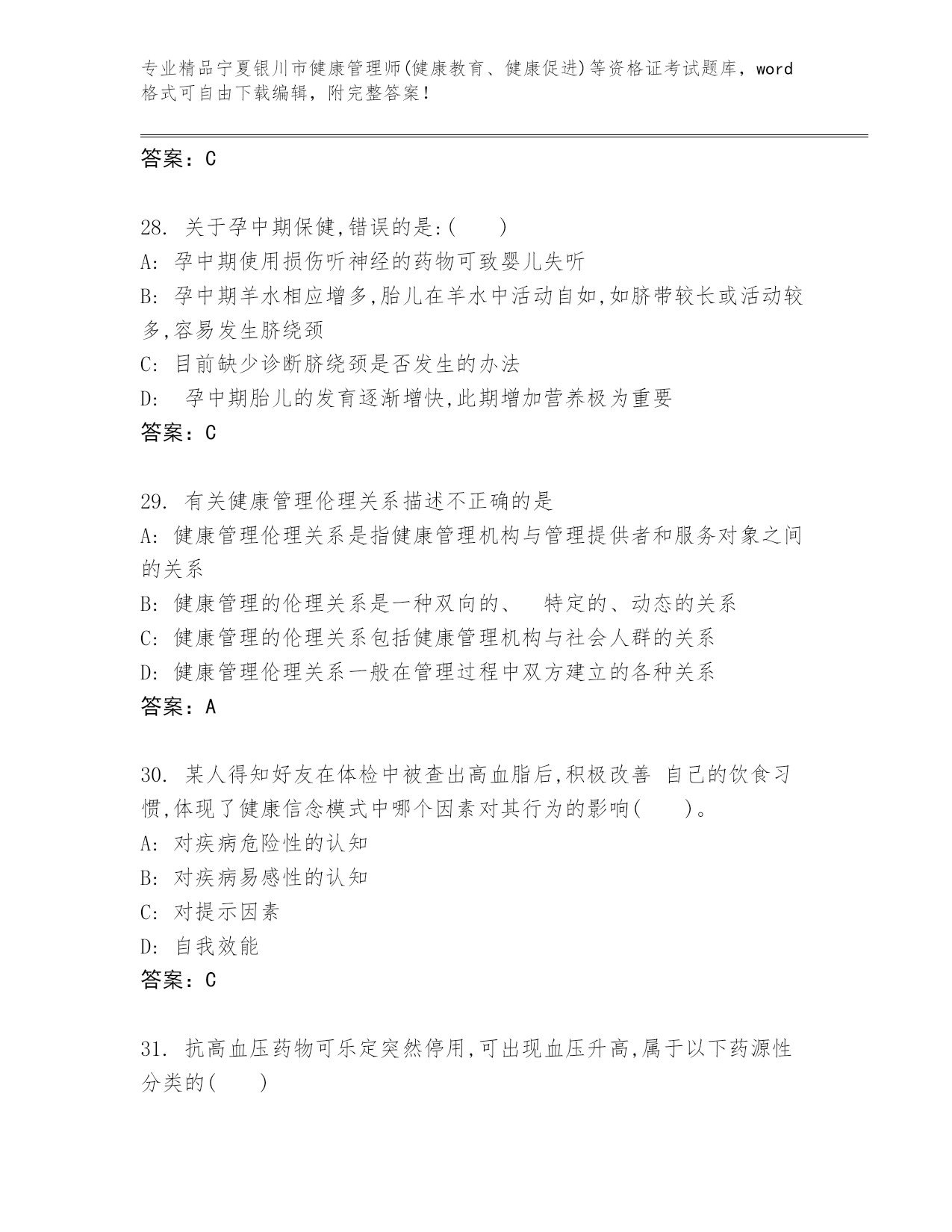 完整版宁夏银川市健康管理师(健康教育、健康促进)等资格证考试及参考答案(名师推荐)