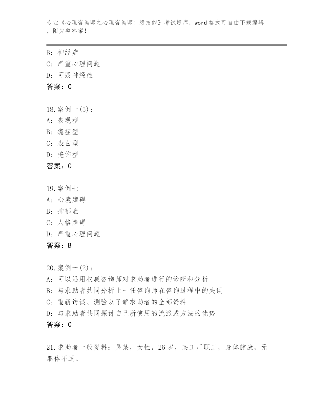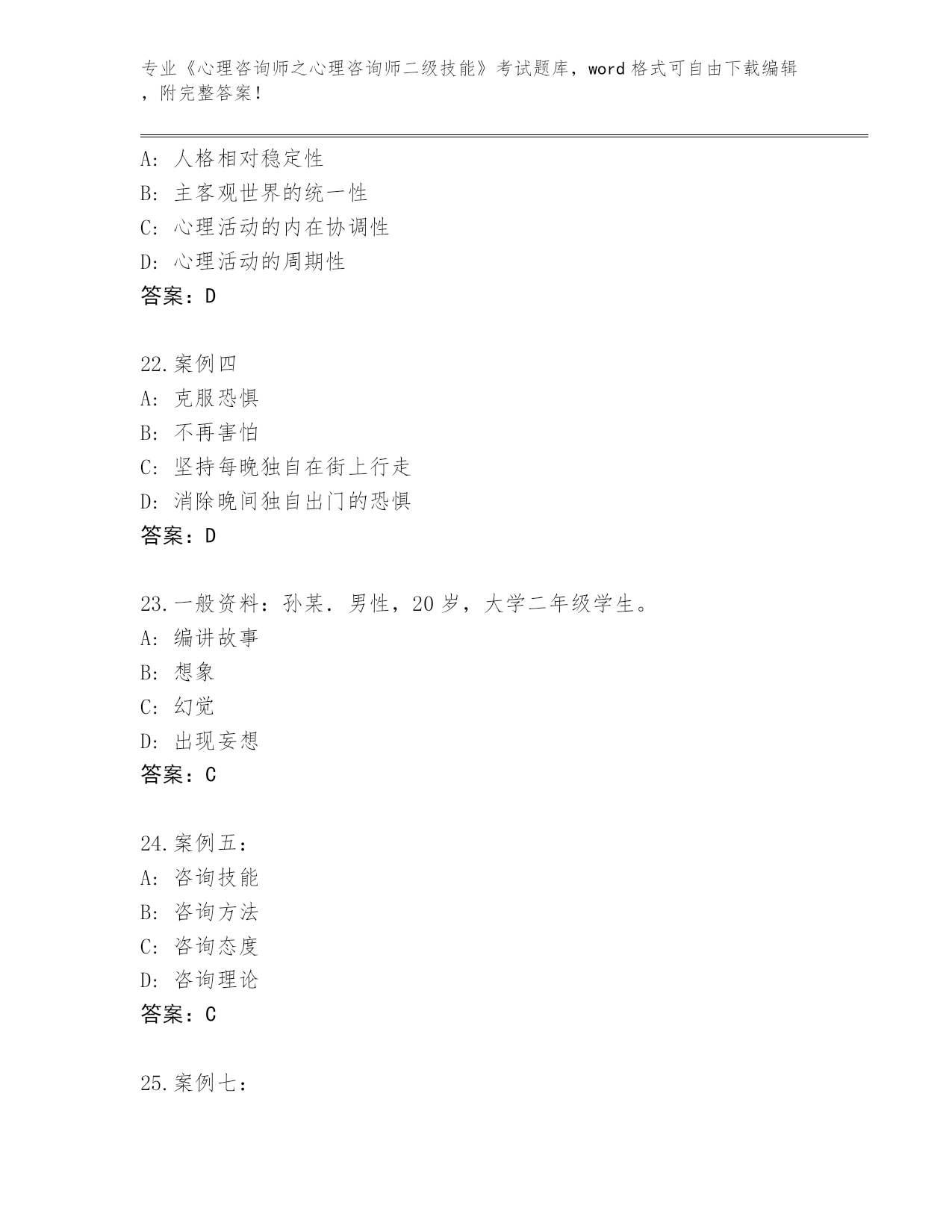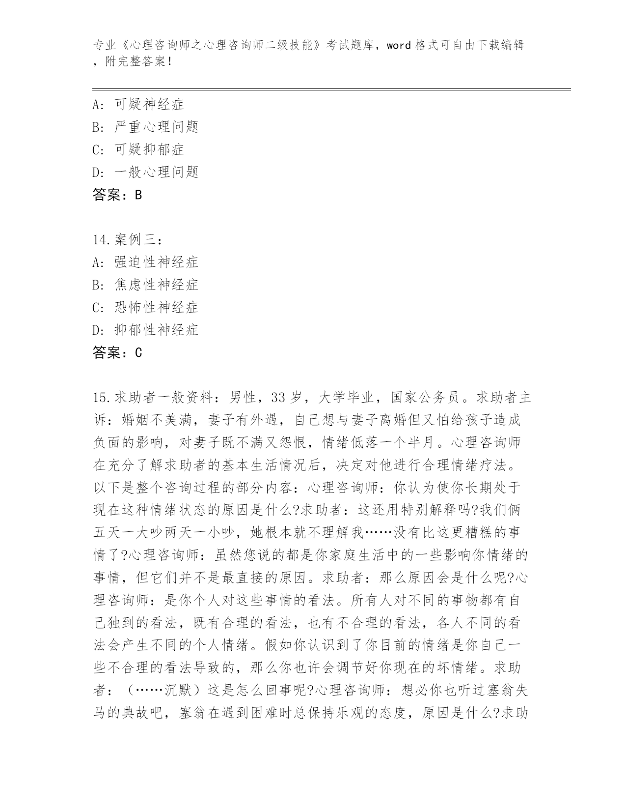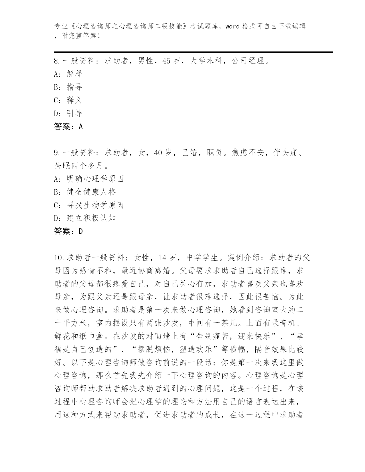 2024年山东省单县《心理咨询师之心理咨询师二级技能》考试大全及答案下载