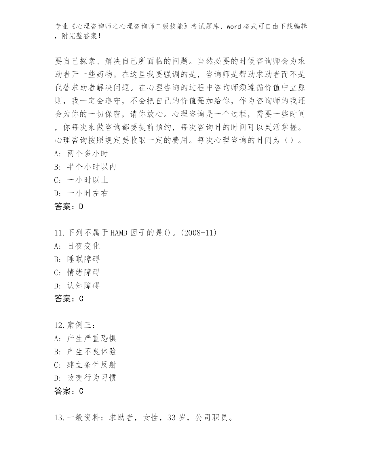 完整版山东省《心理咨询师之心理咨询师二级技能》考试大全【能力提升】