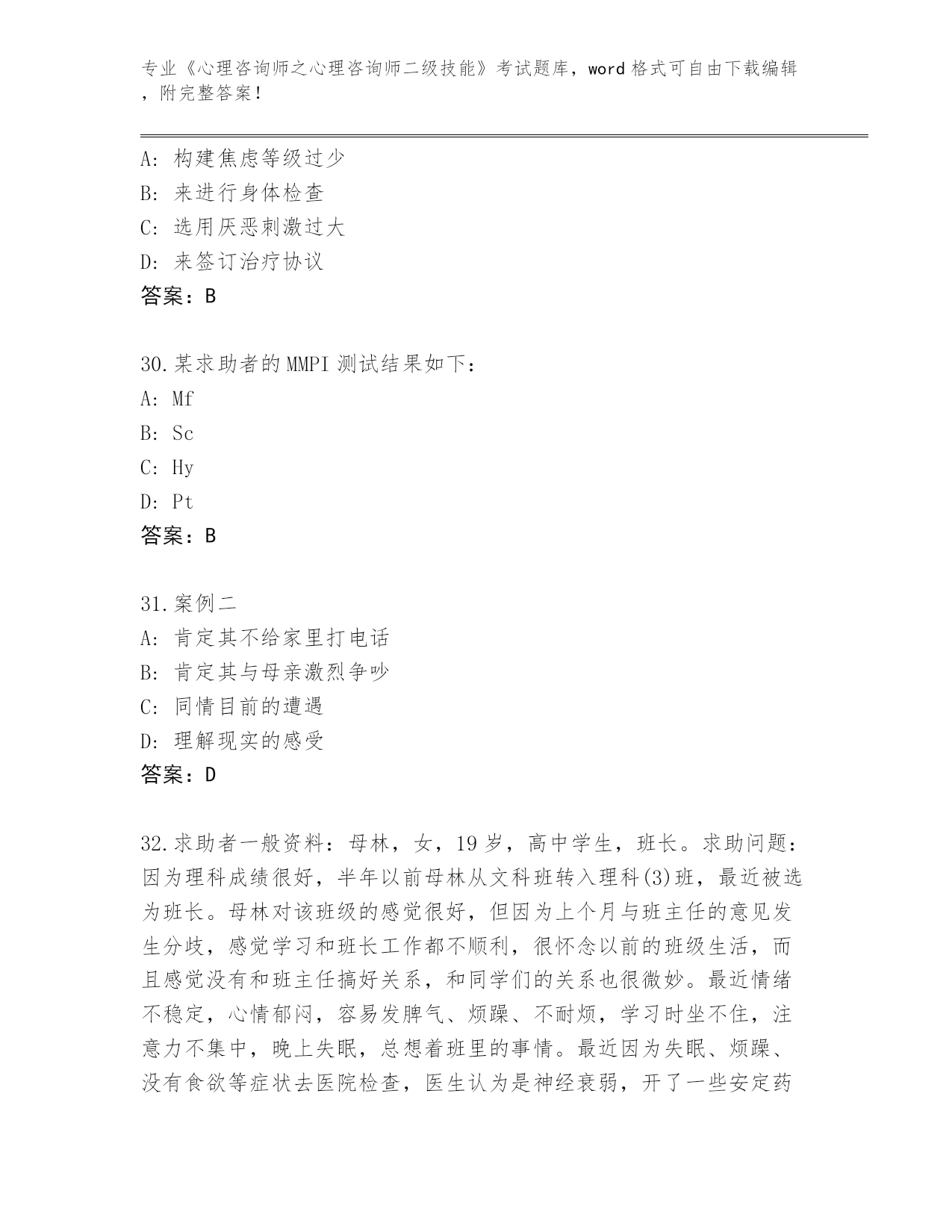 山东省《心理咨询师之心理咨询师二级技能》考试题库大全含解析答案